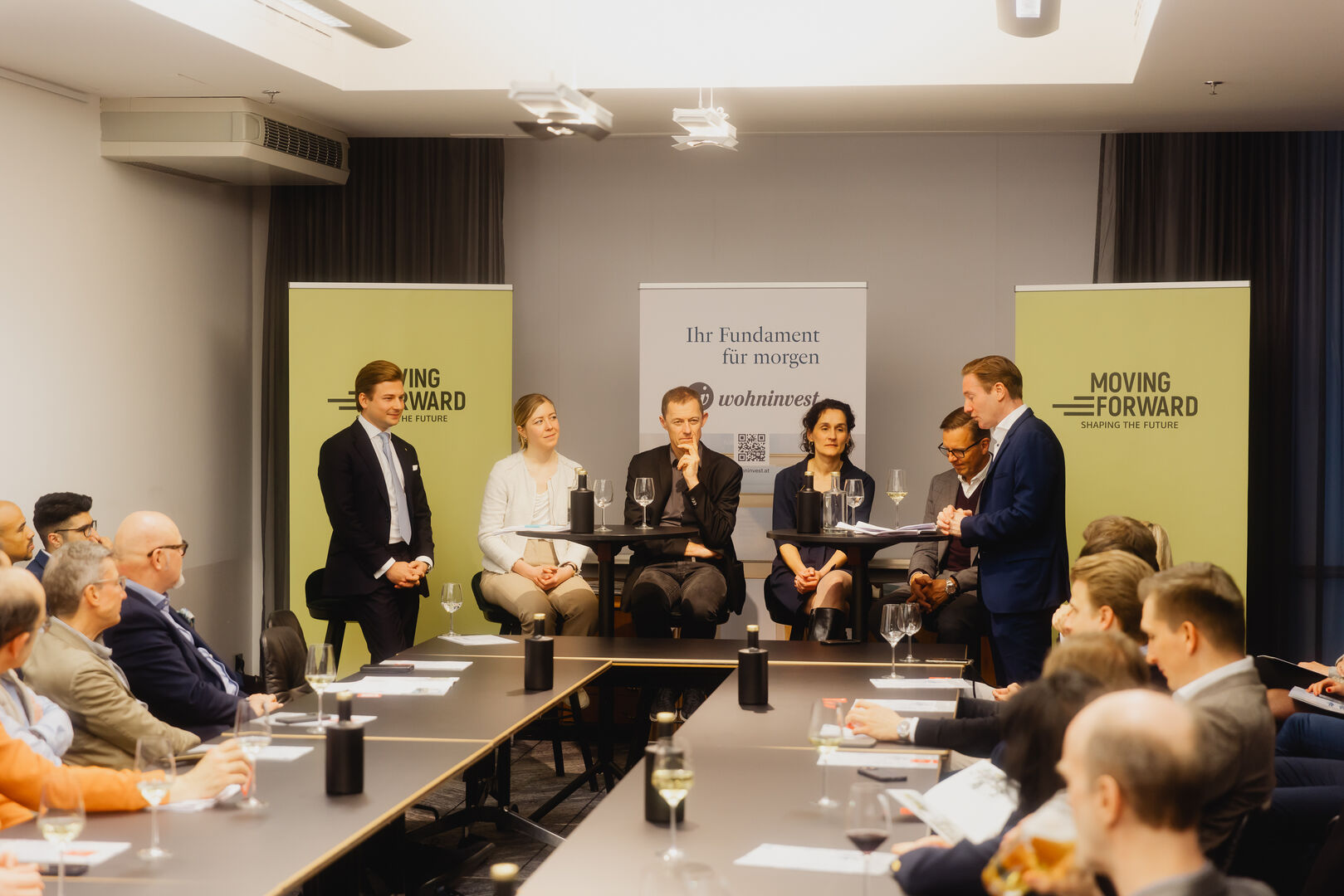 Beim Moving Forward Round Table zum Thema "Bauen für die Zukunft - Nachhaltige Strategien für Immobilien- und Stadtentwicklung" powered by wohninvest tauschten sich Nicole Büchl (stv. Bereichsleiterin Sanierung wohnfonds_wien), Anna Lindorfer (Architektin), Thomas Madreiter (Planungsdirektor Stadt Wien), Gerold Pinter (CEO wohninvest) und Peter Stellnberger (Raiffeisen NÖ-Wien Gewerbliche Immobilienfinanzierung) unter der Moderation von JMC CEO Josef Mantl über nachhaltige Strategien für Immobilien- und Stadtentwicklung aus.