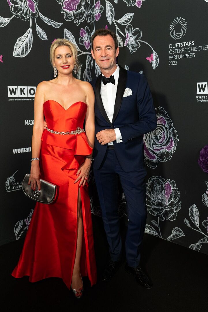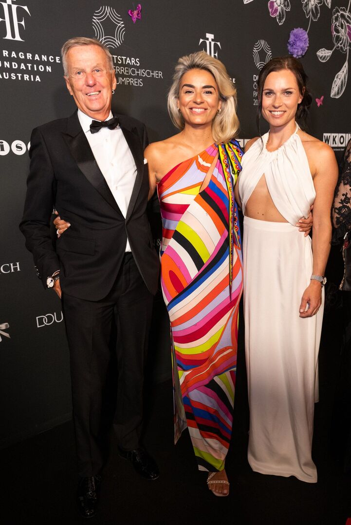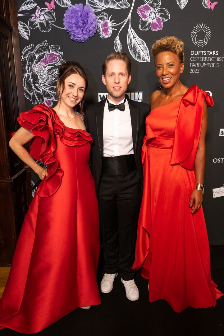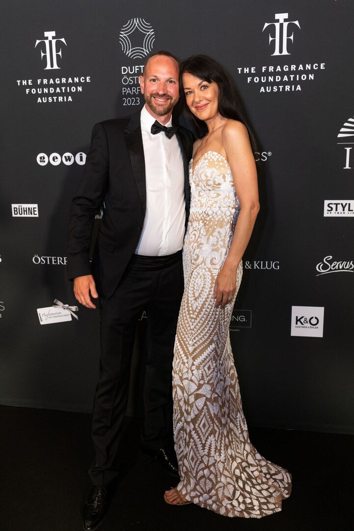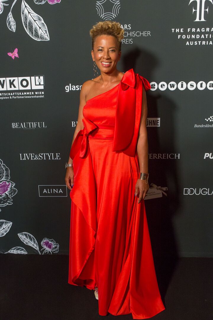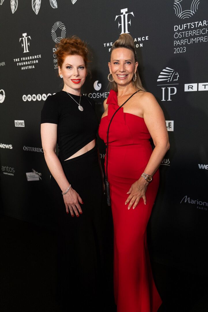 Mit viel Charme und äußerst souverän führte Arabella Kiesbauer in einer roten Traumrobe von Austro-Designerin Martina Callisti durch den Abend. Gemeinsam mit Kathrin Zlousic, der neuen Vereinspräsidentin der Fragrance Foundation und Market Director von L’Oréal Luxe, gab sie den Startschuss für die Verleihung.