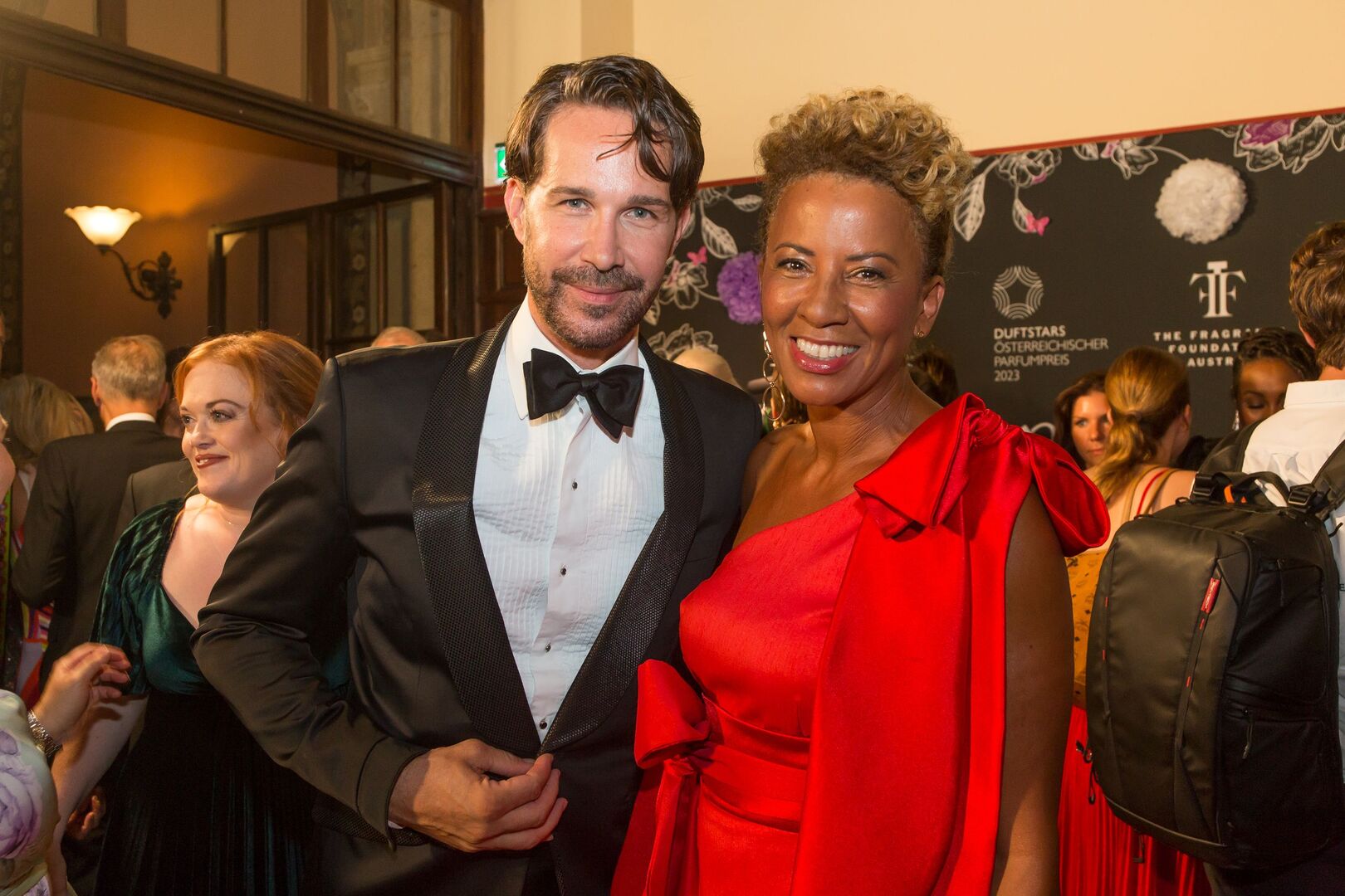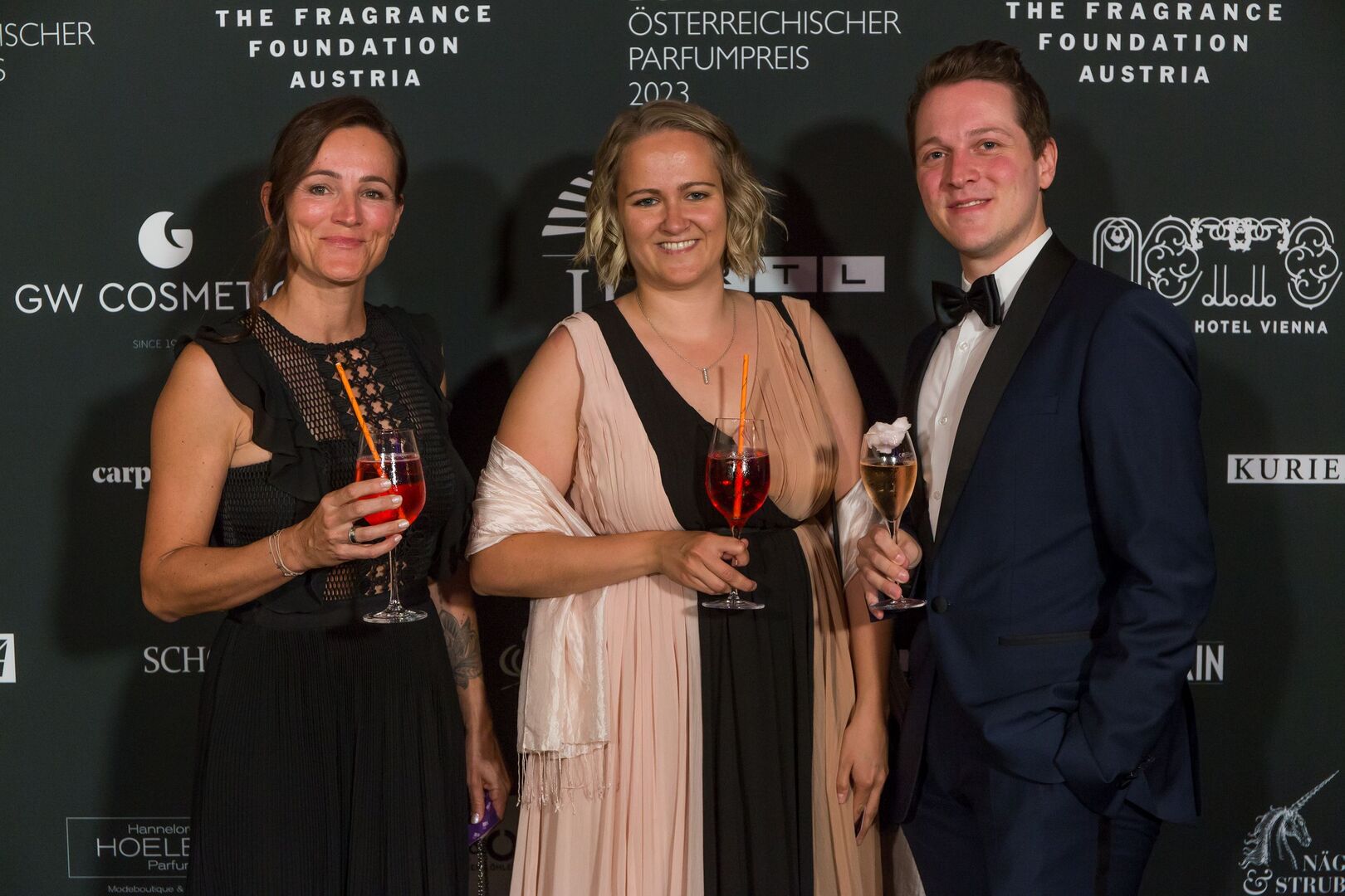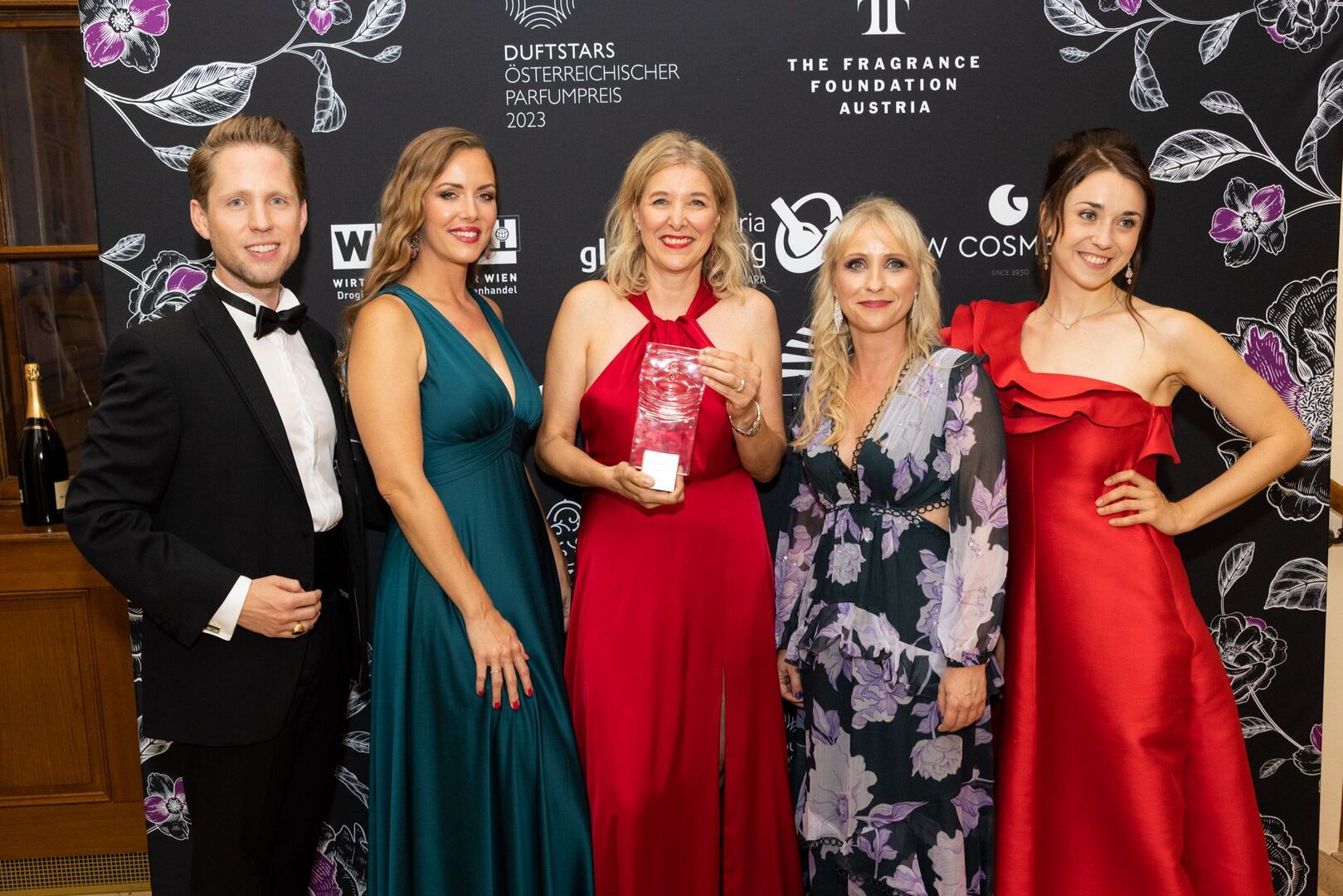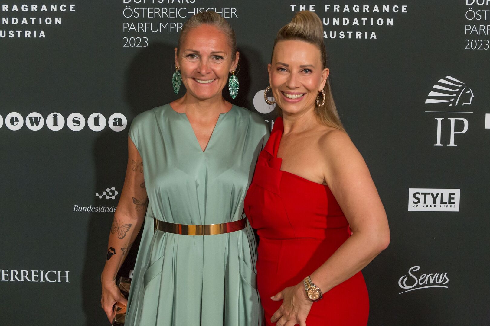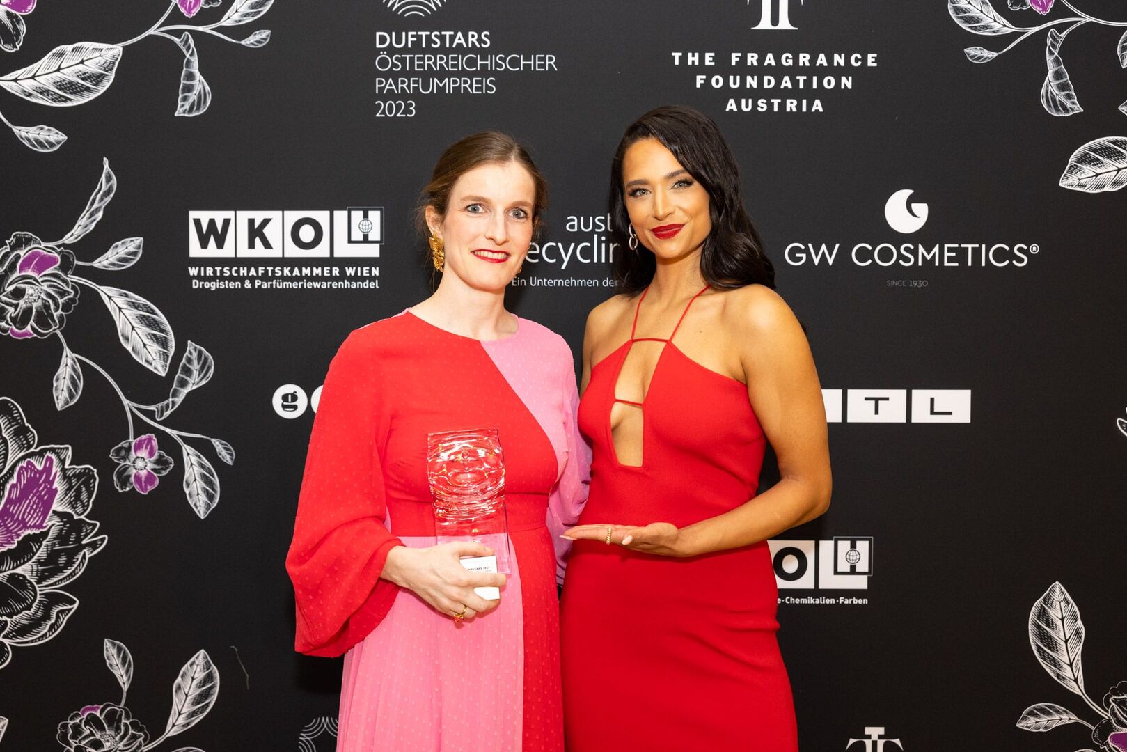 Mit viel Charme und äußerst souverän führte Arabella Kiesbauer in einer roten Traumrobe von Austro-Designerin Martina Callisti durch den Abend. Gemeinsam mit Kathrin Zlousic, der neuen Vereinspräsidentin der Fragrance Foundation und Market Director von L’Oréal Luxe, gab sie den Startschuss für die Verleihung.