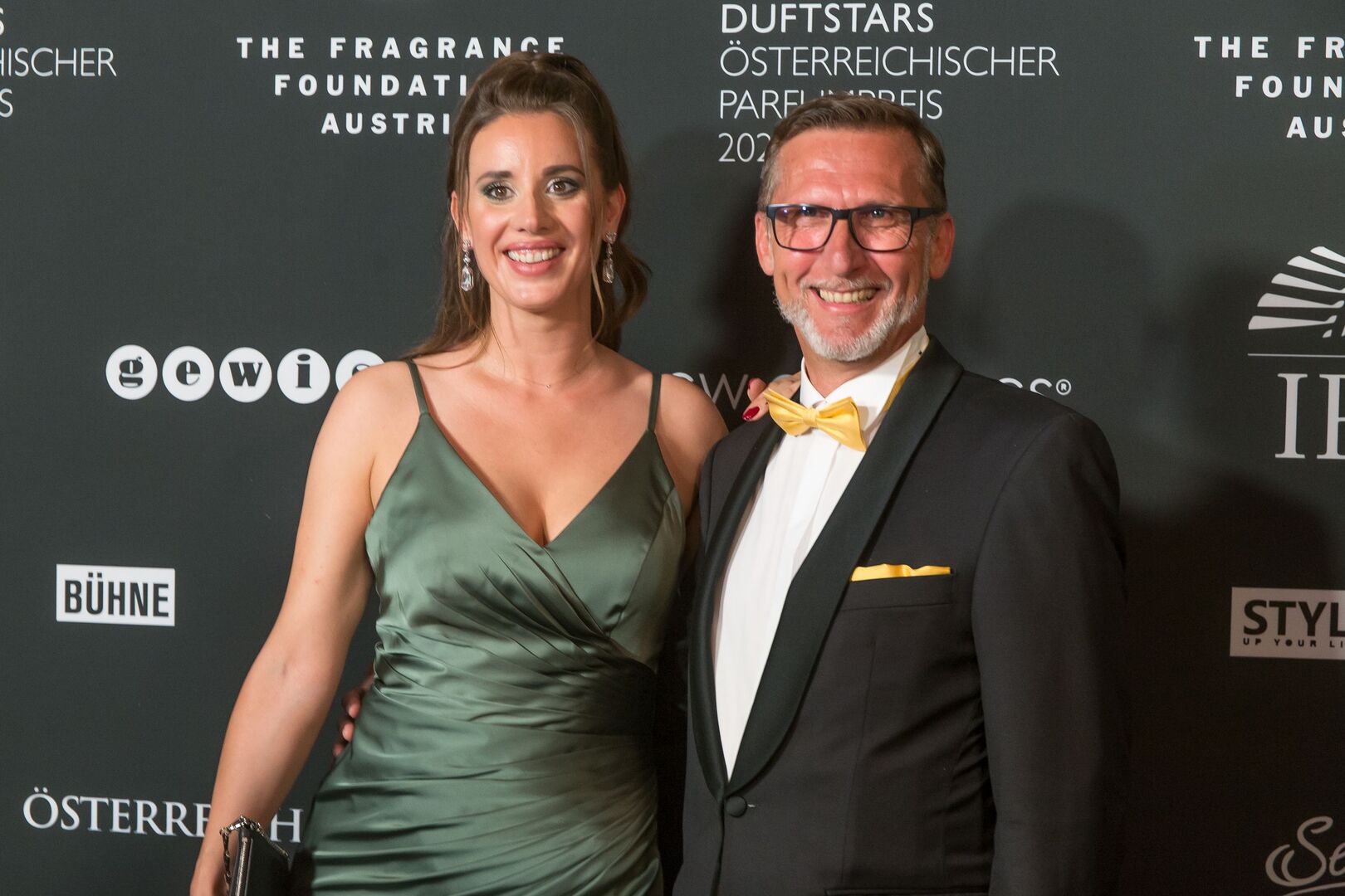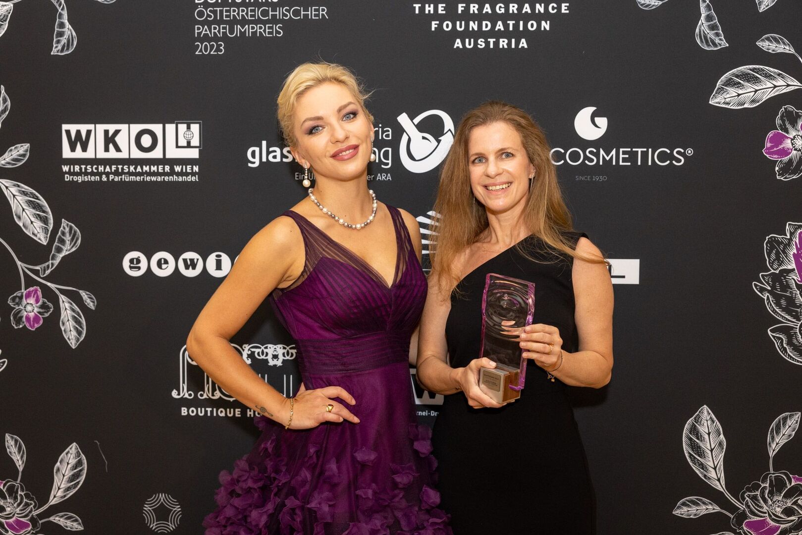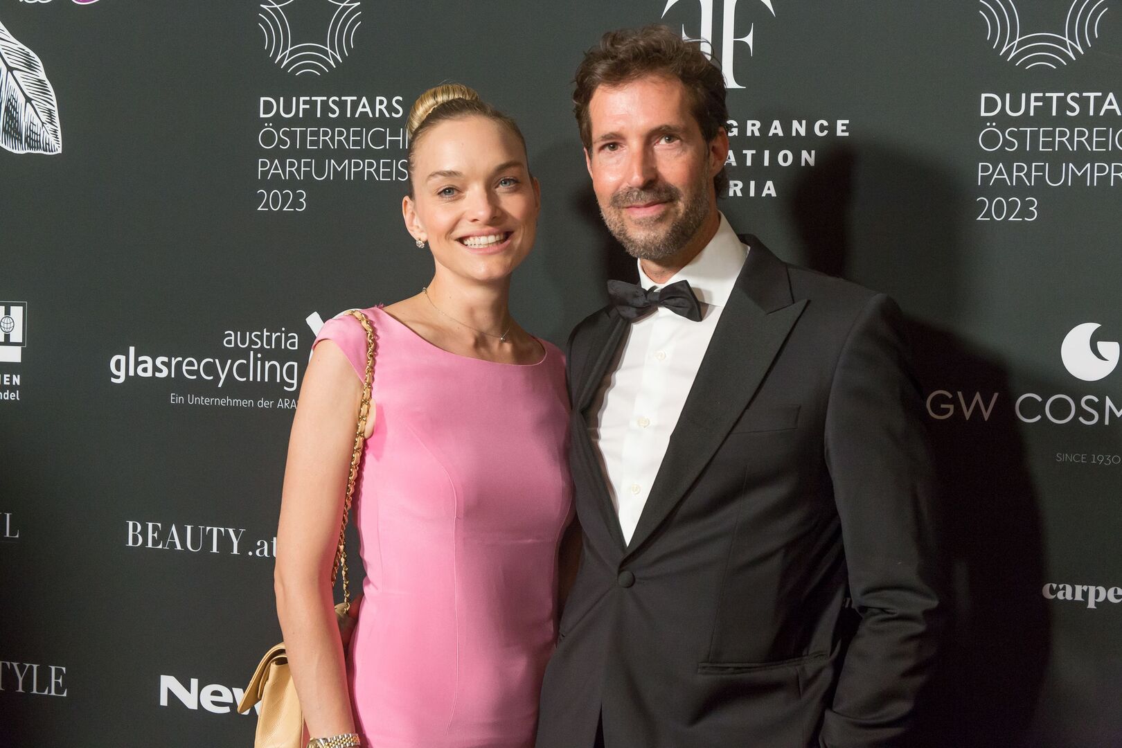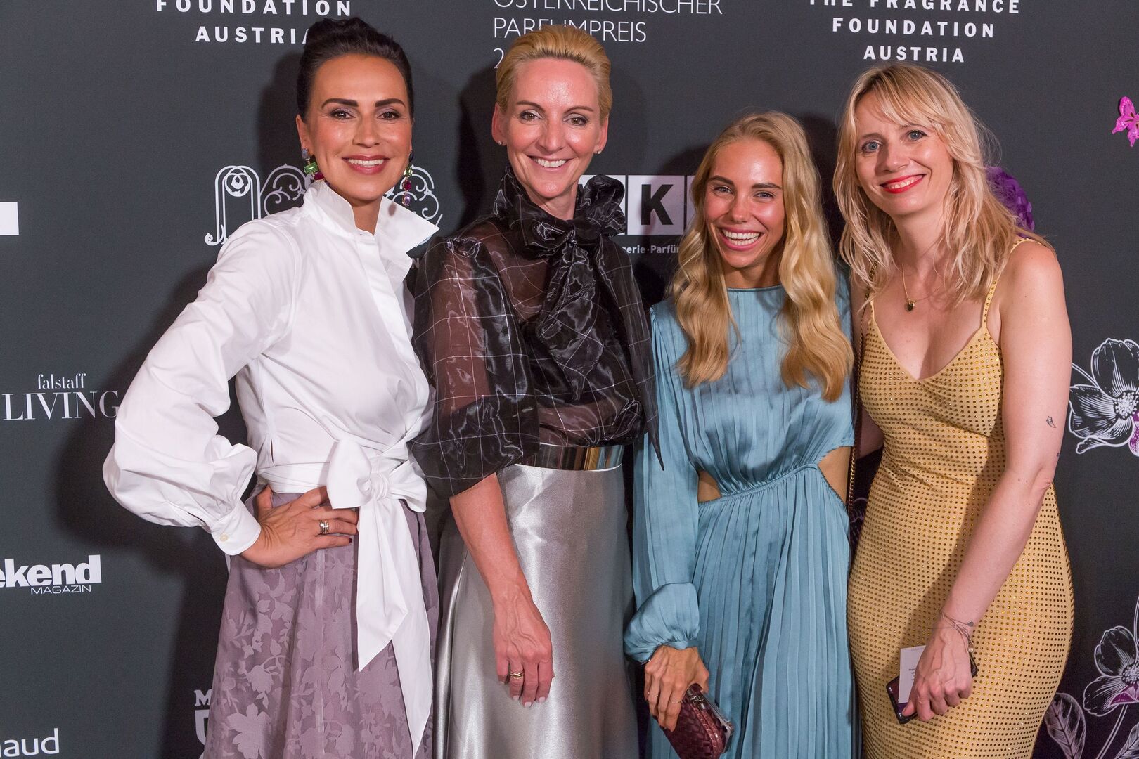 Mit viel Charme und äußerst souverän führte Arabella Kiesbauer in einer roten Traumrobe von Austro-Designerin Martina Callisti durch den Abend. Gemeinsam mit Kathrin Zlousic, der neuen Vereinspräsidentin der Fragrance Foundation und Market Director von L’Oréal Luxe, gab sie den Startschuss für die Verleihung.