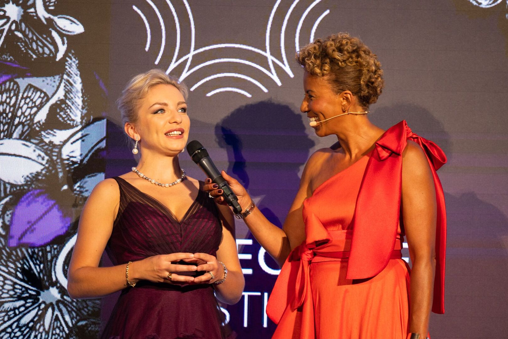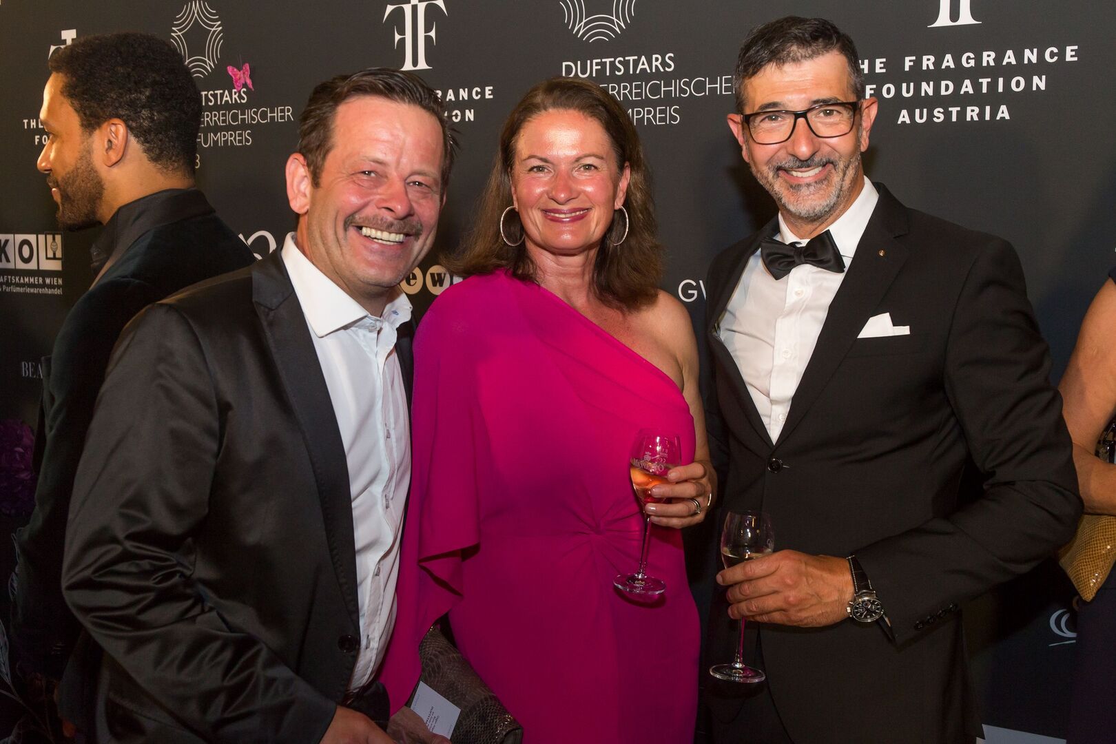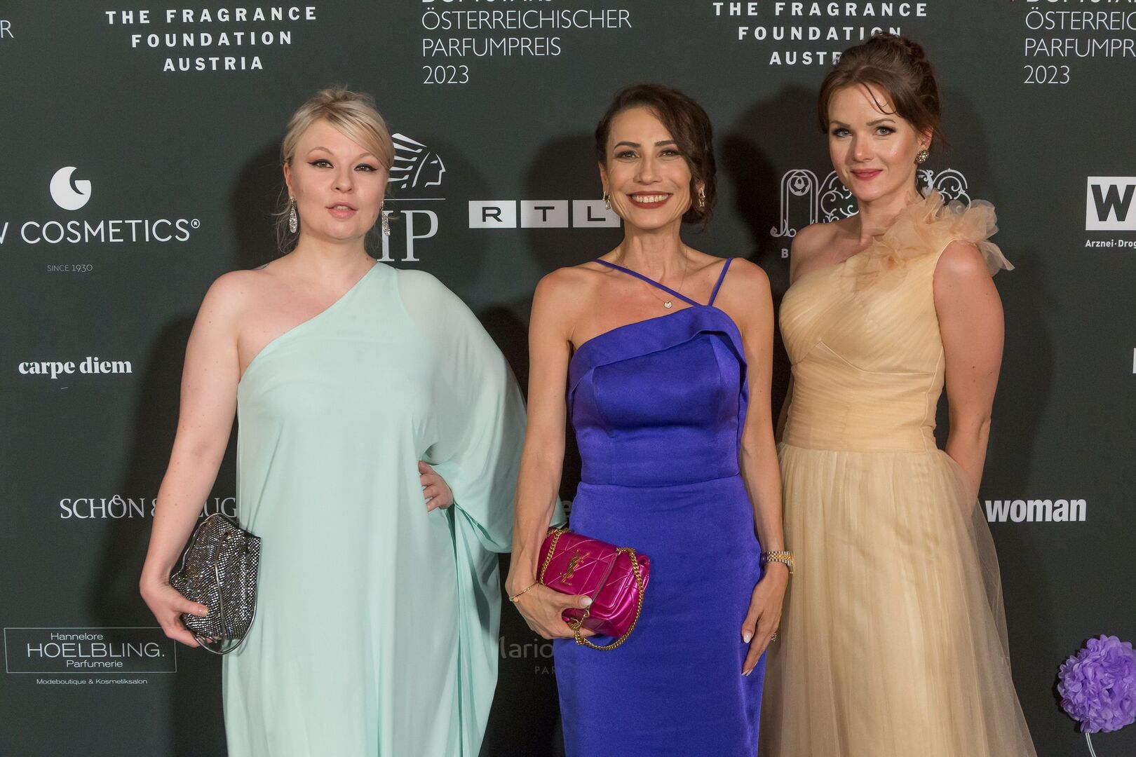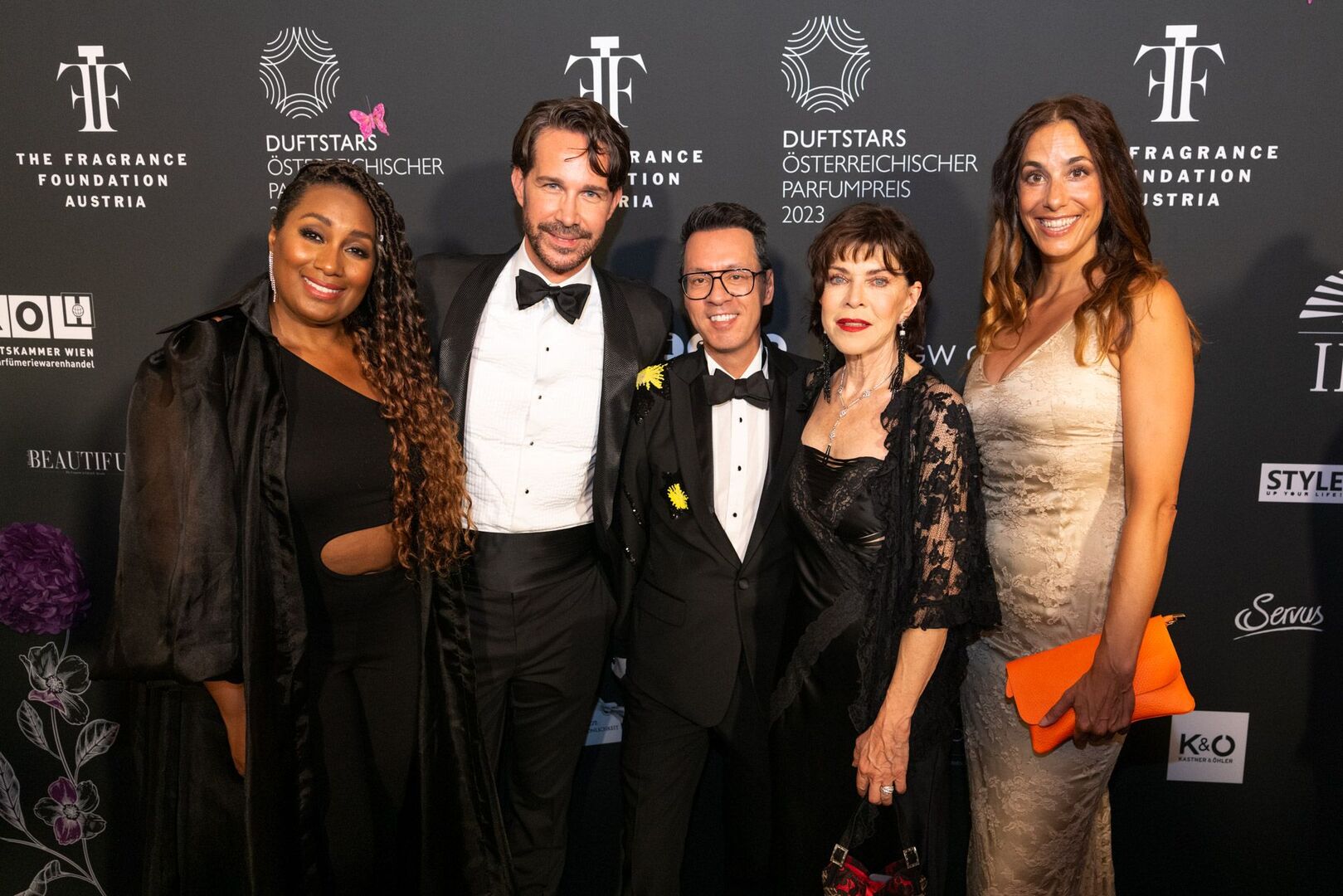 Mit viel Charme und äußerst souverän führte Arabella Kiesbauer in einer roten Traumrobe von Austro-Designerin Martina Callisti durch den Abend. Gemeinsam mit Kathrin Zlousic, der neuen Vereinspräsidentin der Fragrance Foundation und Market Director von L’Oréal Luxe, gab sie den Startschuss für die Verleihung.