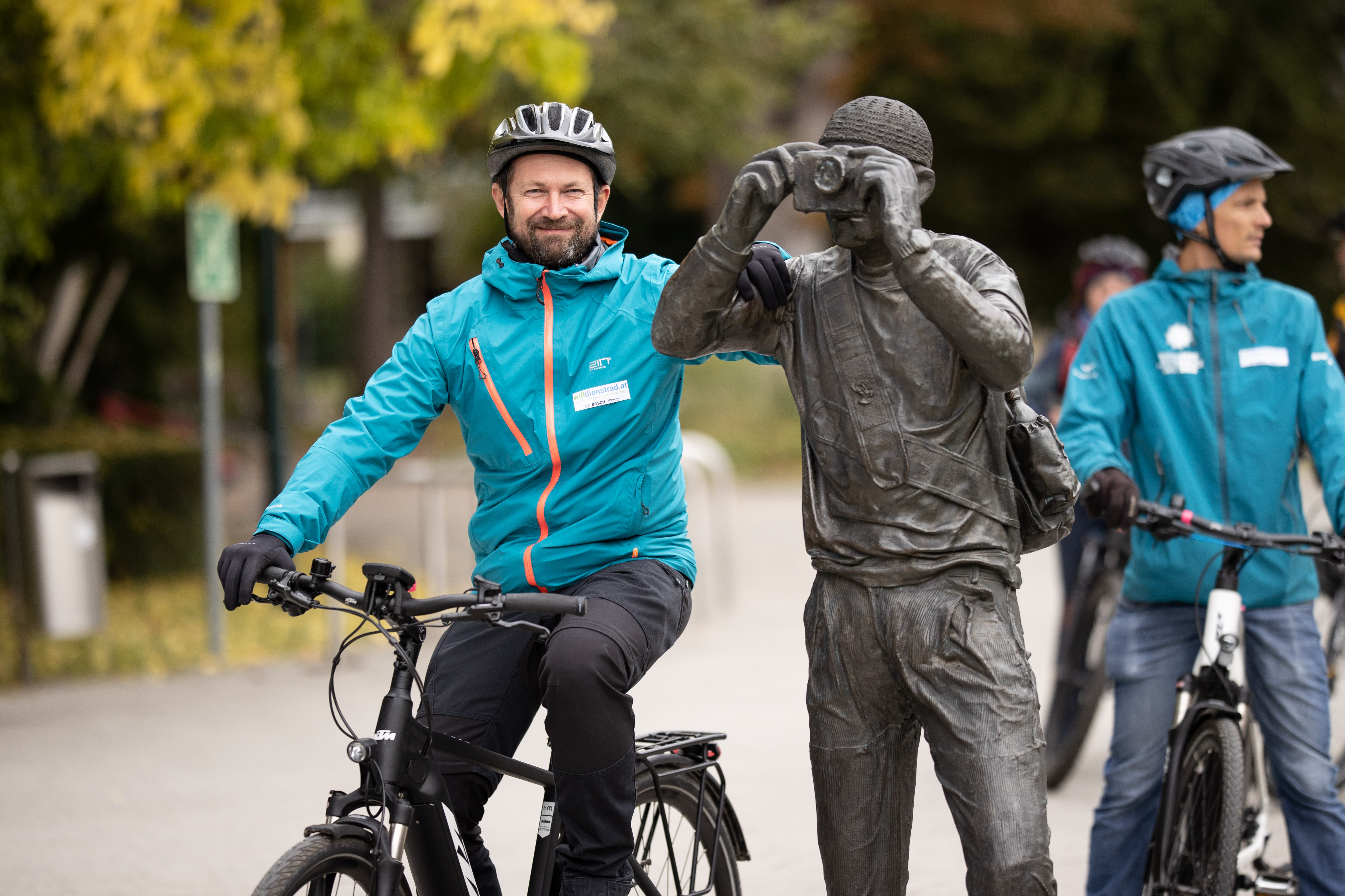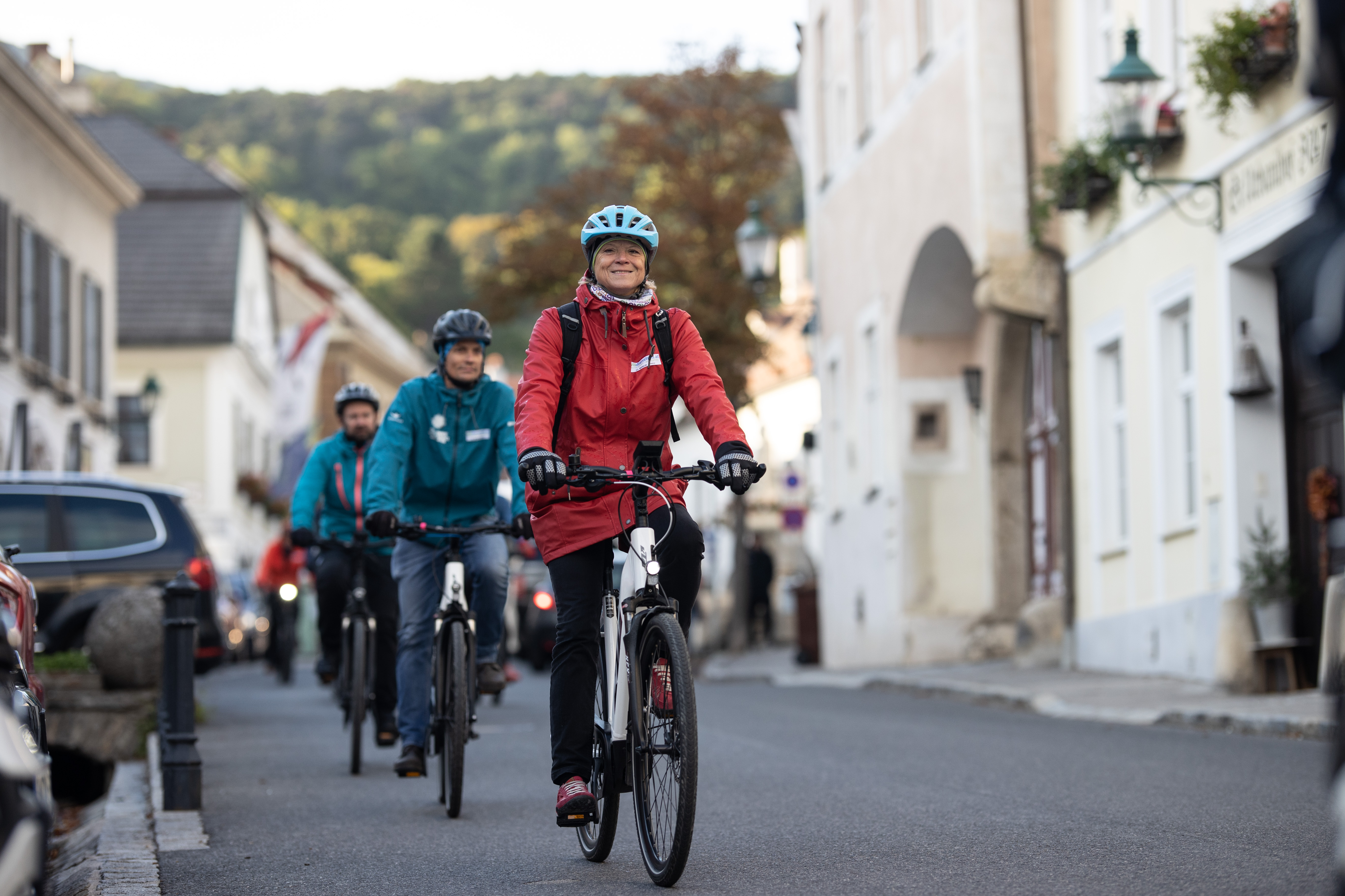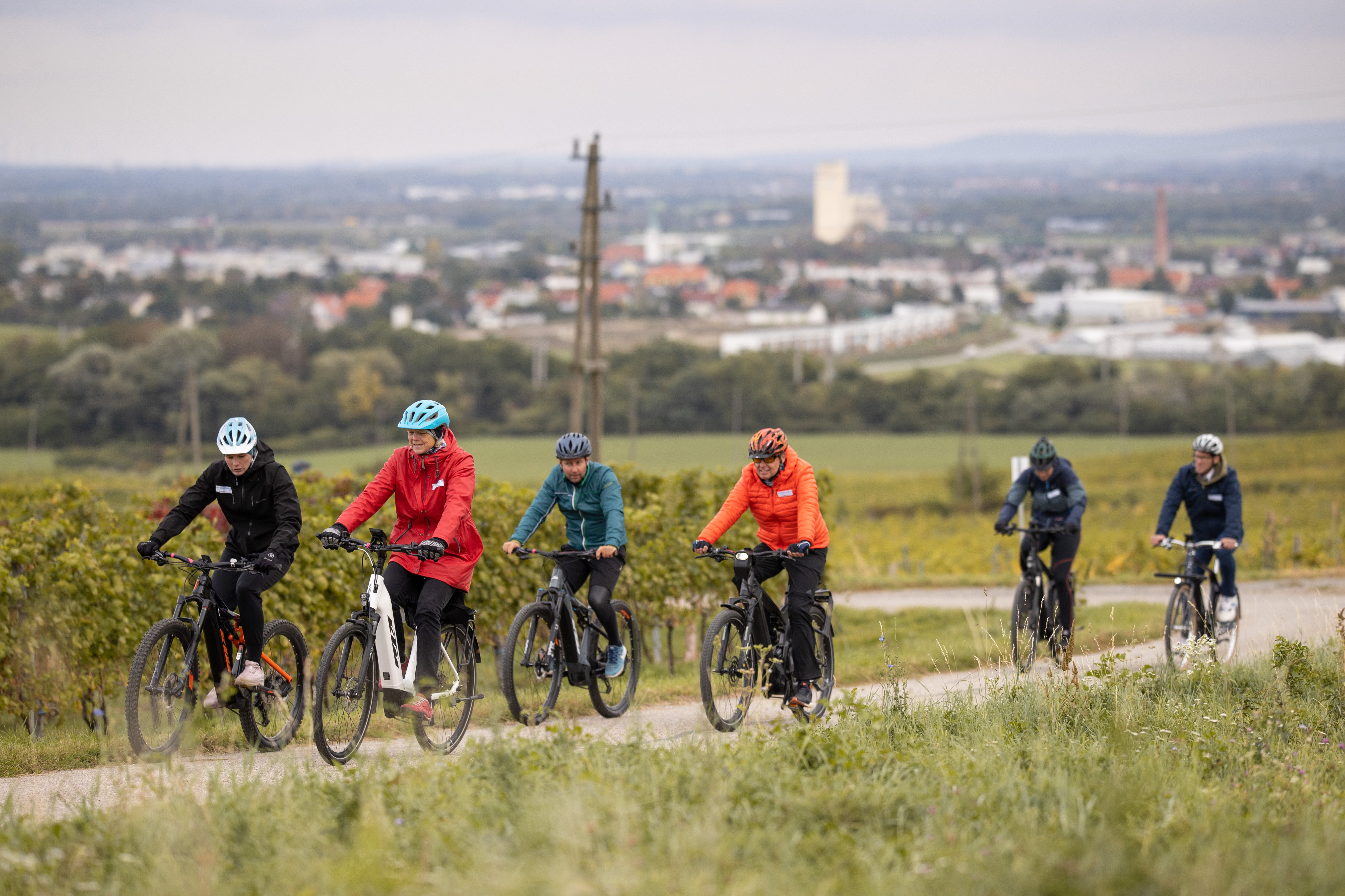 Bei einer Schnuppertour, organisiert von Bosch eBike Systems und dem Servicedienstleister willdienstrad.at, der ein eigenes Dienstradleasing-Modell auf den Weg gebracht hat, schwangen sich jetzt auch Manager, Medienvertreter und Sportstars bei Wind und Wetter auf das umweltfreundliche Verkehrsmittel. Beim Business Trekking Day radelte die bunte Truppe – angeführt von Radweltmeister Roland Königshofer – durch die herbstlichen Weingärten. Von Thallern bis nach Baden. Dort pausierte man bei der Fotoausstellung La Gacilly. Später ging es an zurück zum Ausgangspunkt.