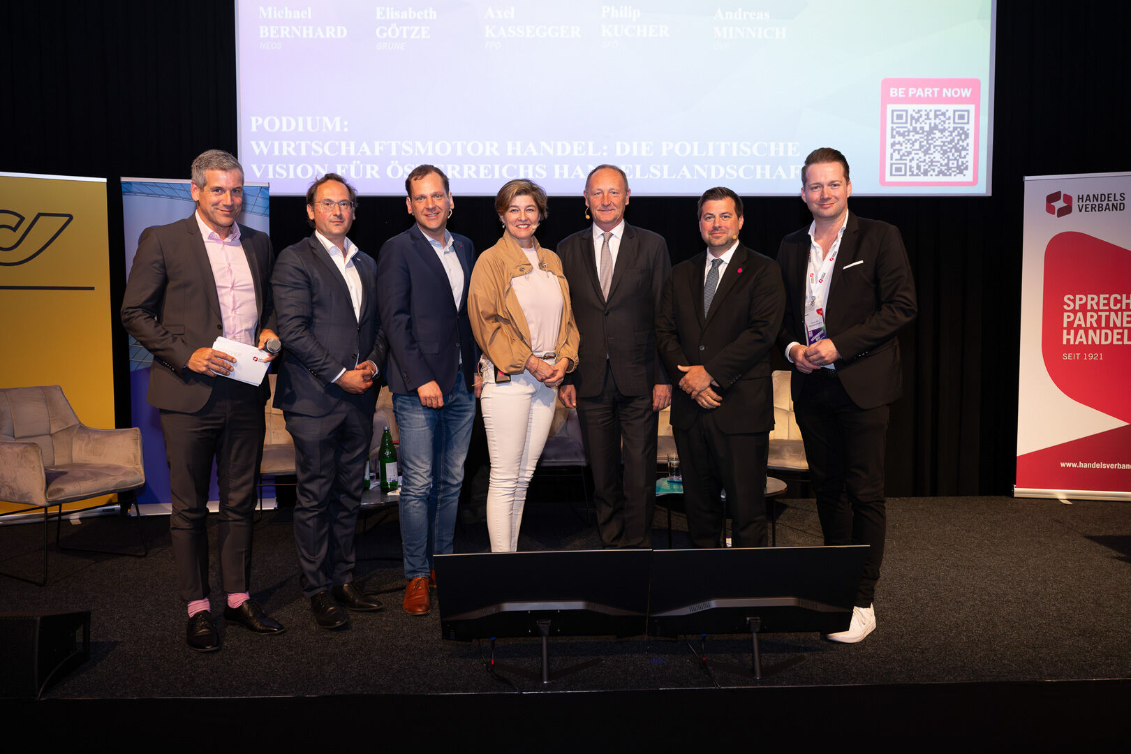 Das Polit-Podium mit allen Parlamentsfraktionen schloss das Event ab. NEOS-Abgeordneter Michael Bernhard, Grünen-Wirtschaftssprecherin Elisabeth Götze, FPÖ-Wirtschaftssprecher Axel Kassegger, SPÖ-Klubobmann Philip Kucher und ÖVP-Abgeordneter Andreas Minnich lieferten Antworten auf die Fragen des Publikums.