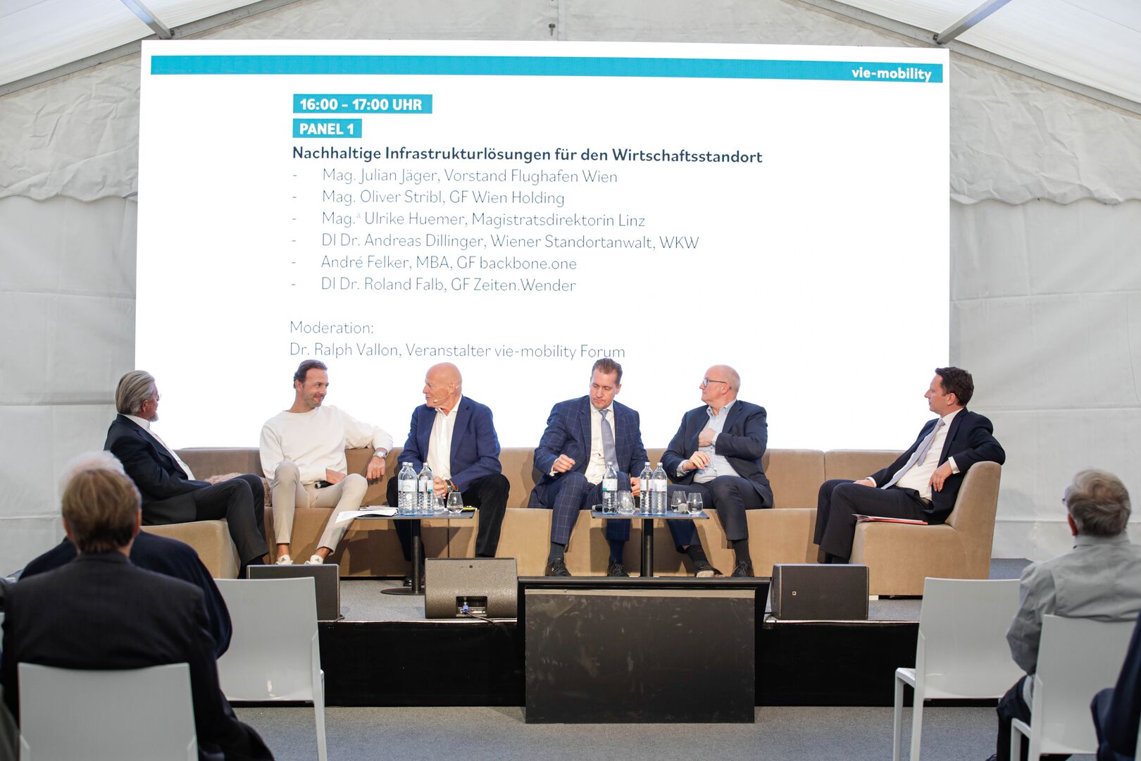 Im Rahmen der Wiener Elektro Tage gaben Persönlichkeiten der Automobilbranche im Palais Niederösterreich vor etwa 350 geladenen Gästen Einblicke in die Zukunft der Mobilität. Die zentrale Botschaft des Abends: Die Mobilität der Zukunft wird elektrisch sein. Mit dabei waren: Hans Dieter Pötsch, Aufsichtsratsvorsitzender der Porsche Holding Salzburg, Luca de Meo, Präsident des Europäischen Automobilverbands und CEO der Renault Group, Gernot Döllner, Vorstandsvorsitzender der AUDI AG, sowie Alexander Vlaskamp, CEO von MAN Truck & Bus SE. Den Abschluss bildete ein Panel, das von ORF-Moderator Stefan Lenglinger geleitet wurde.