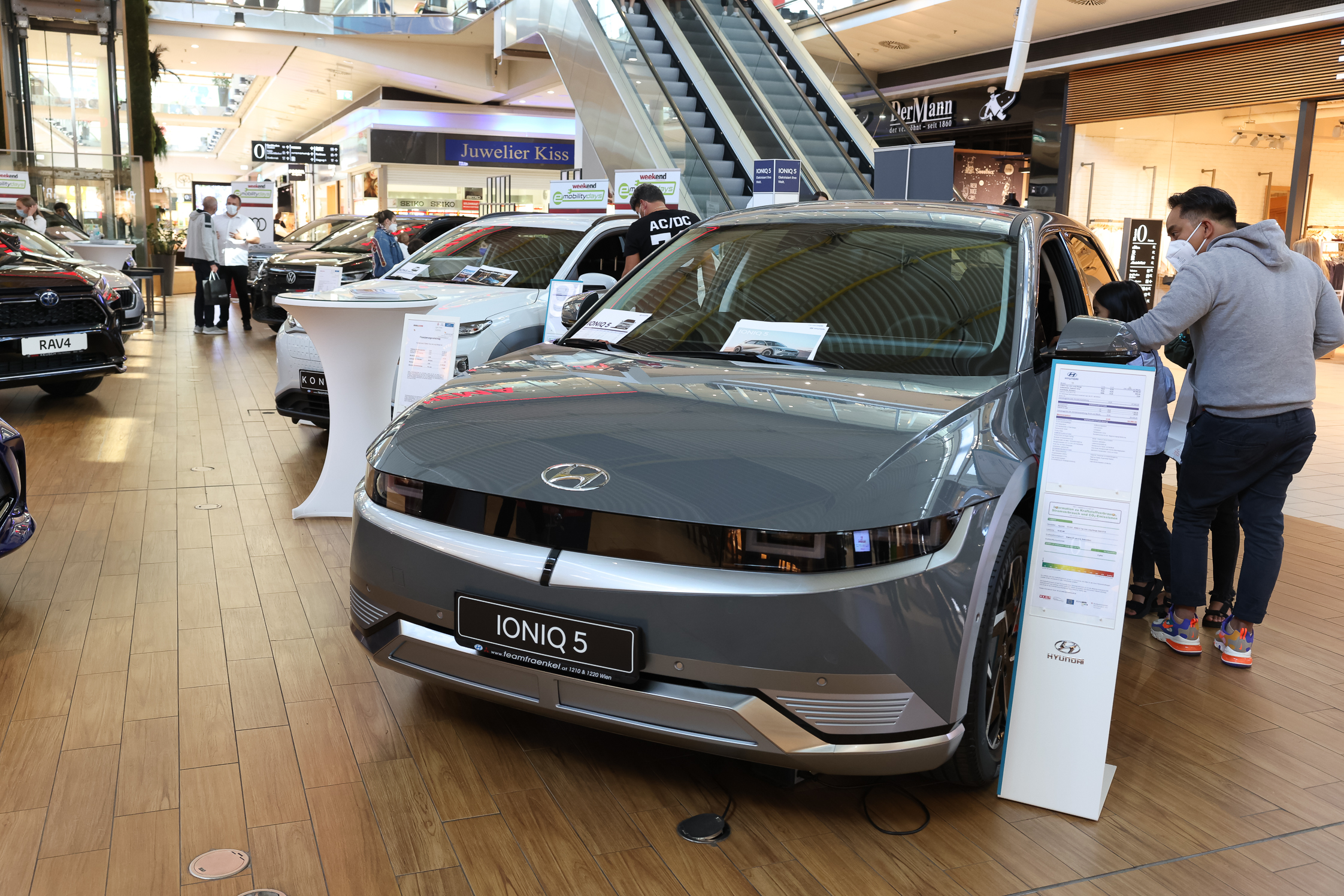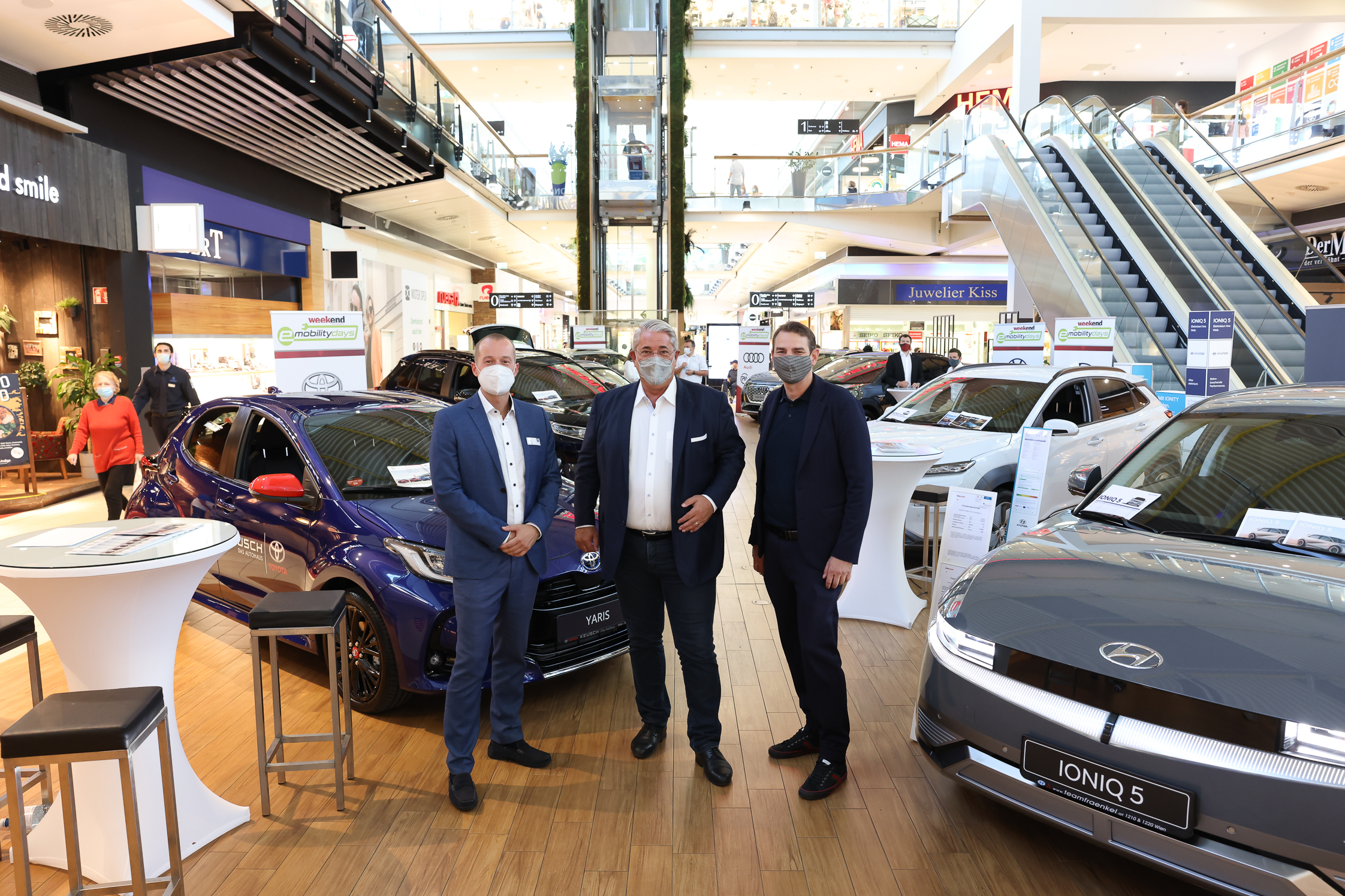 Große Parade rund um E-und Hybrid-Autos sowie Plug-ins: Wiens Händler standen zwei Tage lang den Besuchern der Shopping Mall Rede und Antwort. Wie funktioniert die neue Mobilität? Was können die Modelle? Mit an Bord waren neben zahlreichen Händlern auch das Österreichische Bundesheer, Greenride und der ARBÖ. Beim Glücksrad sicherten sich zehn Gewinner exklusive Wochenend-Probefahrten. Der Sieger des Hauptpreises kann seinen E-Boliden zusätzlich im „At the Park Hotel“ einparken.