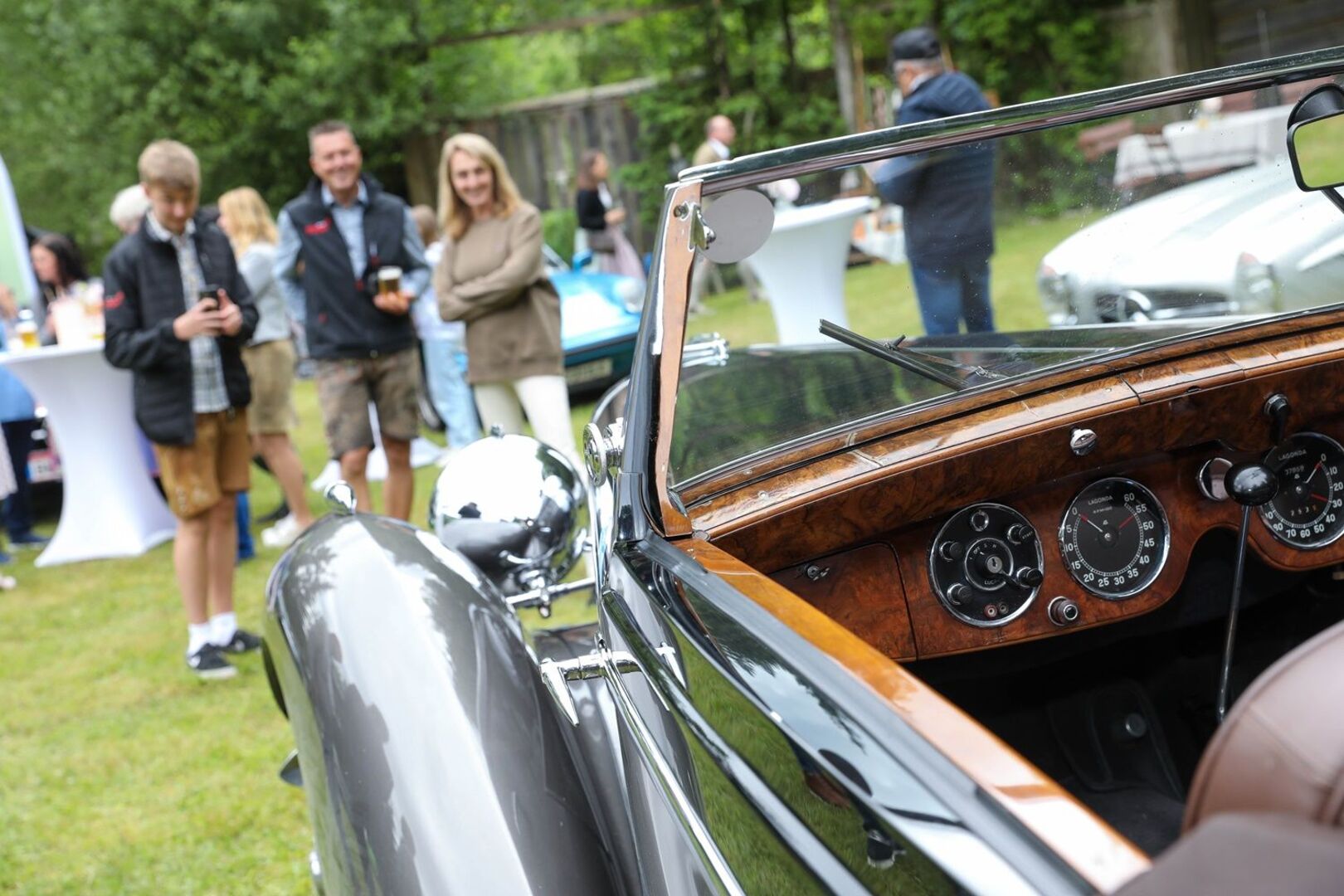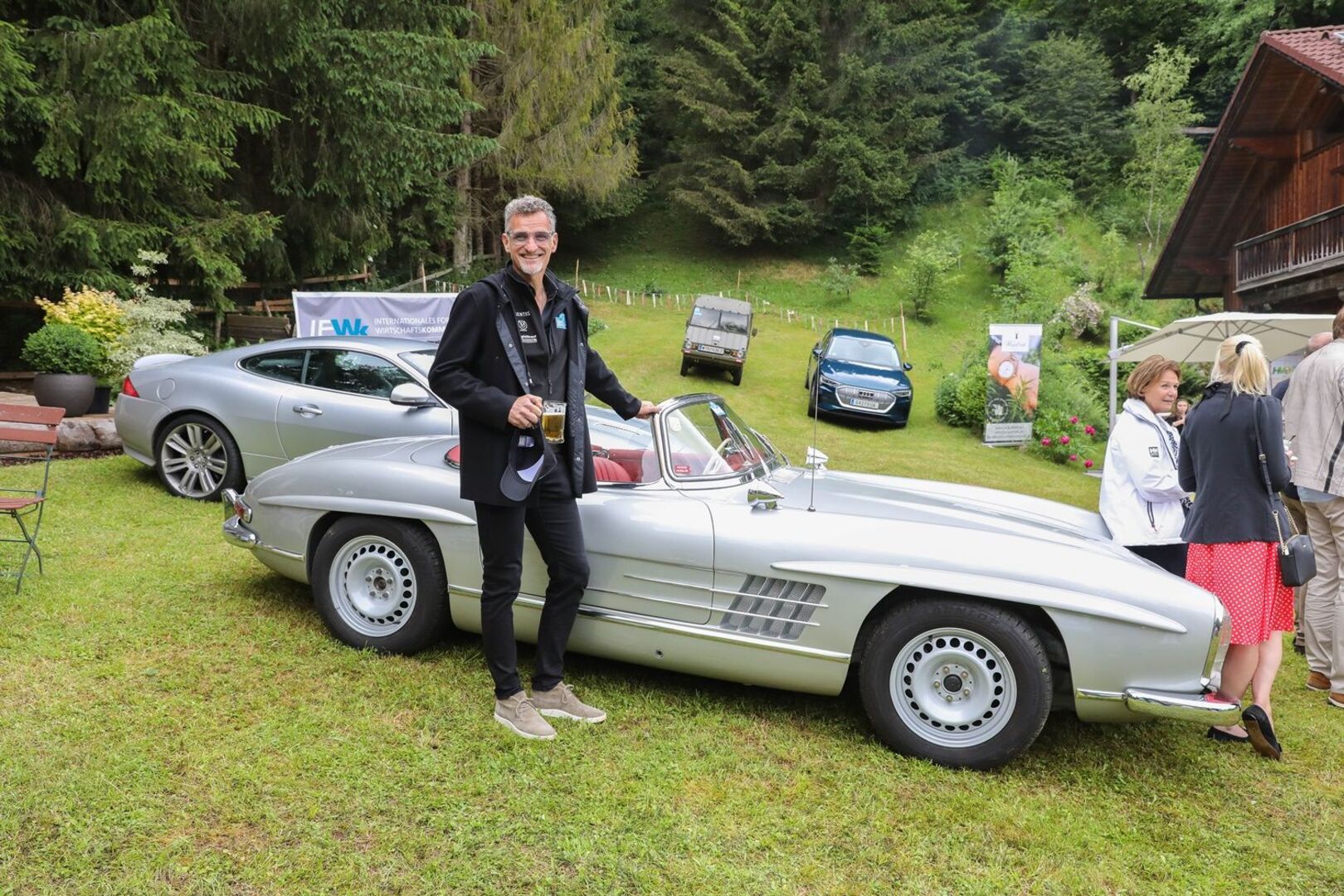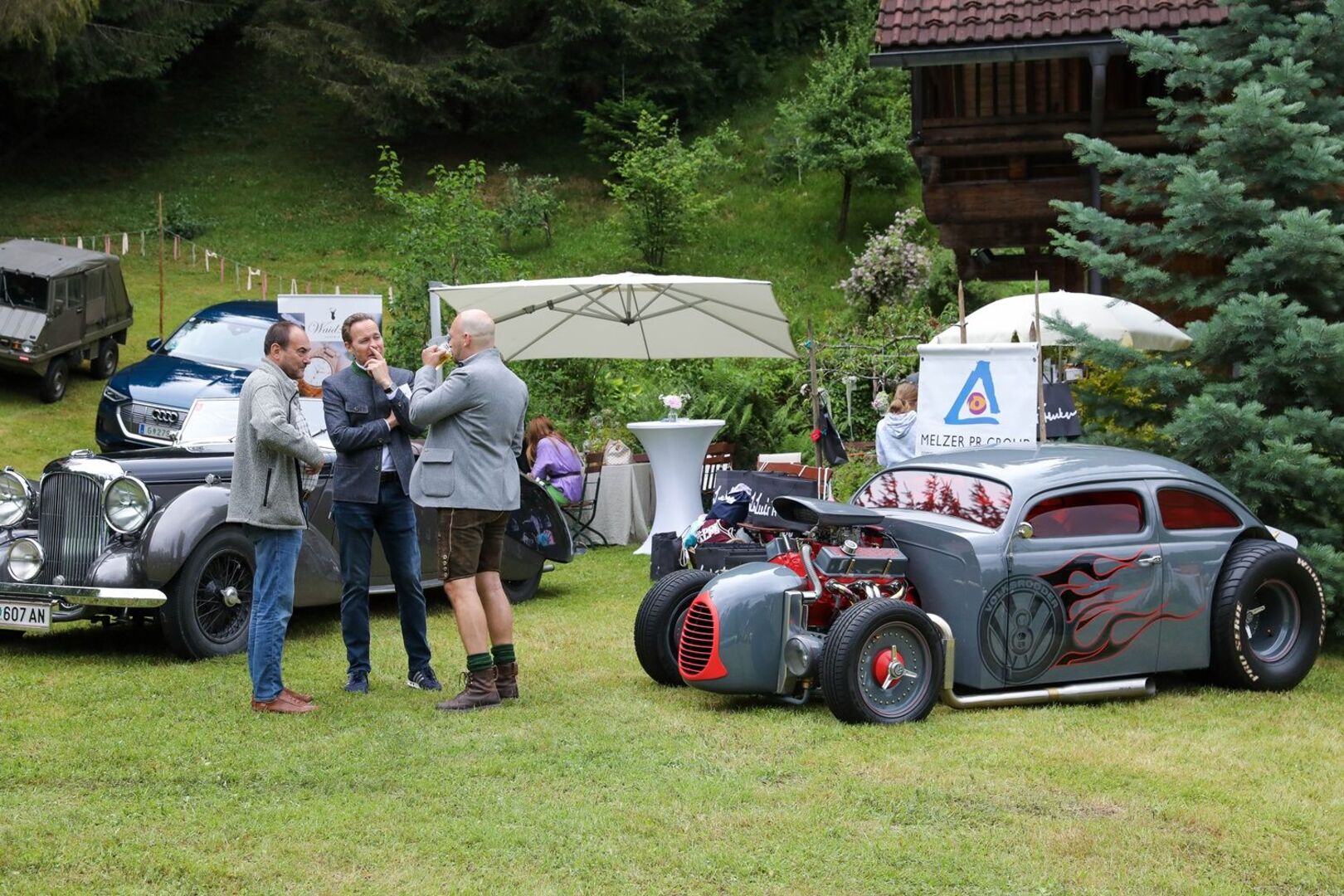 Unter Blues-Begleitung von Easy Rider und Daniel Ecklbauer sowie einer spontanen Gesangseinlage von Knud Tiroch fachsimpelten die Gäste über die automobilen Schönheiten. Darunter war ein Lagonda V12 Rapide, Baujahr 1940, mit dem Maria und Josef Gsellmann aus Gnas anreisten. Die „Maschinenflüsterer“ Barbara und Martin Eisenberger pilotierten ihren Porsche 356 Speedster, BJ 1956, ins Ennstal. Thomas Lutzky von Phoenix Contact und Andrea Papke, Atradius, kamen im 911er Carrera Targa aus 1974. Aus österreichischer Sicht erfreulich war die Präsenz eines Steyr-Puch Haflingers aus dem Jahre 1964