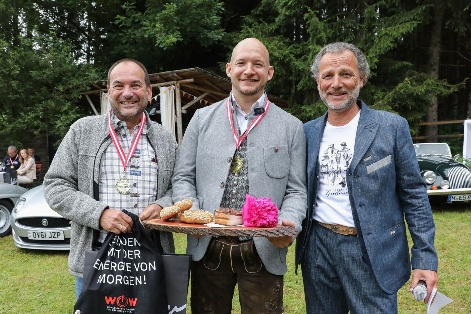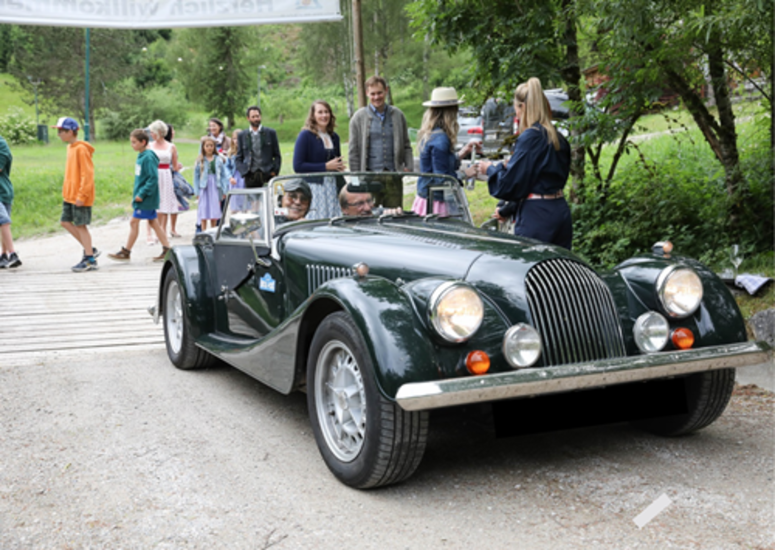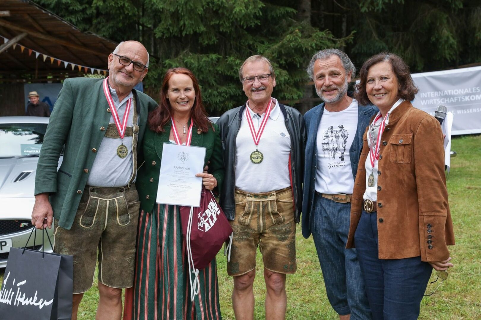 Unter Blues-Begleitung von Easy Rider und Daniel Ecklbauer sowie einer spontanen Gesangseinlage von Knud Tiroch fachsimpelten die Gäste über die automobilen Schönheiten. Darunter war ein Lagonda V12 Rapide, Baujahr 1940, mit dem Maria und Josef Gsellmann aus Gnas anreisten. Die „Maschinenflüsterer“ Barbara und Martin Eisenberger pilotierten ihren Porsche 356 Speedster, BJ 1956, ins Ennstal. Thomas Lutzky von Phoenix Contact und Andrea Papke, Atradius, kamen im 911er Carrera Targa aus 1974. Aus österreichischer Sicht erfreulich war die Präsenz eines Steyr-Puch Haflingers aus dem Jahre 1964
