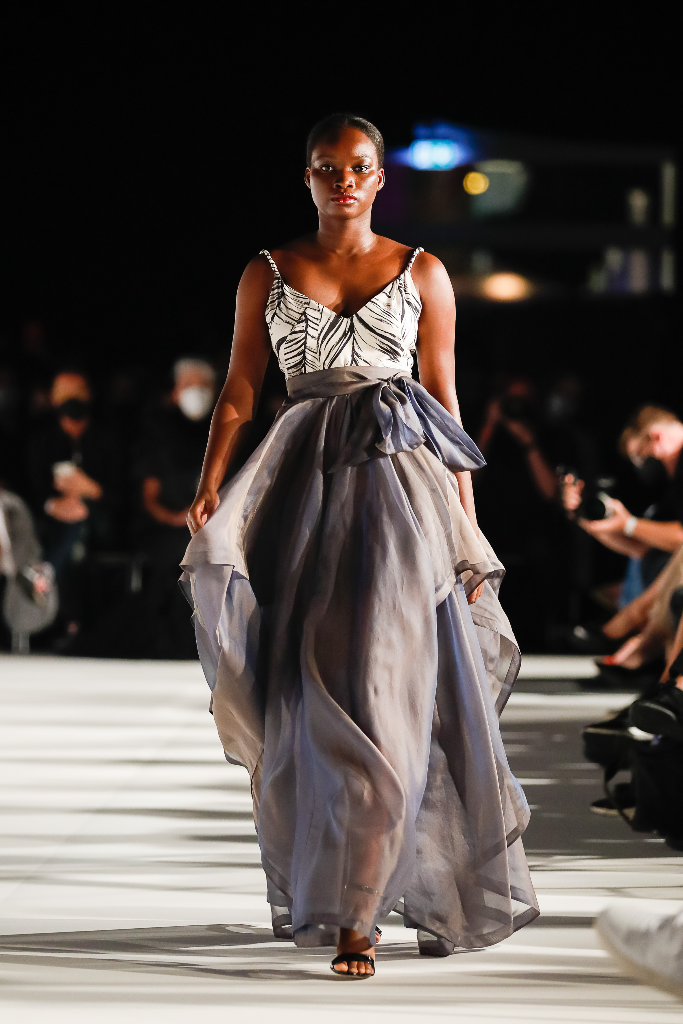 Eröffnet wurde die 13. Ausgabe der „MQ Vienna Fashionweek“ von Kulturstadträtin Veronica Kaup-Hasler und Jürgen Meindl, Leiter der Kunst- und Kultursektion des BKA. Auch Elvyra Geyer, Zigi Mueller-Matyas und Maria Oberfrank ergriffen zum Kick-off das Wort. „Die Designer hatten es besonders schwer“, erzählte das Veranstalterinnen-Trio mit Blick auf die vergangenen, von der Pandemie geprägten Monate. Auch deshalb habe man das Bestes getan, die Fashionweek überhaupt stattfinden zu lassen.