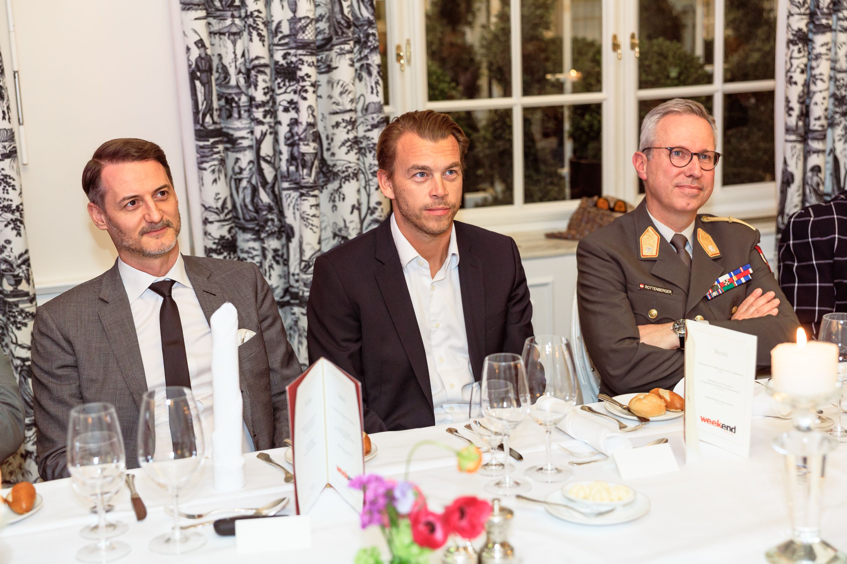 Mit dabei waren: Georg Greutter (Waste2Energy), Harald Knoll (Stargate Group), Sascha Haimovici (IMMOcontract/Sotheby’s Austria) Bernd Michlitsch (BM Projekt), Nikolaus Rottenberger (Bundesministerium für Landesverteidigung), Ralf-Wolfgang Lothert (JTI), Ernst Minar (John Harris), Norbert W. Scheele (C&A), Boris Todoroff (Best Therapy), Hermann Hoch (Hoch Invest), Adolf Kerbl (Wirtschaftskammer/Fachverband Metalltechnische Industrie), Davor Sertic (UnitCargo), Jürgen Brettschneider (Mautner Markhof), Robert Stolz (Culligan), Eva Christina Schwarzl (WienIT), Helmut Schwarzl (Geberit), Thomas Lichtblau (Casinos Austria), Bernd Bartosek (Bartosek Medical), Christian Will (Makita), Gerhard Prüwasser (Weekend Verlag) und Ezard Meenen (L’Oréal).