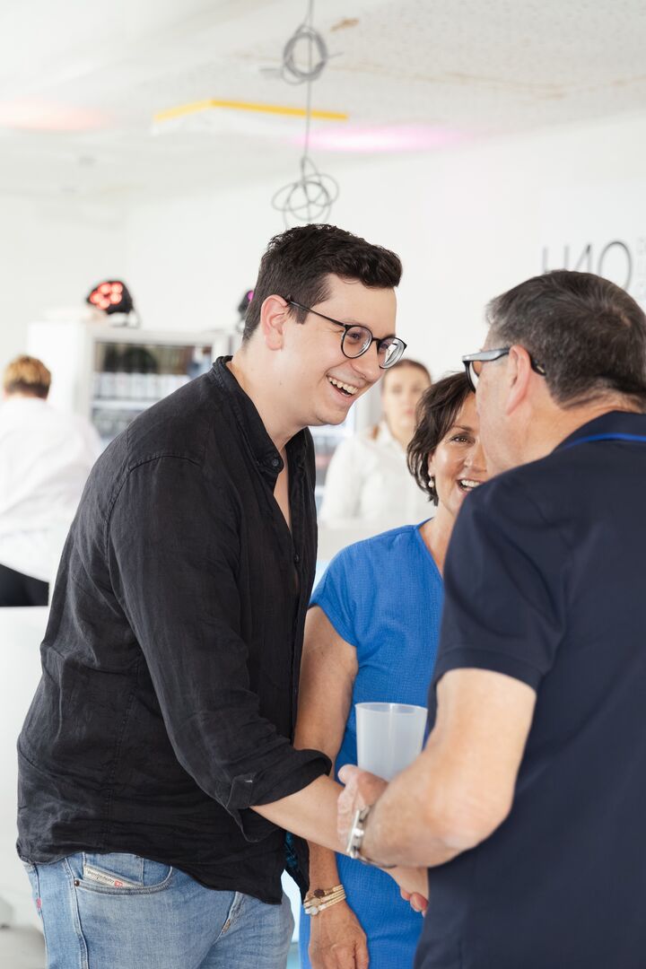 Kuratiert vom Künstler Moody (Maroon Akkad) prägte die Veranstaltung eine neue Verbindung von Gesundheitsraum und Kultur. Live-Painting ("Kunsttherapie"), die Performance "Du bist, was du isst", sowie Musik von @trashtray, @prodbypengg, @alexishera_, @benguy_1 und @sarasunsheine machten deutlich: H4O ist mehr als eine Zahnarztpraxis. Gefeiert wurde zwischen Baugerüsten und unverputzten Wänden – nicht als Notlösung, sondern als Zeichen: Hier entsteht etwas Echtes, Offenes, und für viele. Auch kulinarisch wurden Kontraste gesetzt: Von veganen Kompositionen bis zu WagyuSpezialitäten serviert vom Wiener Würstelstand.