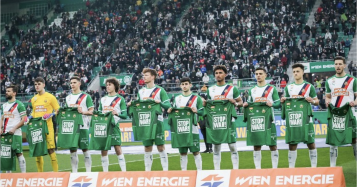 Der Krieg in der Ukraine lässt auch die Grün-Weißen nicht kalt. Beim letzten Auswärtsspiel in Tirol wie auch in Hütteldorf kam es zu mehr als nur Solidaritätsbekundungen. Unter dem Slogan „Stop War“ rückten neben den Spielern auch die Fans zusammen und haben gleich eine Hilfsaktion auf die Beine gestellt.