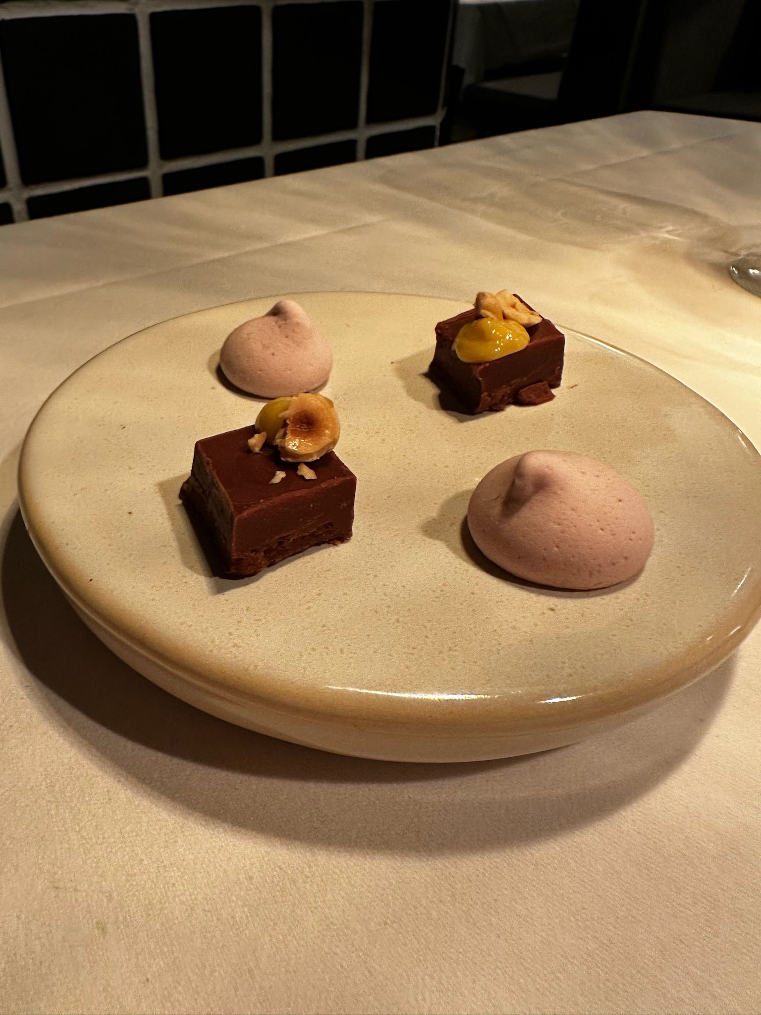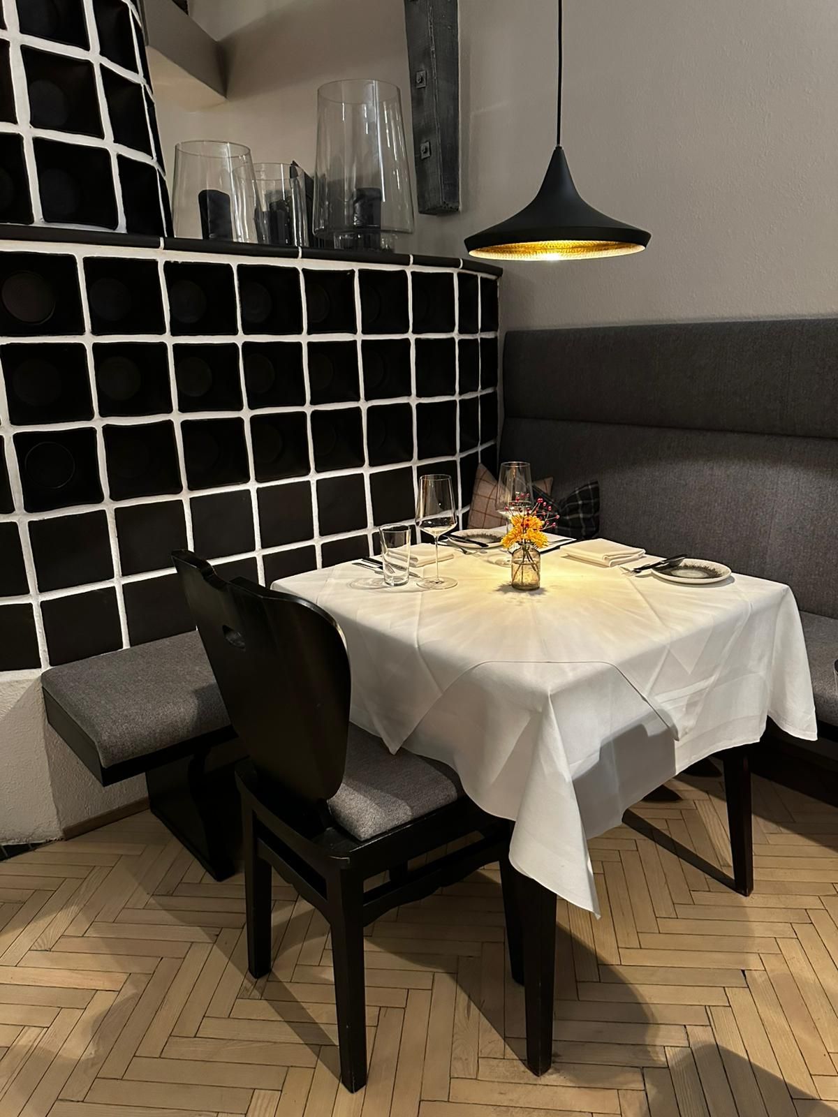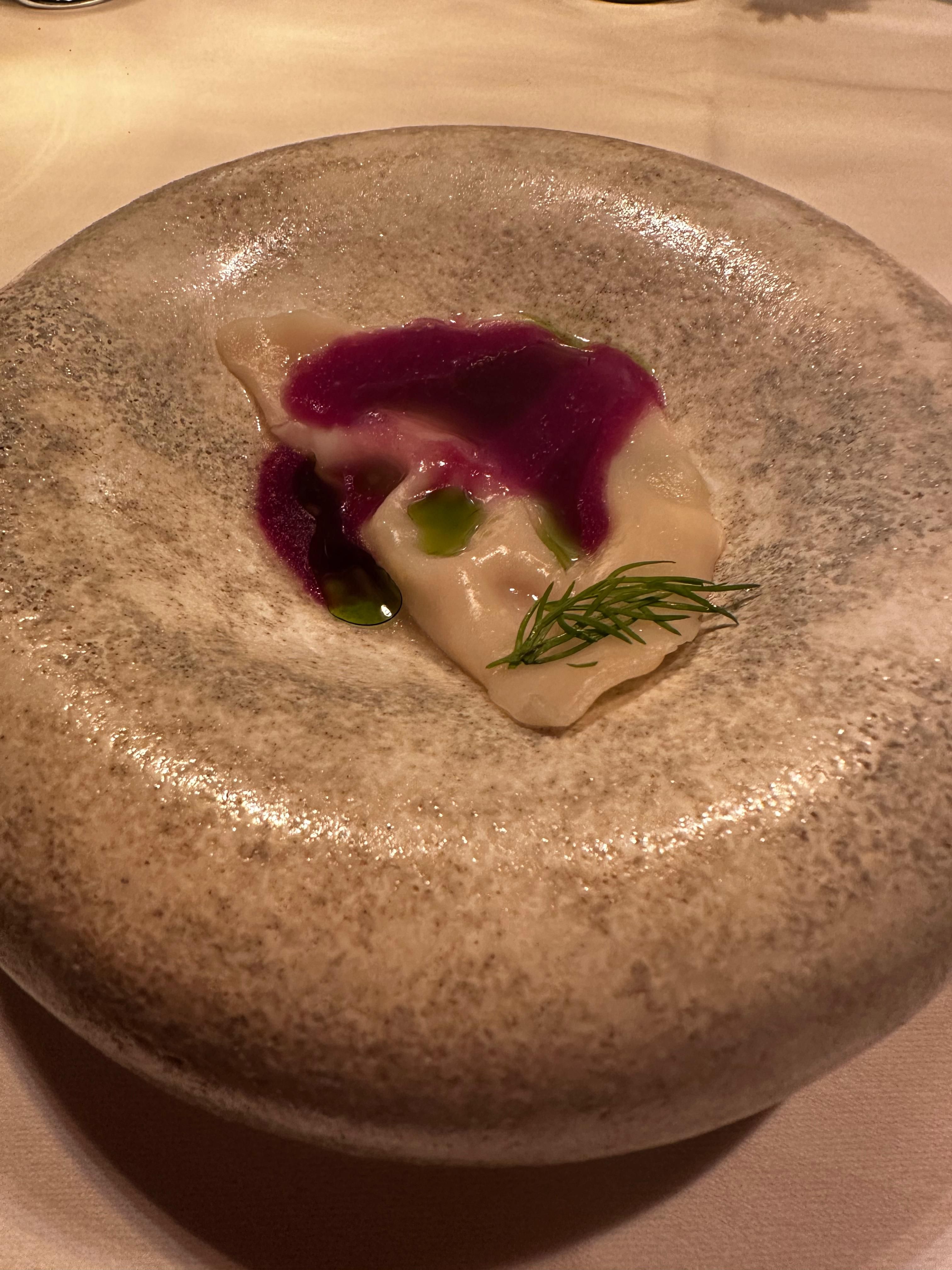 Bevor das Gansl auf den Tisch kommt, überrascht die Küche mit "Ganslgyoza" in Rote-Rüben-Saft und Dill-Öl. Süß, sauer, salzig und voller Umami. Dann der Hauptgang – das Gansl klassisch gebraten, die Brust rosa, das Haxerl mit knuspriger Haut und zartem Fleisch. Der Semmelknödel fluffig, das Rotkraut fruchtig und festlich. Begleitet wird das Ganze von einem Syrah aus Carnuntum, kräftig, warm und perfekt abgestimmt.