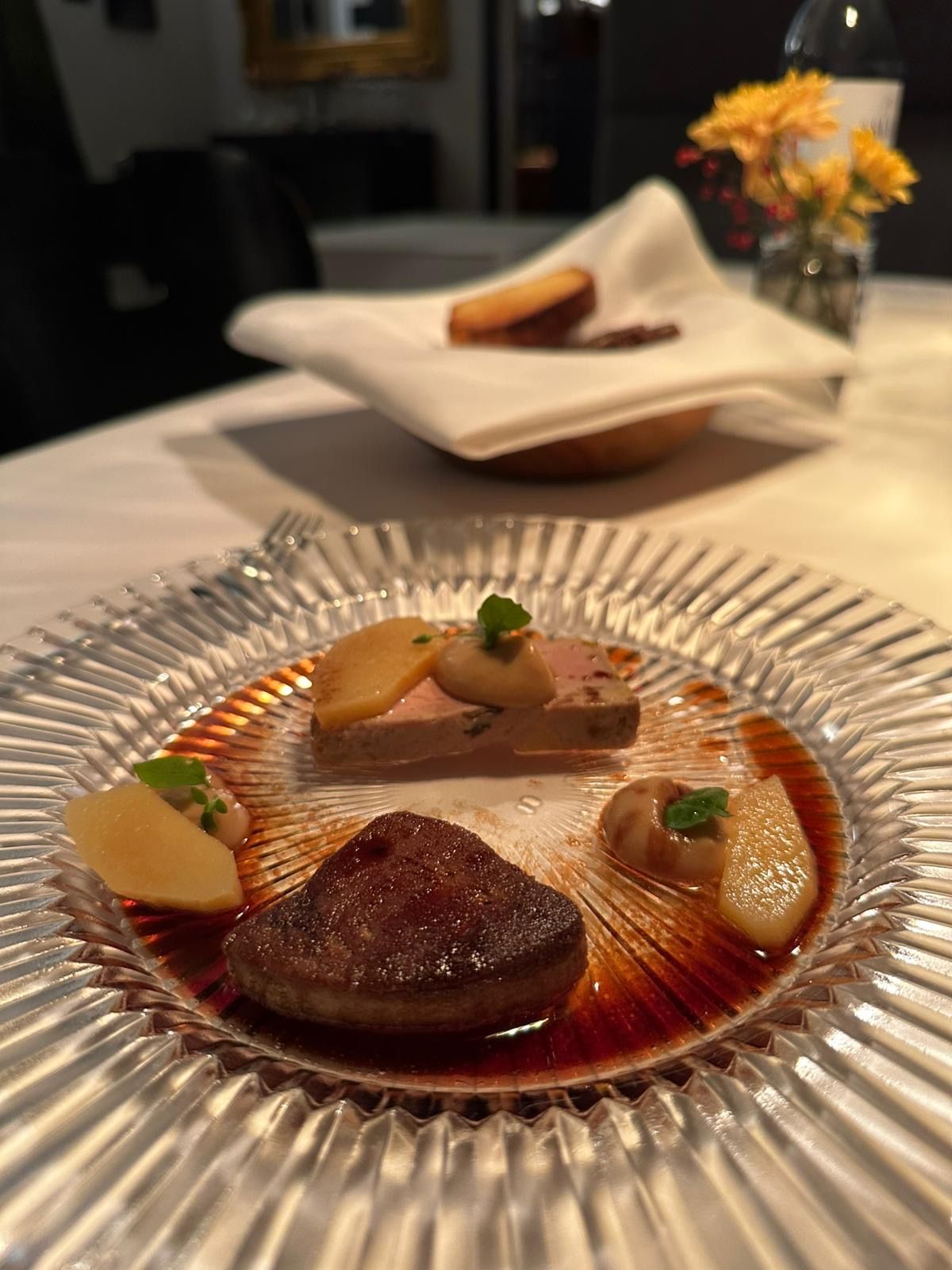 Die Gänseleber kommt gleich doppelt, gebraten und als Terrine. Dazu leuchten Quitten aus dem eigenen Garten und ein feiner Senf von Praskac. Fruchtig, leicht scharf und wunderbar ausbalanciert. Die Brioche mit Speck ist buttrig, zart, klassisch und einfach gut. Ein Gang, der zeigt, wie viel Gefühl in der Küche des Hauses steckt.