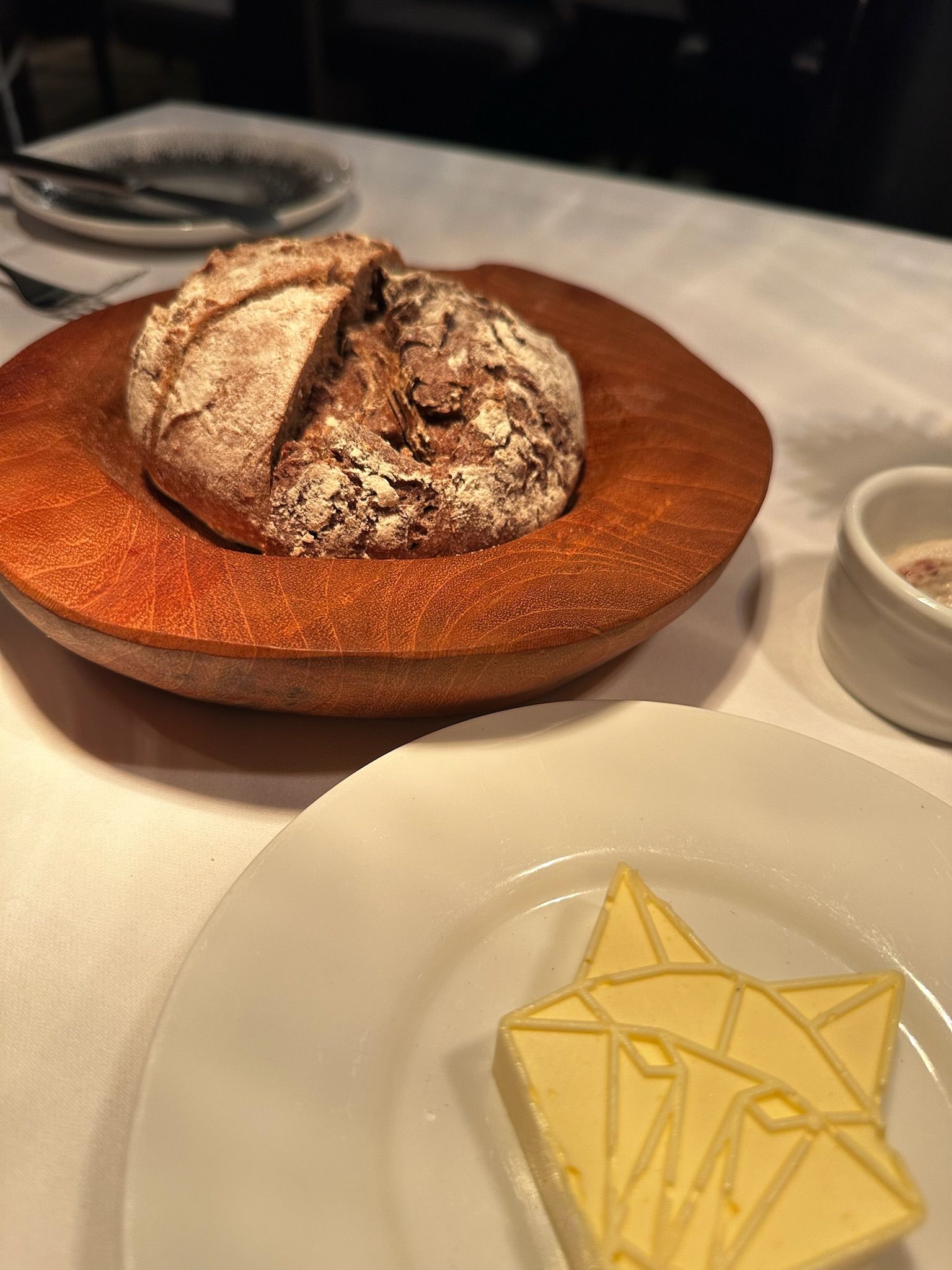 Schon beim ersten Bissen spürt man, dass hier mit Herz und Hand gekocht wird. Hausgemachte, leicht gesalzene Butter, Brot aus der regionalen Bäckerei und ein zartes Tatar von der Lachsforelle mit eingelegtem Gemüse eröffnen den Abend. Frisch, ausgewogen und perfekt abgeschmeckt.