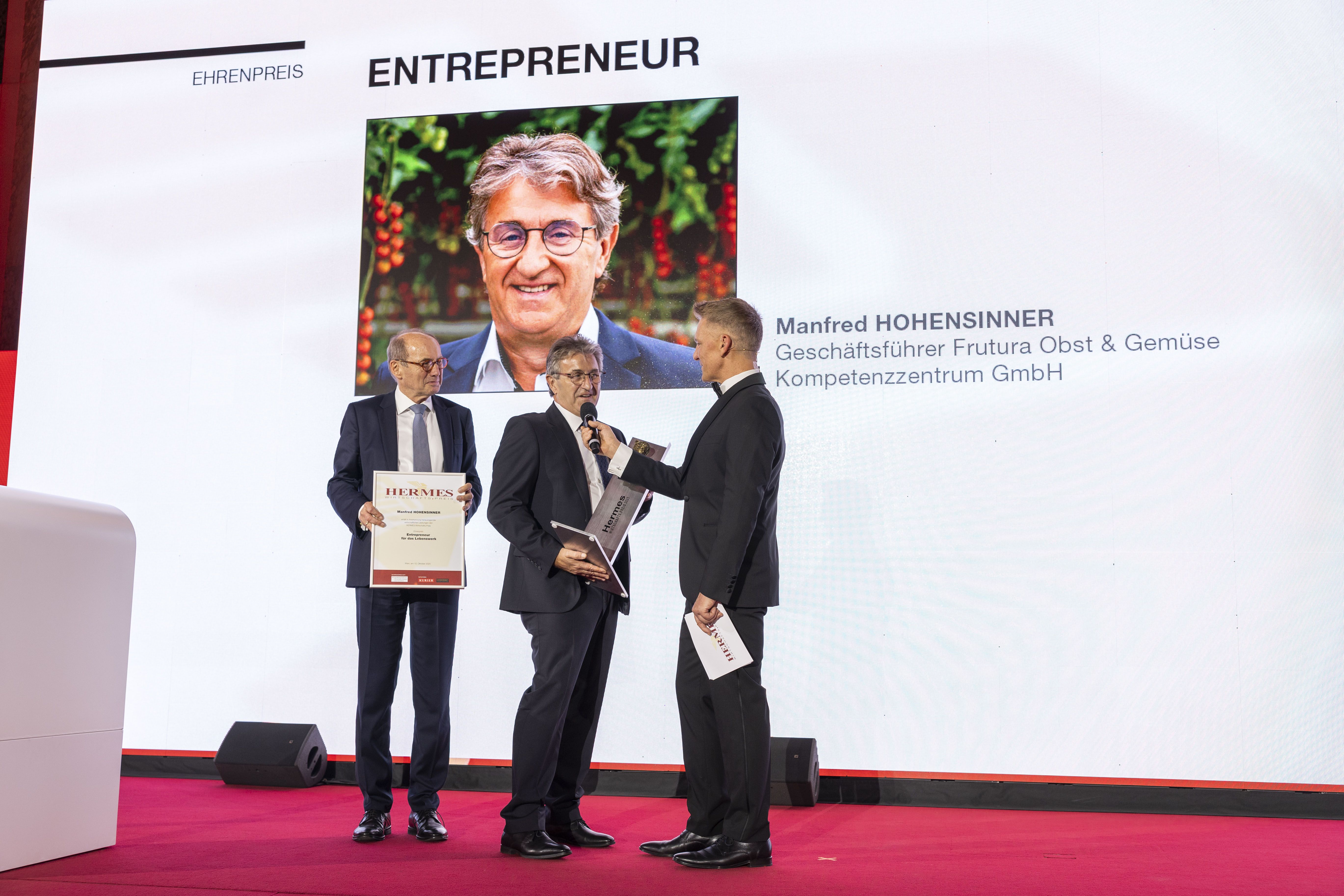 Der zwölfte Preis – der Sonderpreis "Entrepreneur des Jahres" – ging in diesem Jahr an Manfred Hohensinner, Geschäftsführer von Frutura Obst & Gemüse in der Steiermark. Hohensinner bezeichnet sich selbst als „Landwirt mit Vision“. Als Erster in Österreich nutzte er Geothermie, um Gewächshäuser zu beheizen. Heute ist das Unternehmen ein XXL-Produzent und -Vermarkter von Obst und Gemüse in Österreich und versorgt täglich bis zu drei Millionen Menschen.
