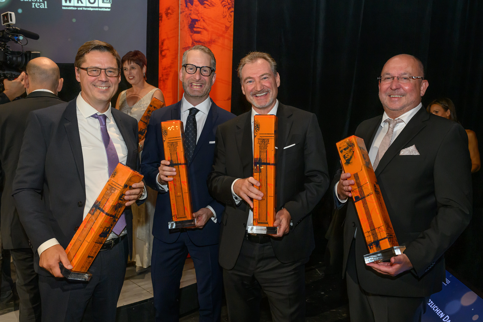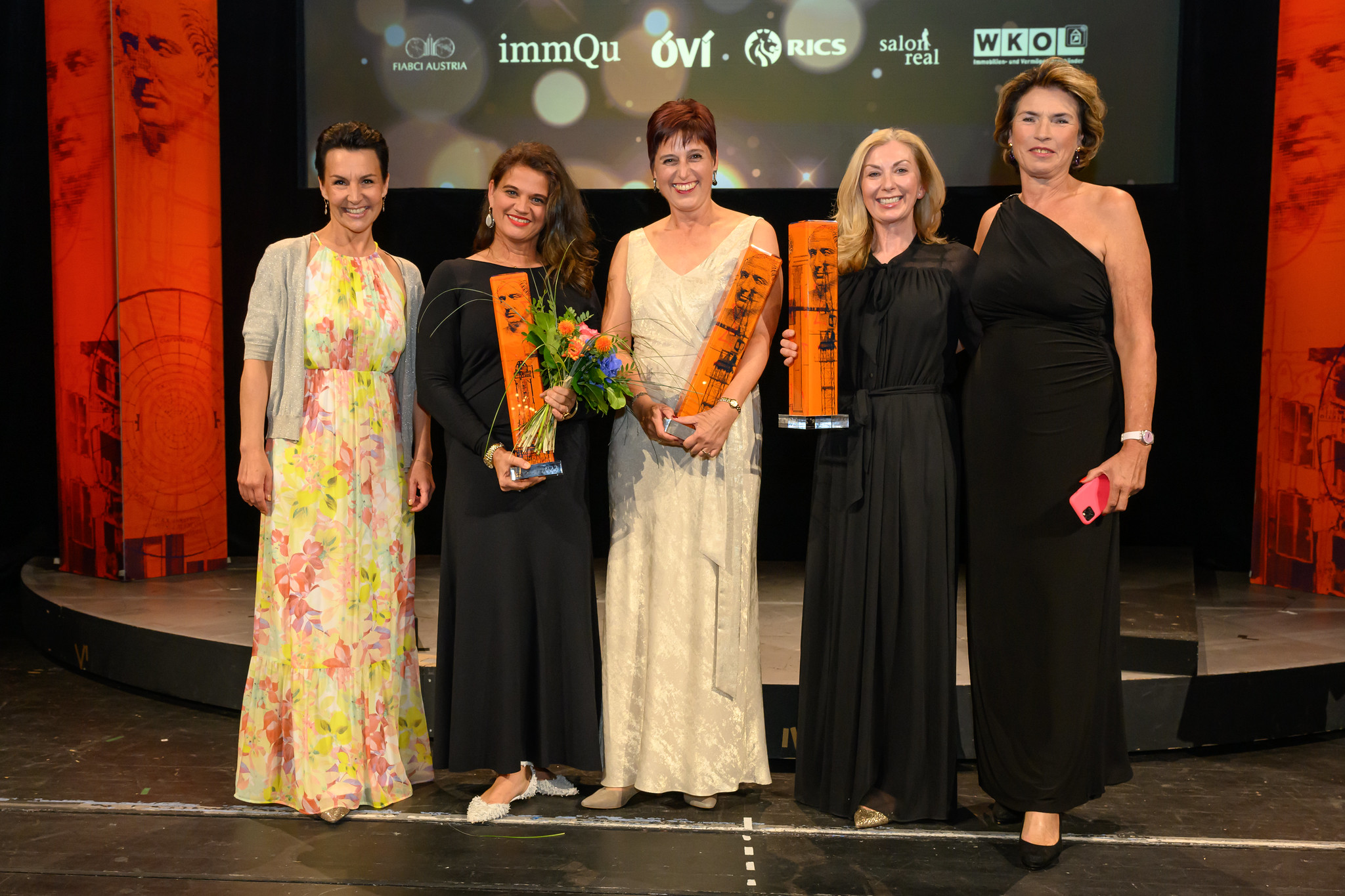 Roter Teppich für die Crème de la Crème der Immobilienwirtschaft: Im prunkvollen Ambiente des Schlosstheaters Schönbrunn wurden die Besten ihres Fachs ausgezeichnet – und heftig beklatscht. Die kurzweilige wie amüsante Award-Show, moderiert von Barbara Fleißner, kannte gleich acht Sieger. Fünf Herren und drei Damen holten die begehrten Trophäen. Viele hatten dabei Herzklopfen, wie sie nach der Preisverleihung verrieten. Gemeinsam mit ihren Kollegen feierten die Gewinner des Jahres ausgelassen bis in die Nacht hinein.