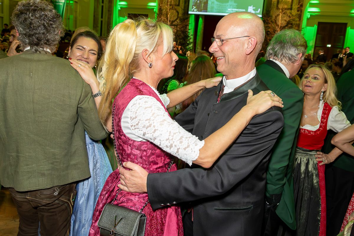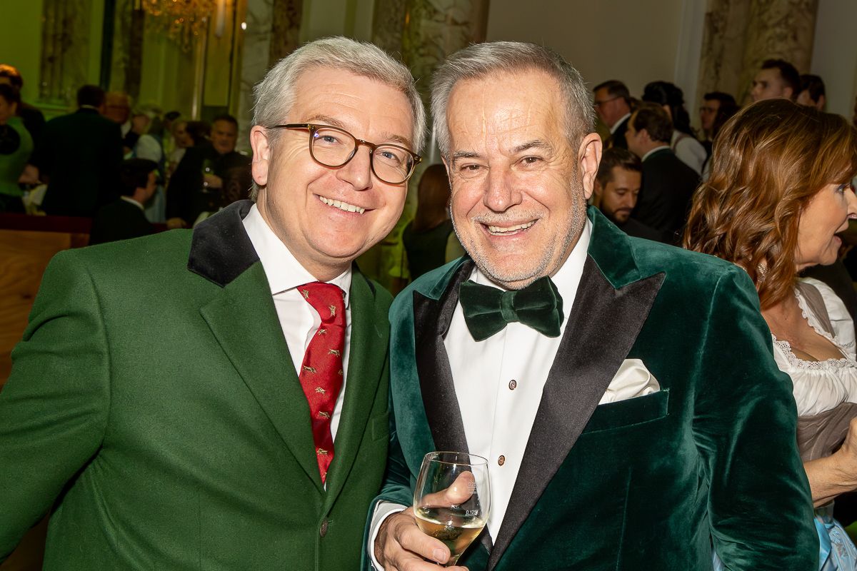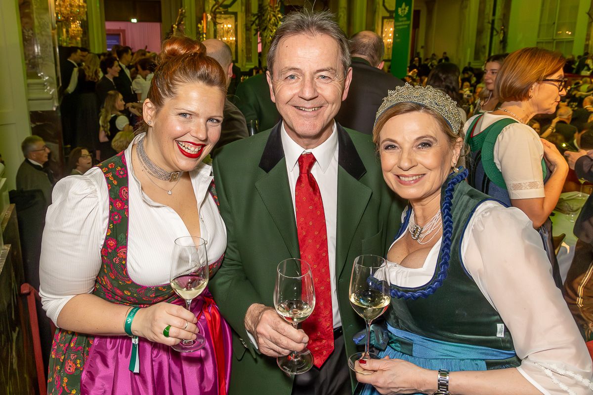 Die Wiener Hofburg und die Spanische Hofreitschule als fröhliches Jagdrevier: Der "Ball vom Grünen Kreuz", der vor 120 Jahren zum ersten Mal über die Bühne ging, lockte wieder die Waidmänner und Waidfrauen aus nah und fern in die Innenstadt.