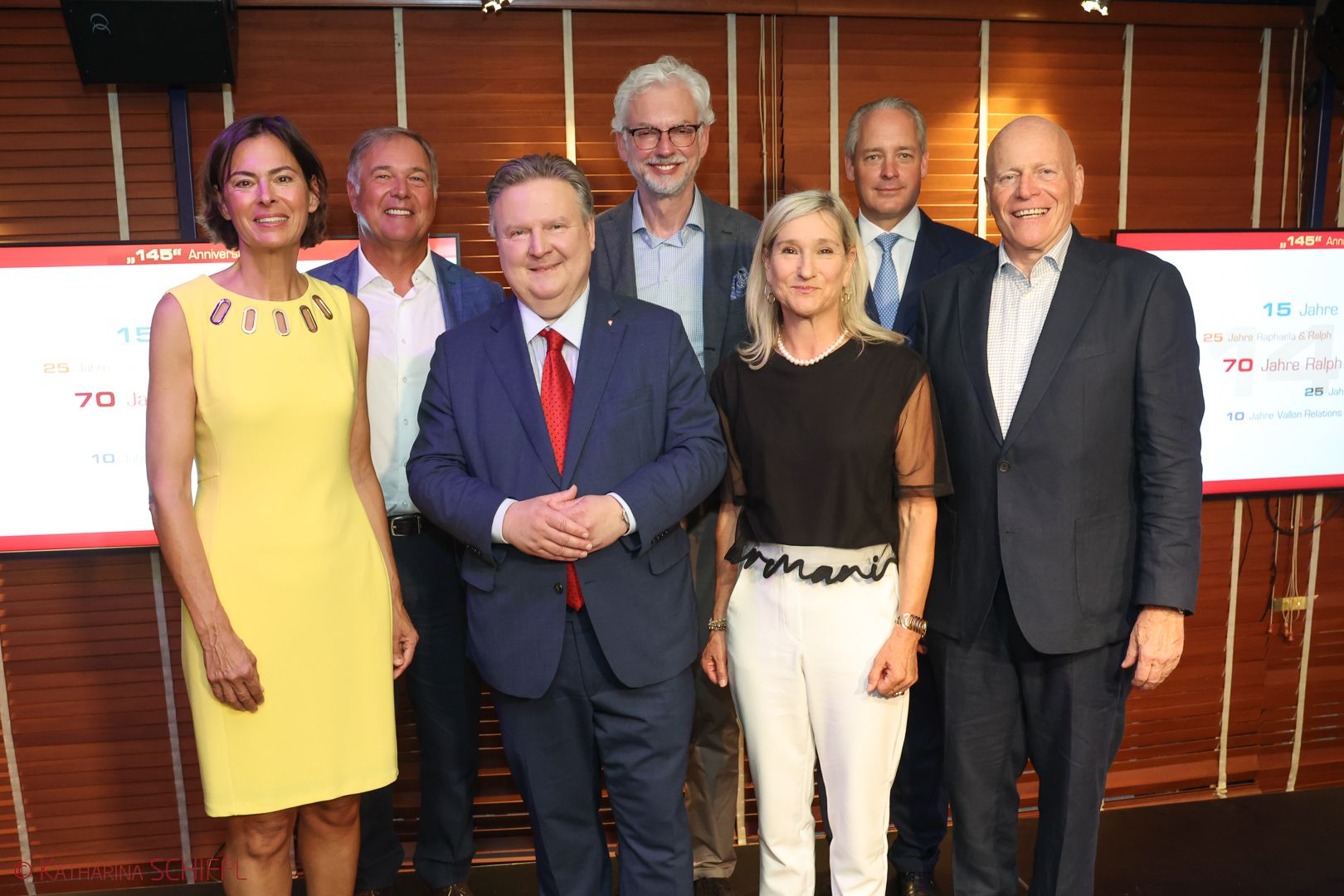 Das große 145er-Jubiläumsfest auf der Summerstage bot allen Grund zum Feiern: Zehn Jahre Vallon Relations, 15 Jahre vie-mobility, 25 Jahre Ehe und Selbstständigkeit von Ralph Vallon – und sein 70. Geburtstag. Durch den Abend führte die energiegeladene Moderatorin Sonja Kato.