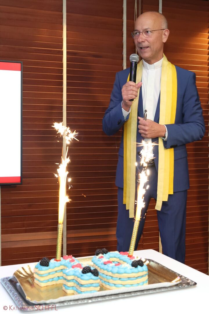 Drei Top-Winzer sorgten für feine Tropfen, danach folgte die persönliche Feierstunde mit Torte, Gesangseinlage von Gregor Glanz und einer humorvollen Segnung durch Dompfarrer Toni Faber.