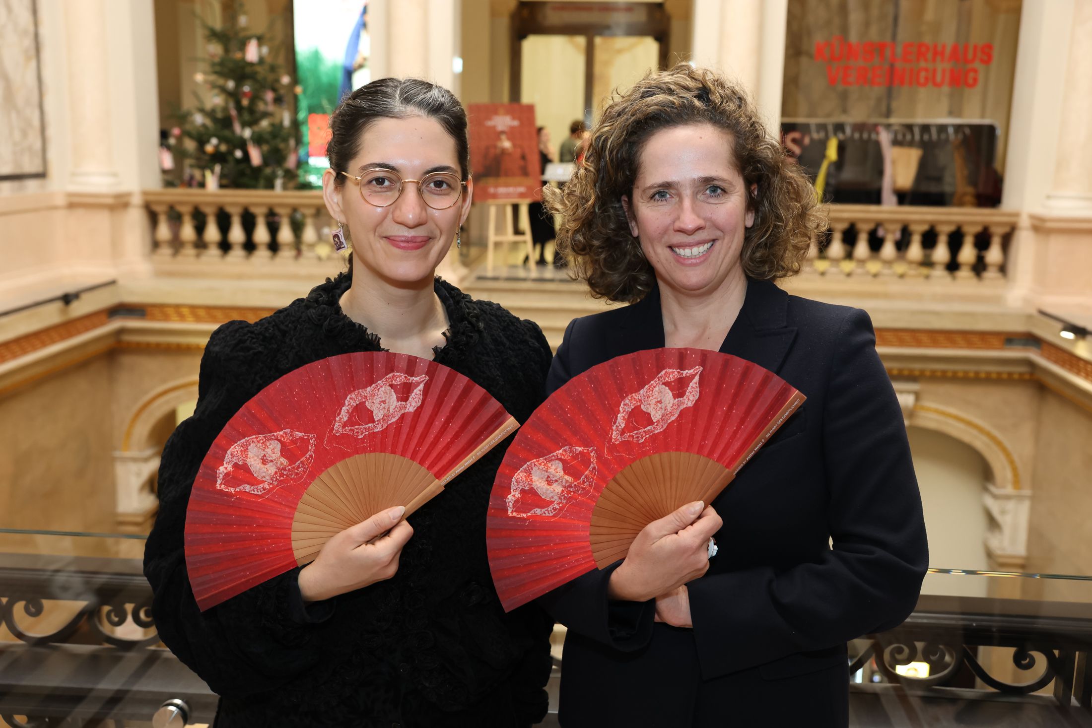 Das Motiv ist für die 2026er-Ausgabe ein intensiver, kristalliner Blick vor tiefrotem Sternenhimmel. Die Damenspende knüpft damit an die historische Fächersprache an und erweitert sie: Der Fächer wird so zu einem Objekt zwischen Nähe und Distanz, zu einem Medium des Verbergens und Sehens. Die Künstlerin schafft damit nicht nur ein ästhetisches Andenken für die Ballgäste, sondern ein Sammlerstück mit poetischer Tiefe. Christina Meinl zeigte sich berührt von der Symbolik des Blicks, den sie als „offen, wach und zuversichtlich“ beschreibt und als Einladung versteht, mutig nach vorn zu sehen.