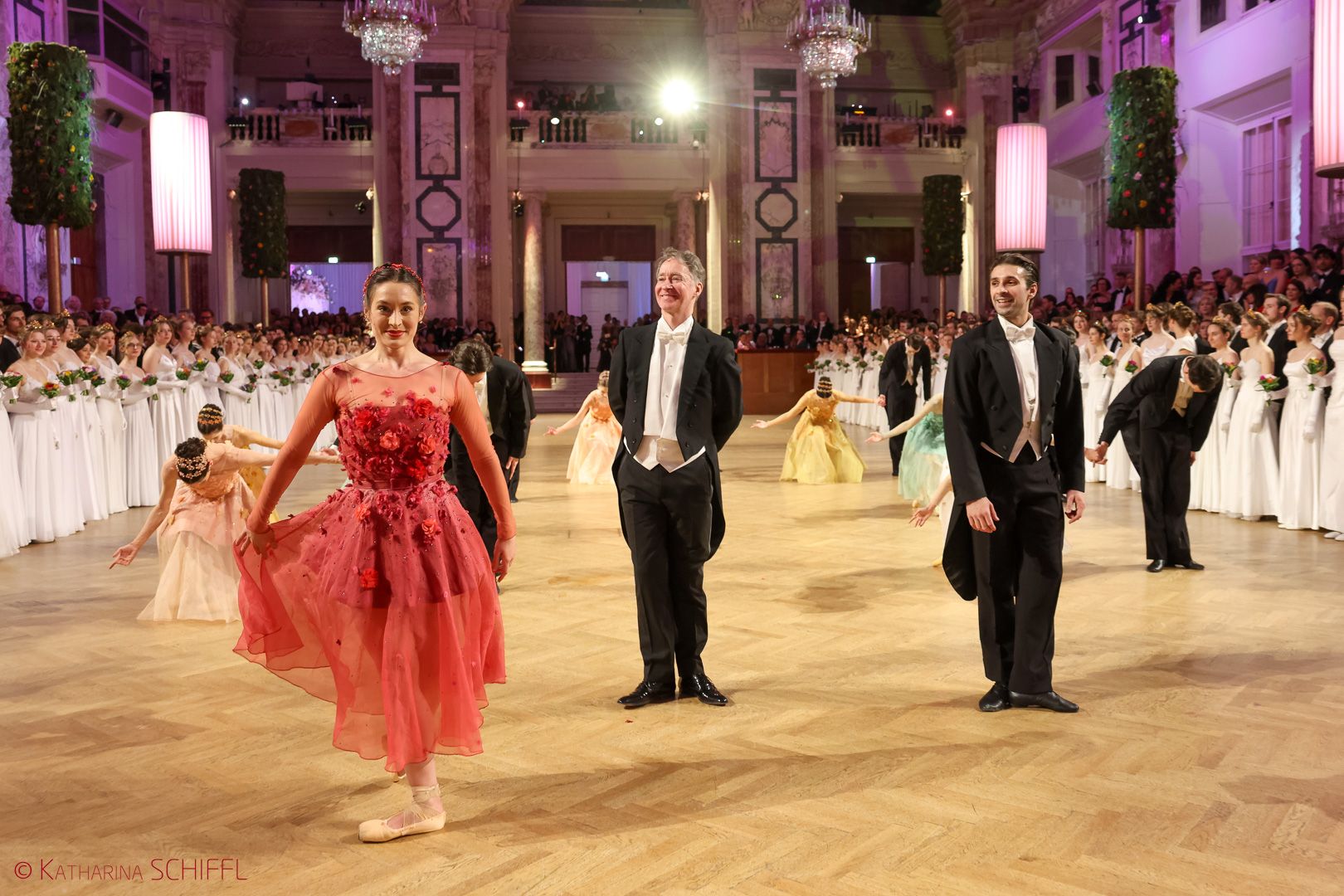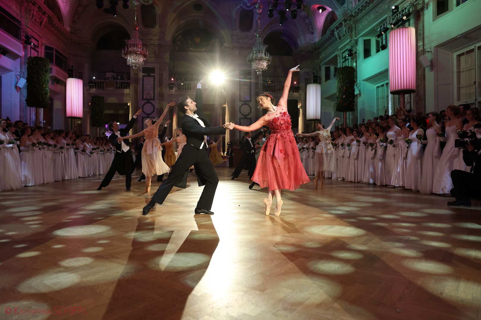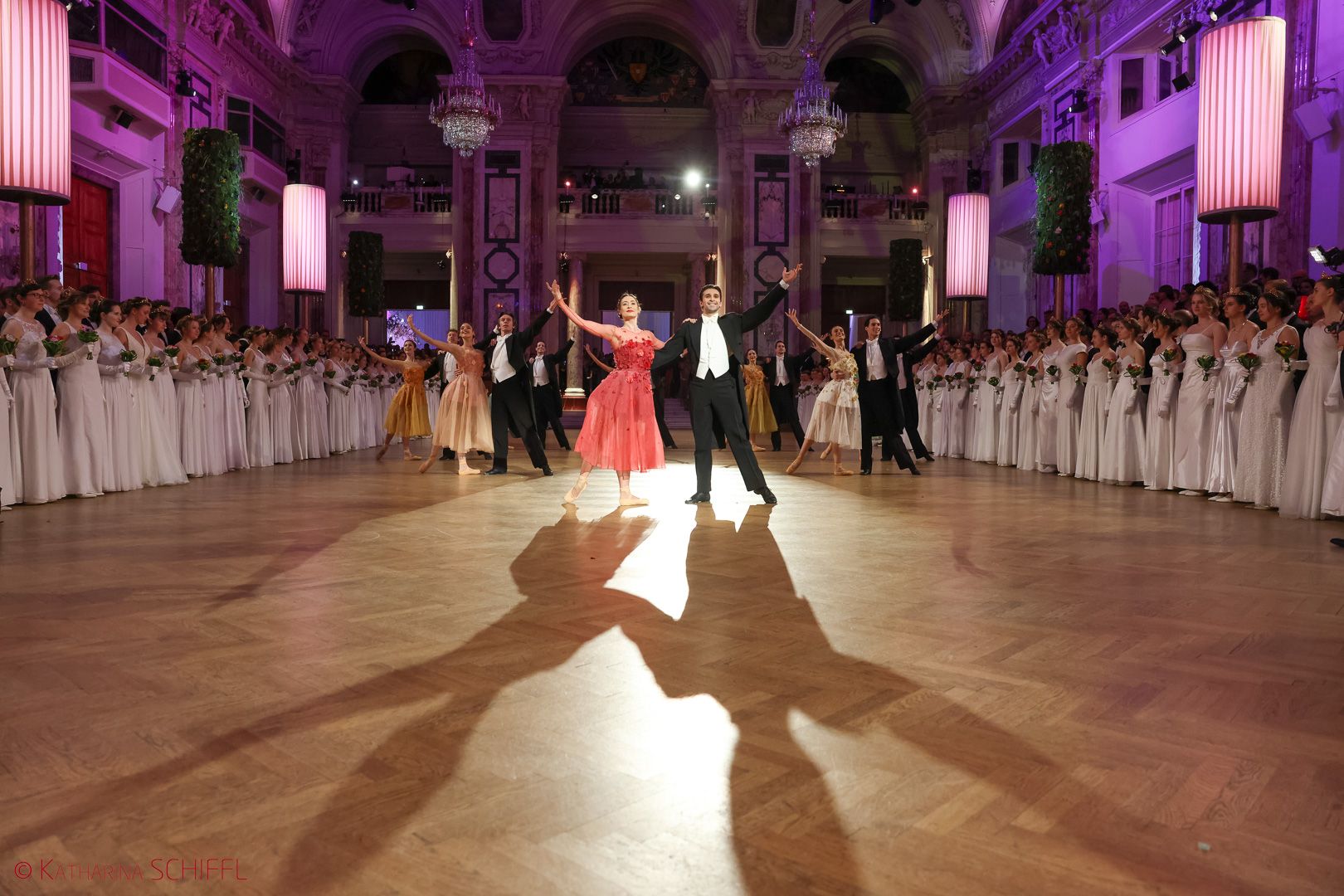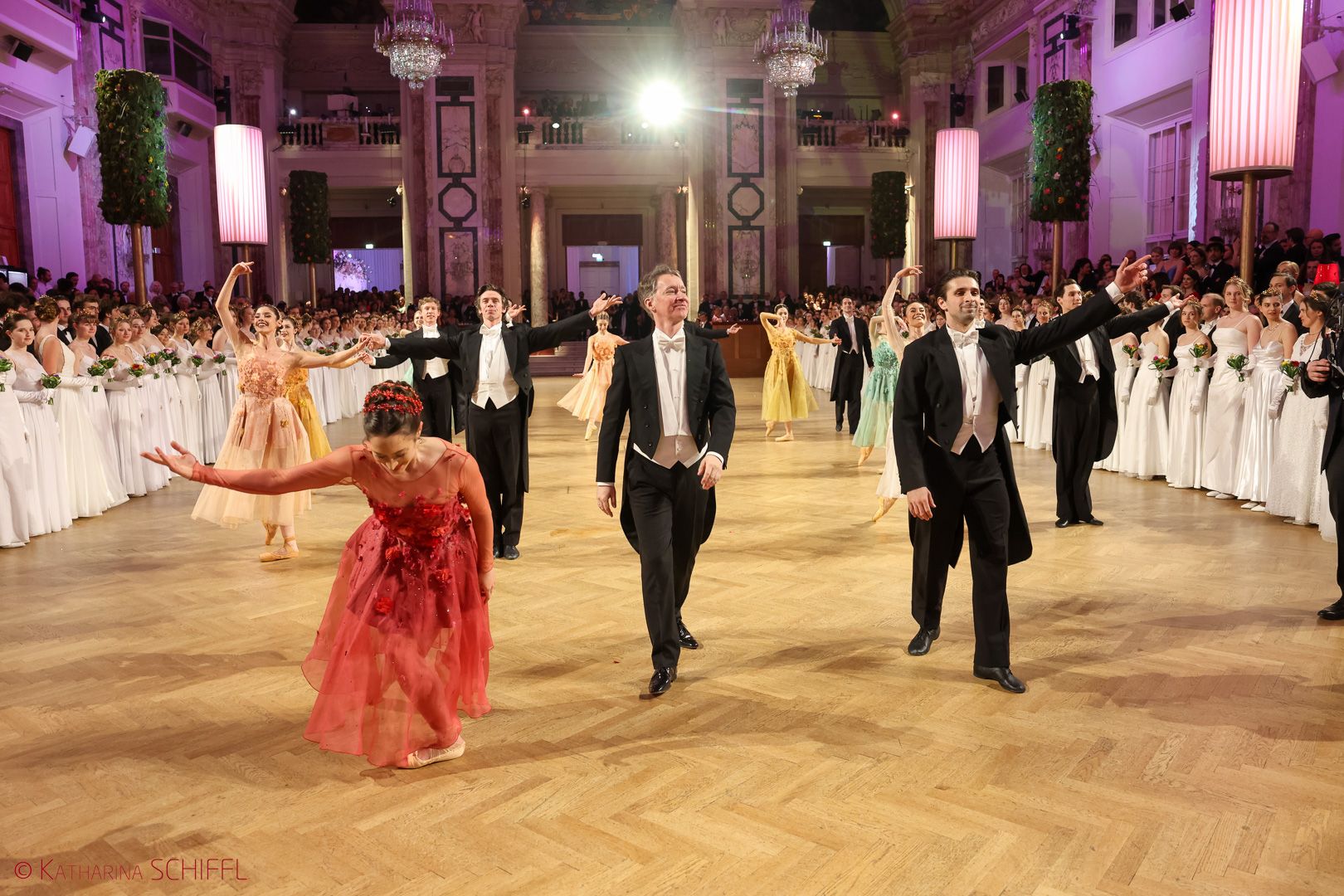 Die Eröffnung startete mit einer Balletteinlage des "Schneeglöckchen"-Walzers. In der Choreografie von Lukas Gaudernak verzauberte das Solistenpaar Sonia Dvořák und Giorgio Fourés das Publikum. Die Sopranistin Andreja Zidaric sorgte mit dem "Frühlingsstimmen"-Walzer für Gänsehautmomente. Das Jungdamen- und Herrenkomitee der Tanzschule Elmayer-Vestenbrugg legte daraufhin die "Tritsch-Tratsch-Polka" mit Schwung und Eleganz aufs Parkett.