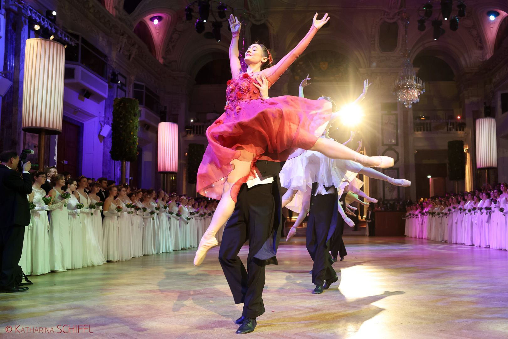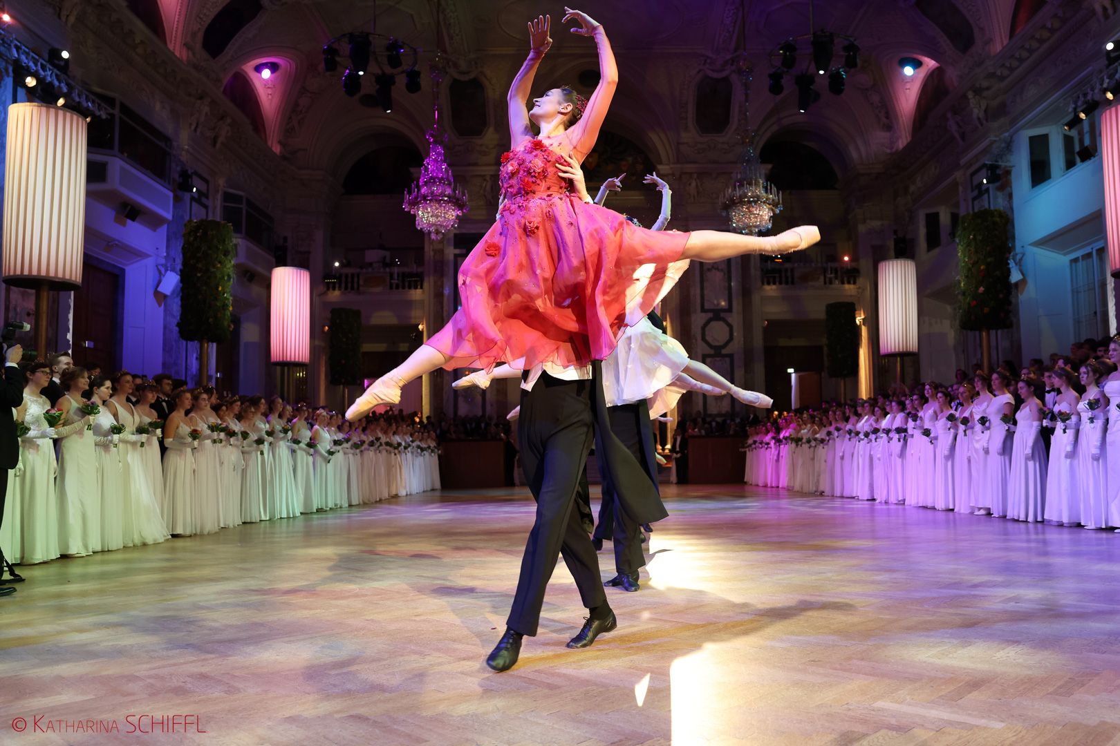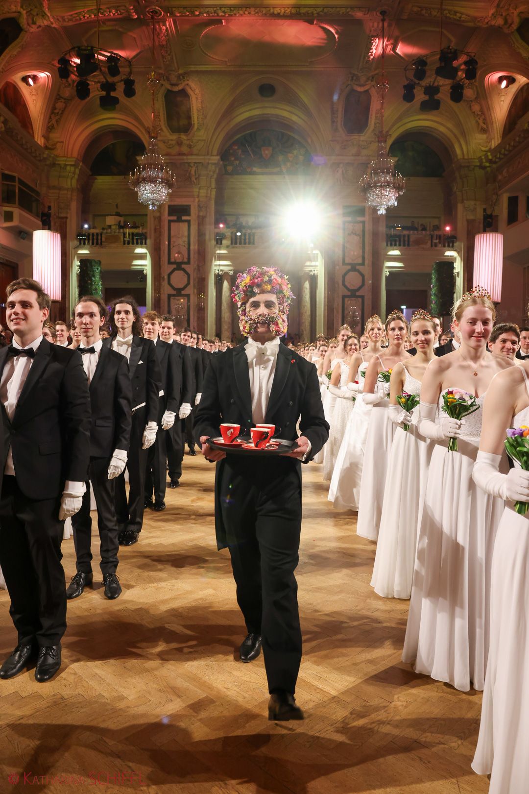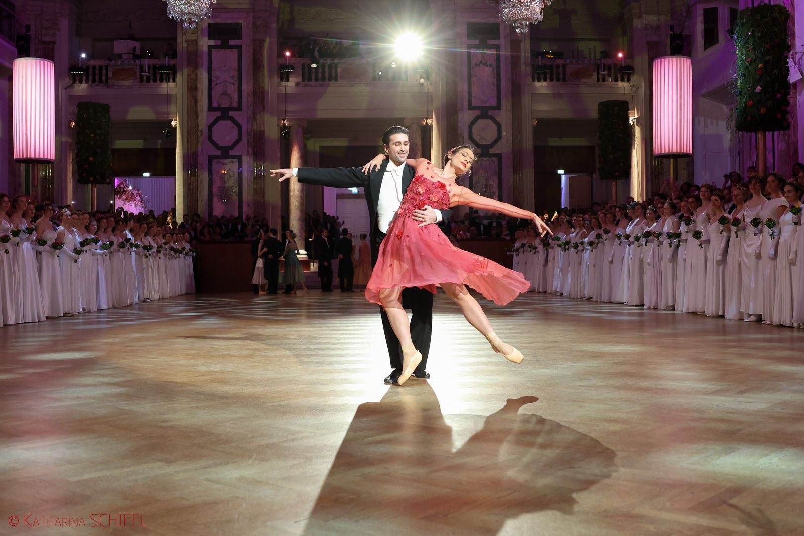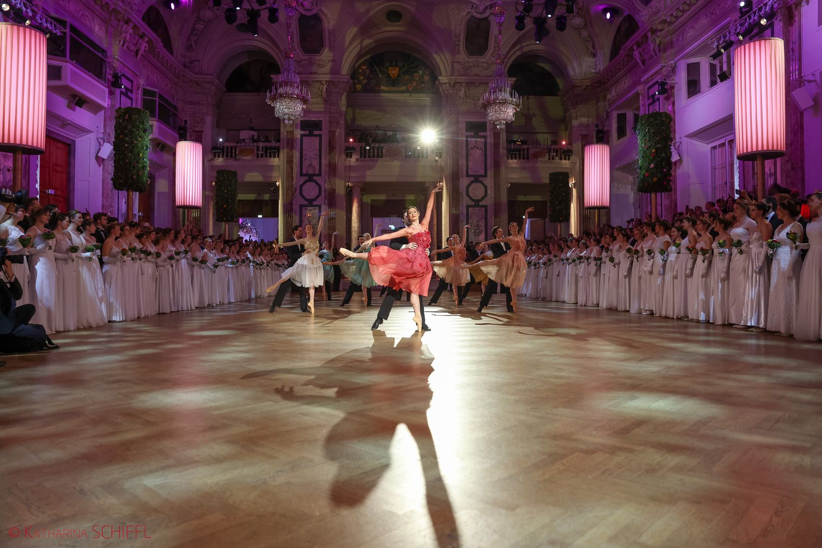 Die Eröffnung startete mit einer Balletteinlage des "Schneeglöckchen"-Walzers. In der Choreografie von Lukas Gaudernak verzauberte das Solistenpaar Sonia Dvořák und Giorgio Fourés das Publikum. Die Sopranistin Andreja Zidaric sorgte mit dem "Frühlingsstimmen"-Walzer für Gänsehautmomente. Das Jungdamen- und Herrenkomitee der Tanzschule Elmayer-Vestenbrugg legte daraufhin die "Tritsch-Tratsch-Polka" mit Schwung und Eleganz aufs Parkett.