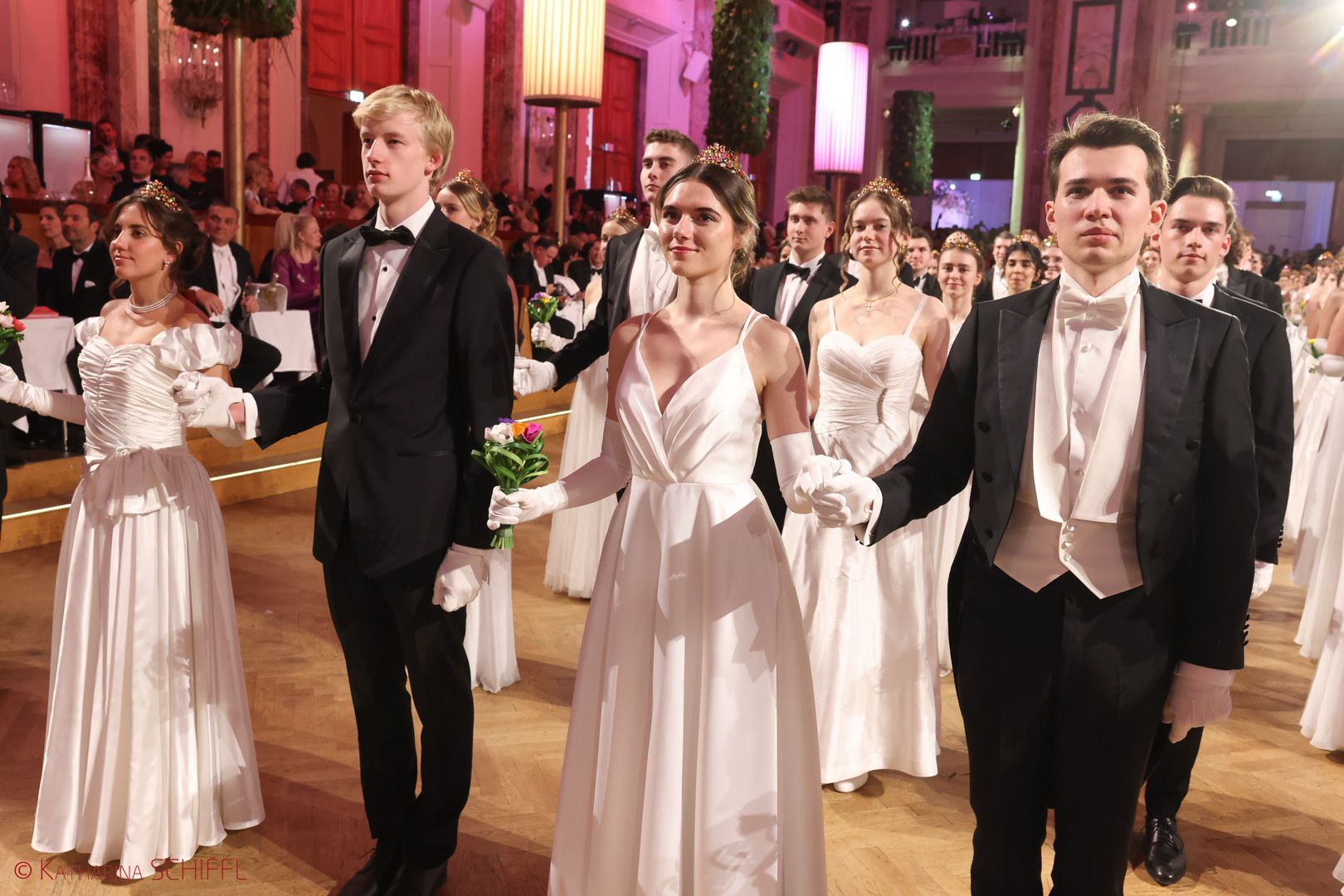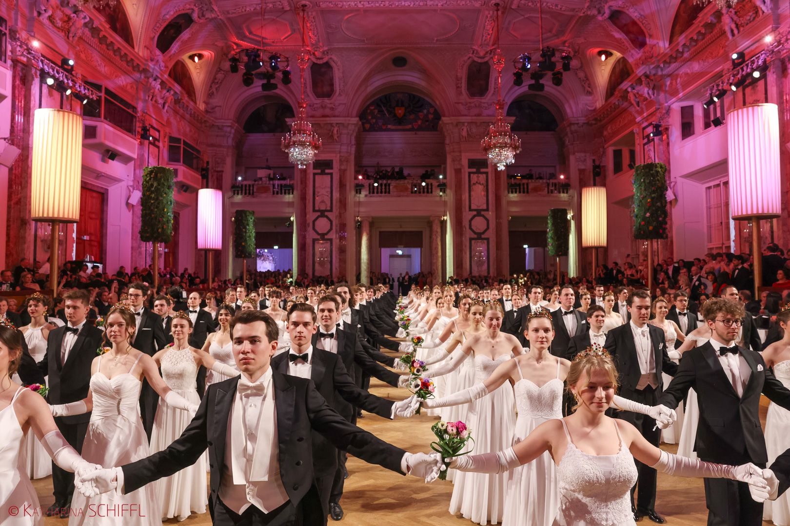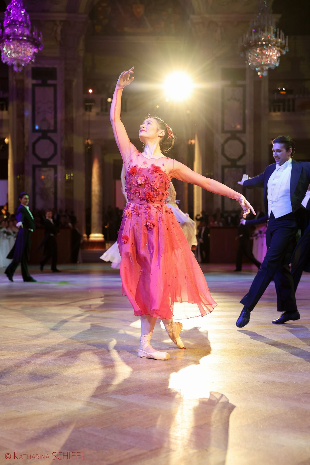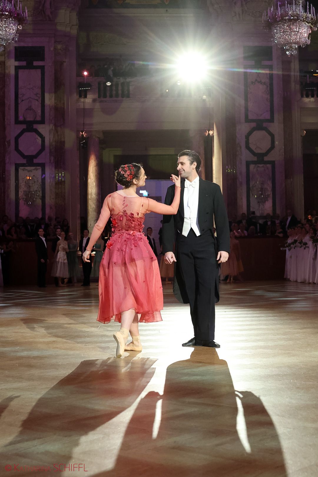 Die Eröffnung startete mit einer Balletteinlage des "Schneeglöckchen"-Walzers. In der Choreografie von Lukas Gaudernak verzauberte das Solistenpaar Sonia Dvořák und Giorgio Fourés das Publikum. Die Sopranistin Andreja Zidaric sorgte mit dem "Frühlingsstimmen"-Walzer für Gänsehautmomente. Das Jungdamen- und Herrenkomitee der Tanzschule Elmayer-Vestenbrugg legte daraufhin die "Tritsch-Tratsch-Polka" mit Schwung und Eleganz aufs Parkett.