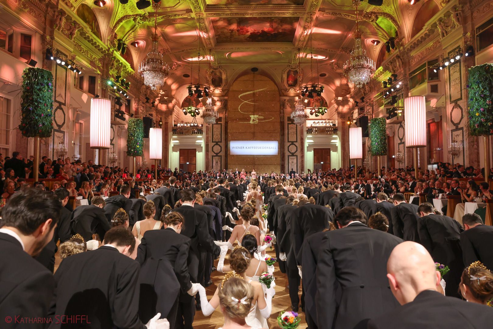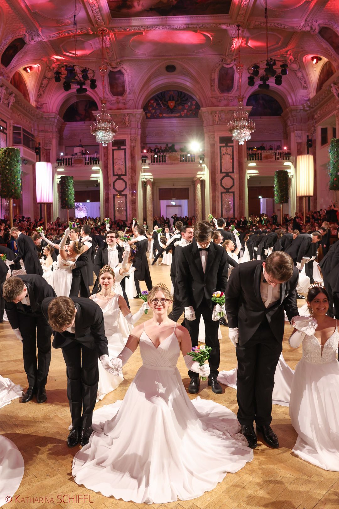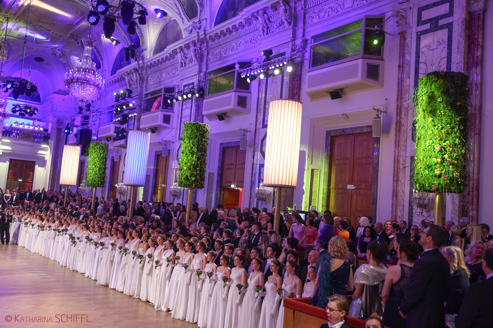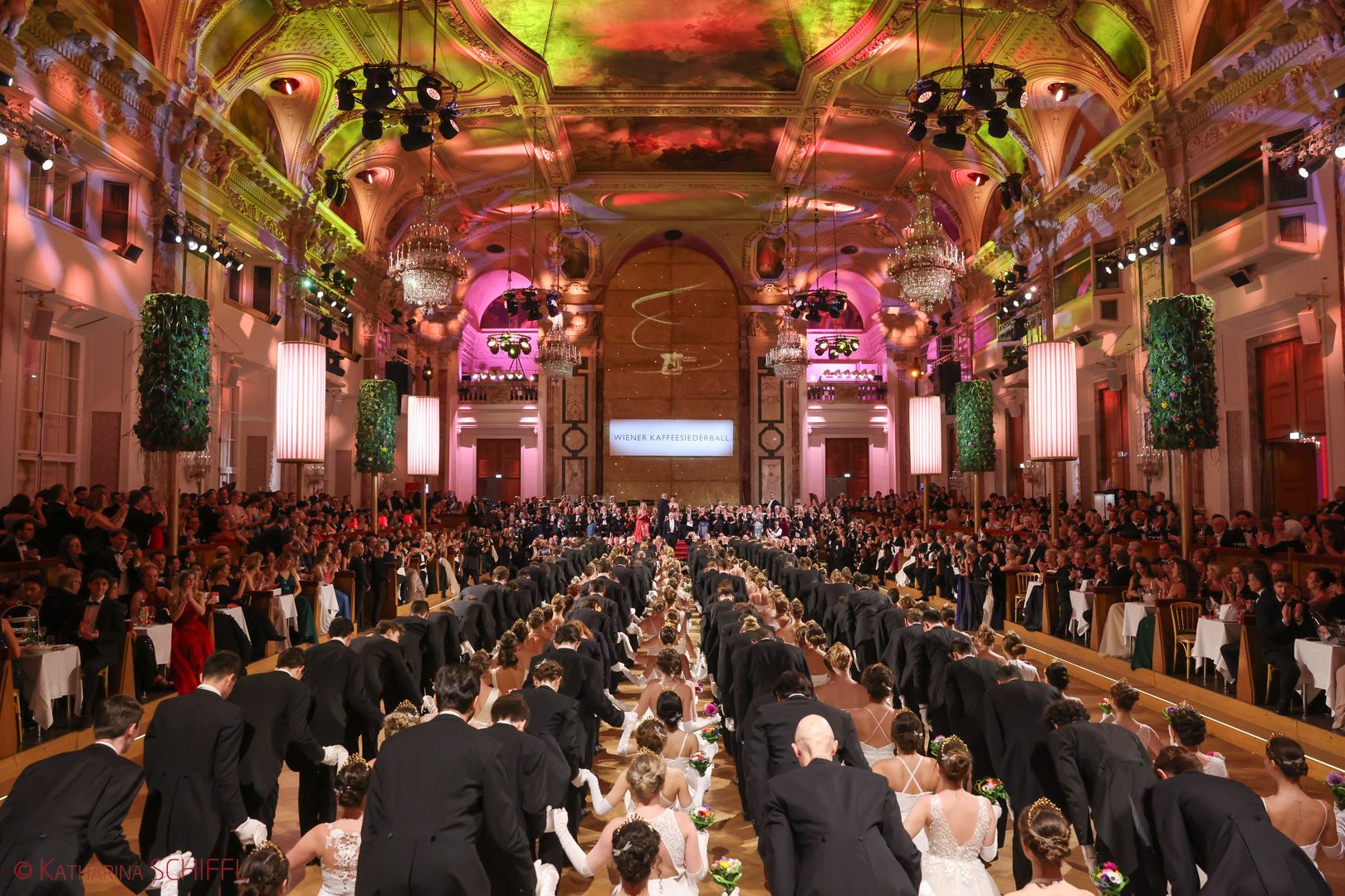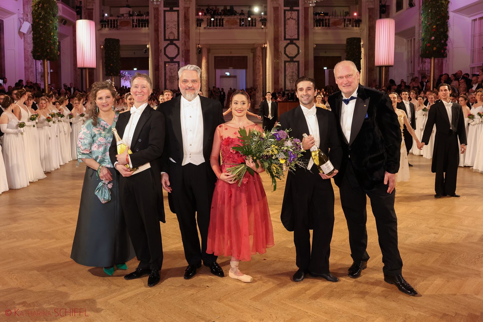 Die Eröffnung startete mit einer Balletteinlage des "Schneeglöckchen"-Walzers. In der Choreografie von Lukas Gaudernak verzauberte das Solistenpaar Sonia Dvořák und Giorgio Fourés das Publikum. Die Sopranistin Andreja Zidaric sorgte mit dem "Frühlingsstimmen"-Walzer für Gänsehautmomente. Das Jungdamen- und Herrenkomitee der Tanzschule Elmayer-Vestenbrugg legte daraufhin die "Tritsch-Tratsch-Polka" mit Schwung und Eleganz aufs Parkett.