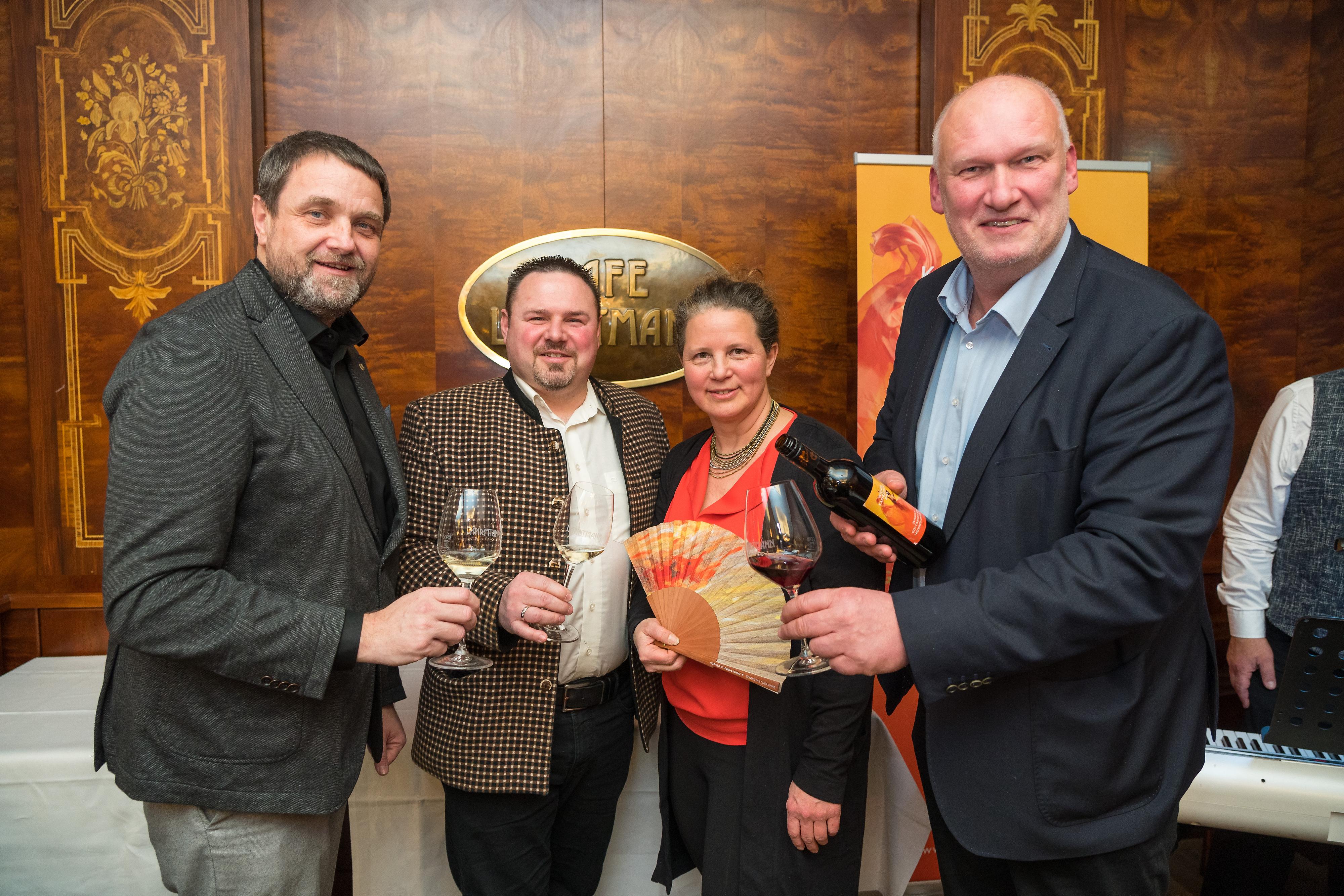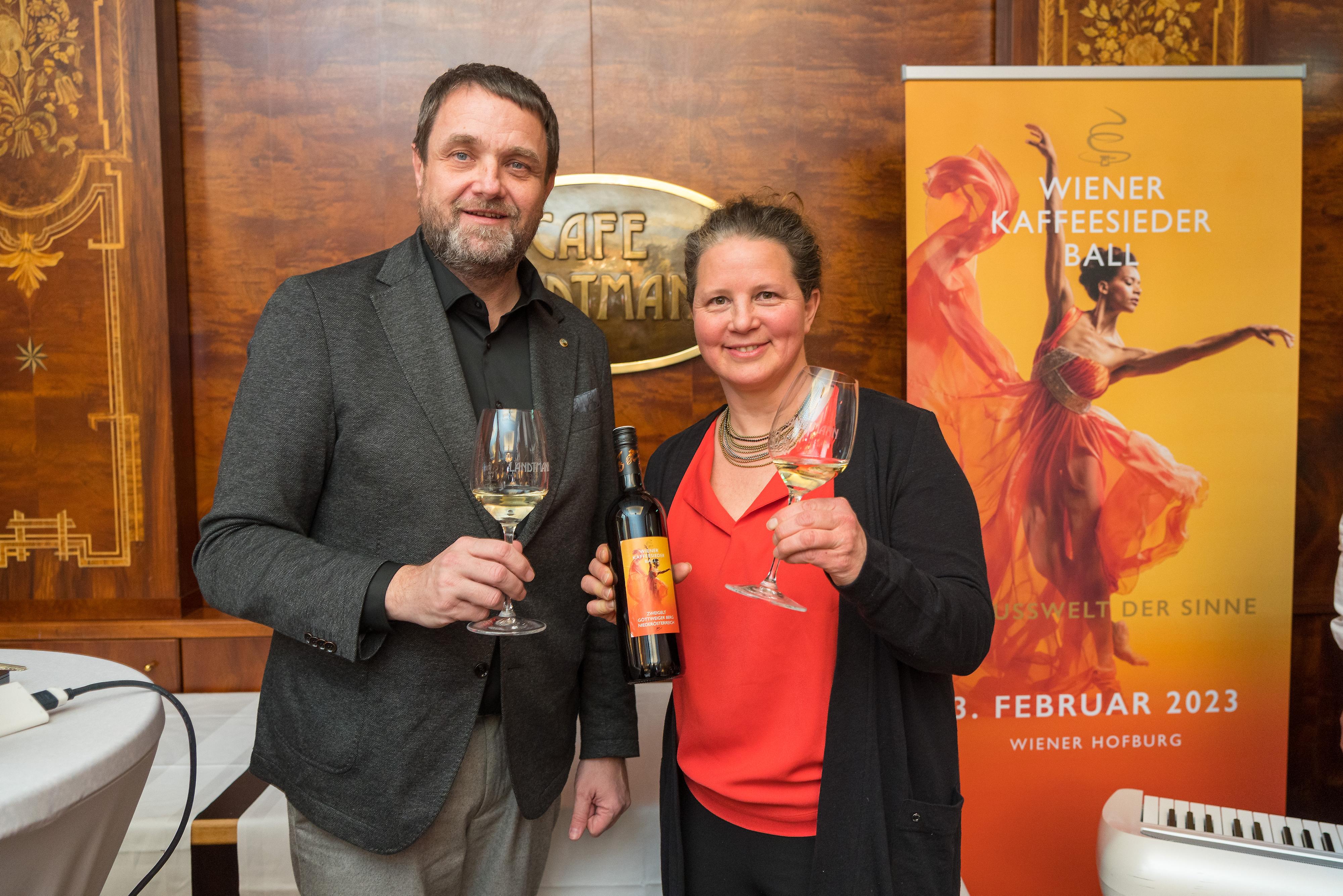 Am kommenden Freitag, 3. Februar, verwandelt der 64. Kaffeesiederball die Hofburg in eine „Genusswelt der Sinne“. Das bunte Programm und die ausgesuchten Ball-Weine wurden vorab im Café Landtmann vorgestellt. Die edlen Tropfen probierten Ballleiterin Anna Karnitscher, Wolfgang Binder (Obmann der Wiener Kaffeehäuser), Café Landtmann-Chef Berndt Querfeld, Tanz-Doyen Thomas Schäfer-Elmayer, Sängerin Tini Kainrath, Werner und Martina Fasslabend, Daniel Serafin und viele mehr.