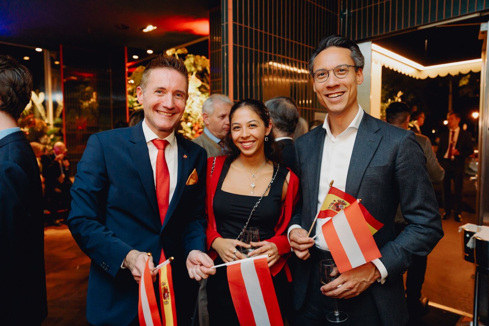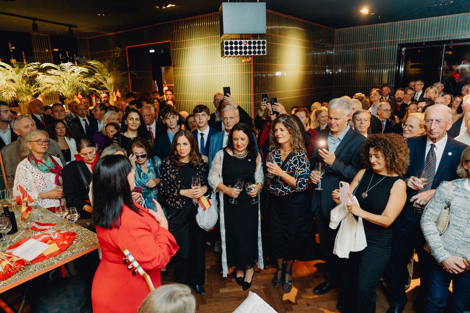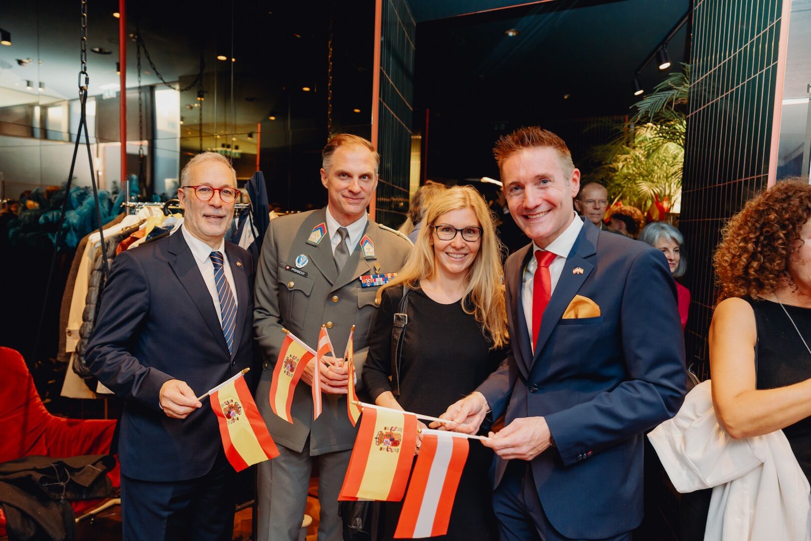 Musikalische Highlights wie „Tres Gaites“ von José González und Klaus Kirchner sowie die Auftritte von Sopranistin Lucía Castelló und Gitarristin Brigitta Soós sorgten für spanisches Flair. Der Abend klang bei Tapas, Getränken und angeregtem Networking in entspannter Atmosphäre aus. Unter den zahlreichen Gästen: Belen Bañuelos Sanchez (AEA), Brigitte Beidinger (Österreichisch-Belgische Gesellschaft), Philipp Bodzenta (Österreichisch-Amerikanische Gesellschaft), Lucía Castello (AEA), Frank De Waele (Deutsche Botschaft), Luisa Dietrich-Ortega (Österreichisch-Peruanische Gesellschaft), Andreas Eustacchio (Eustacchio Rechtsanwälte), Werner Fasslabend (Bundesminister a.D.), Walter Gerbautz (PaN), Ginette Griesbach (Österreichisch-Luxemburgische Gesellschaft), Franz Haberbauer (Österreichisch-Dänische Gesellschaft), Gerhard Hochsam (Österreichisch-Maltesiche Gesellschaft), Phillip Hödl (BMEIA), Arnold Kammel (BMLV), Sabine Keri (Wiener Landtag), Kondo Ayumi (Österreichisch-Japanische Gesellschaft), Hermann Kroiher (Österreichisch-Isländische Gesellschaft), Dominik Lindner (Adison), Stéphane Loechleiter (Französische Botschaft), Leire Lozano (Spanische Botschaft), Josef Lusser (ORF), Marguerite Machek-Vos (PaN), Drazen Maloca (WKÖ), Josef Mantl (AEA), Wolfgang Meixner (Österreichisch-Kapverdische Gesellschaft), Aurora Mejía (Spanische Botschafterin), Gerold Pinter (wohninvest), Bernd Plank (Studio Bespoke), Karl Prummer (BMEIA), Ulrike Rauch-Keschmann (BMWET), Angel Sánchez Baltanás (AEA), Angelika Schätz (BMF), Anastasios Strikos (Österreichisch-Griechische Gesellschaft), Josef Treml (WKÖ), Brigitte Trinkl (BMEIA), Anton Volemann (Grandits)