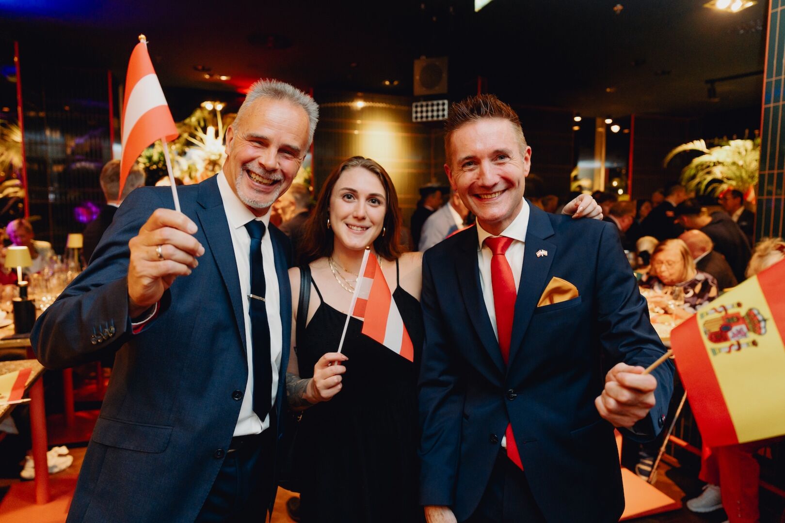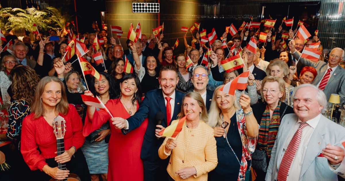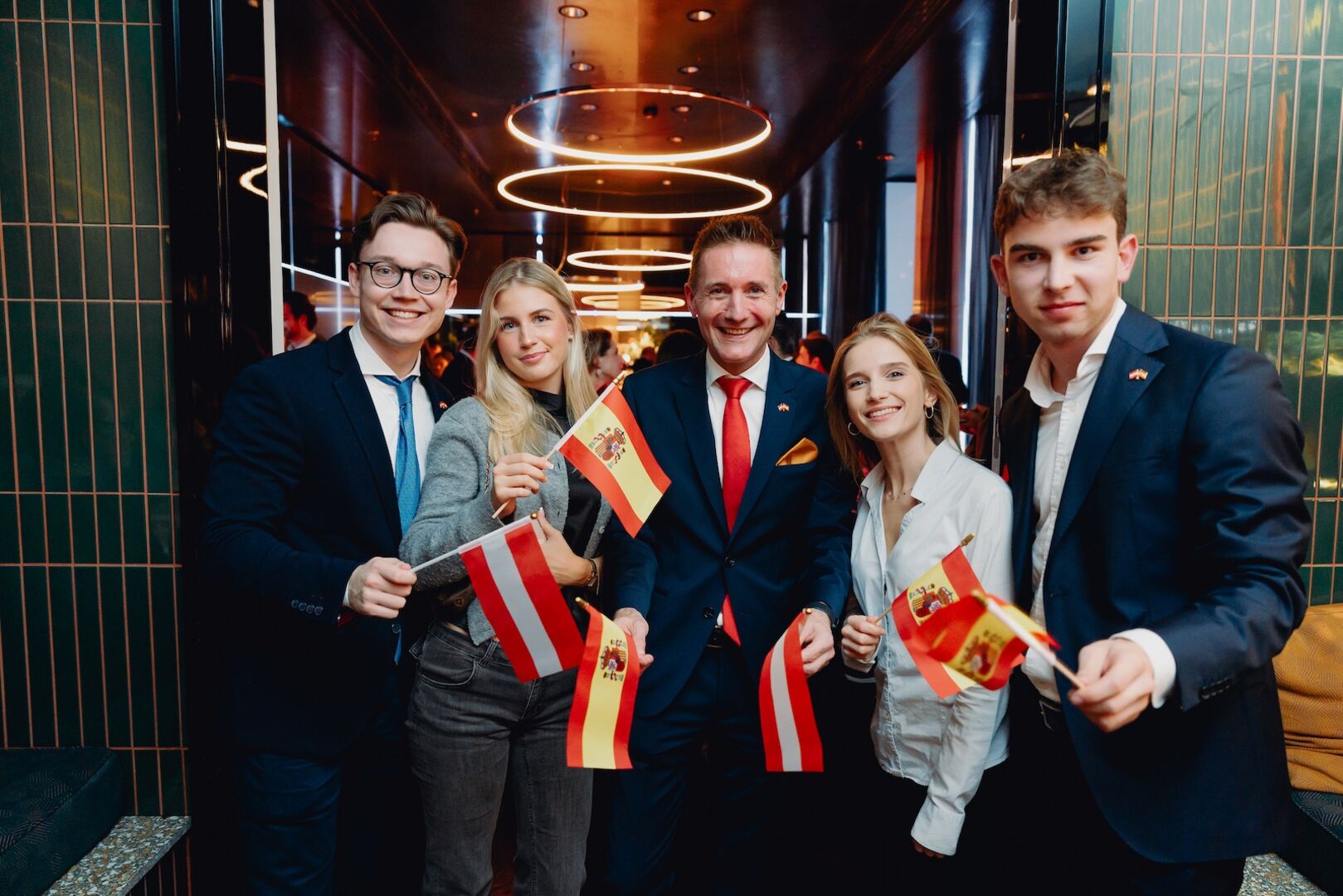 Musikalische Highlights wie „Tres Gaites“ von José González und Klaus Kirchner sowie die Auftritte von Sopranistin Lucía Castelló und Gitarristin Brigitta Soós sorgten für spanisches Flair. Der Abend klang bei Tapas, Getränken und angeregtem Networking in entspannter Atmosphäre aus. Unter den zahlreichen Gästen: Belen Bañuelos Sanchez (AEA), Brigitte Beidinger (Österreichisch-Belgische Gesellschaft), Philipp Bodzenta (Österreichisch-Amerikanische Gesellschaft), Lucía Castello (AEA), Frank De Waele (Deutsche Botschaft), Luisa Dietrich-Ortega (Österreichisch-Peruanische Gesellschaft), Andreas Eustacchio (Eustacchio Rechtsanwälte), Werner Fasslabend (Bundesminister a.D.), Walter Gerbautz (PaN), Ginette Griesbach (Österreichisch-Luxemburgische Gesellschaft), Franz Haberbauer (Österreichisch-Dänische Gesellschaft), Gerhard Hochsam (Österreichisch-Maltesiche Gesellschaft), Phillip Hödl (BMEIA), Arnold Kammel (BMLV), Sabine Keri (Wiener Landtag), Kondo Ayumi (Österreichisch-Japanische Gesellschaft), Hermann Kroiher (Österreichisch-Isländische Gesellschaft), Dominik Lindner (Adison), Stéphane Loechleiter (Französische Botschaft), Leire Lozano (Spanische Botschaft), Josef Lusser (ORF), Marguerite Machek-Vos (PaN), Drazen Maloca (WKÖ), Josef Mantl (AEA), Wolfgang Meixner (Österreichisch-Kapverdische Gesellschaft), Aurora Mejía (Spanische Botschafterin), Gerold Pinter (wohninvest), Bernd Plank (Studio Bespoke), Karl Prummer (BMEIA), Ulrike Rauch-Keschmann (BMWET), Angel Sánchez Baltanás (AEA), Angelika Schätz (BMF), Anastasios Strikos (Österreichisch-Griechische Gesellschaft), Josef Treml (WKÖ), Brigitte Trinkl (BMEIA), Anton Volemann (Grandits)