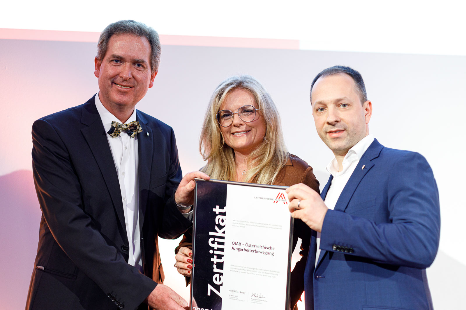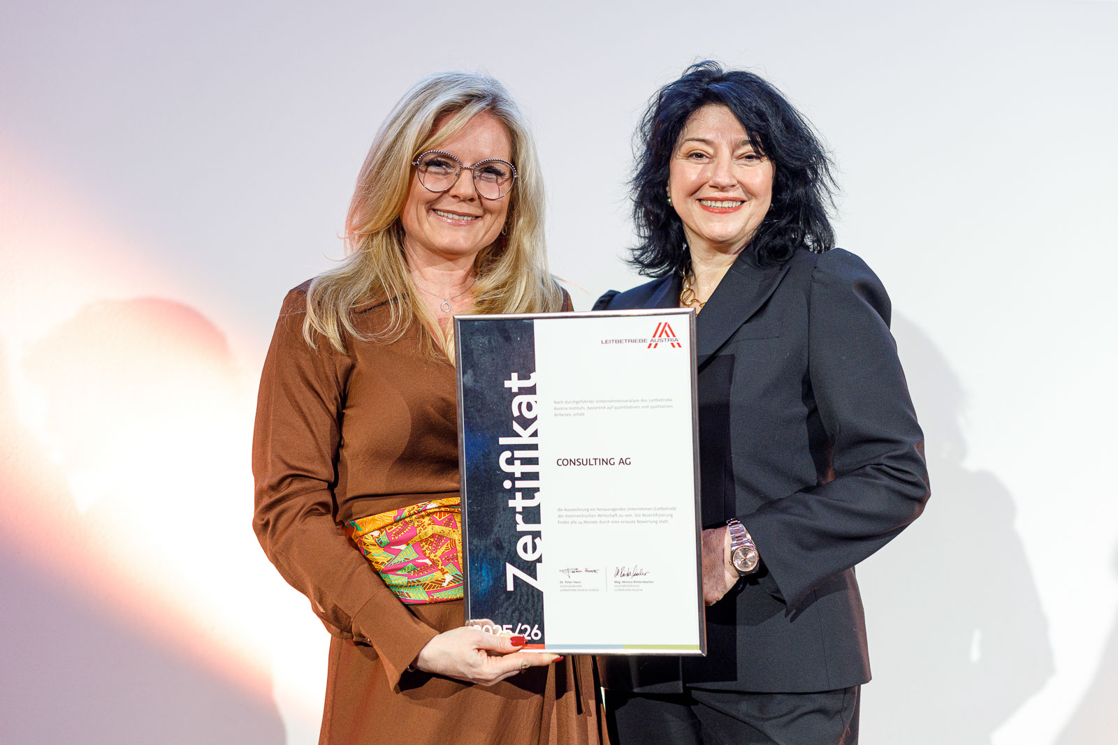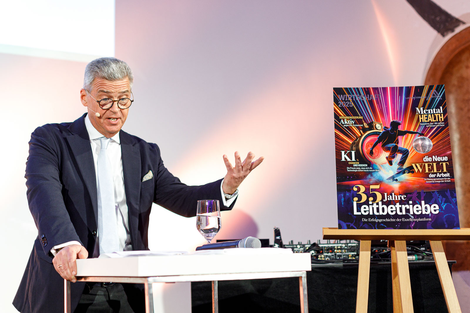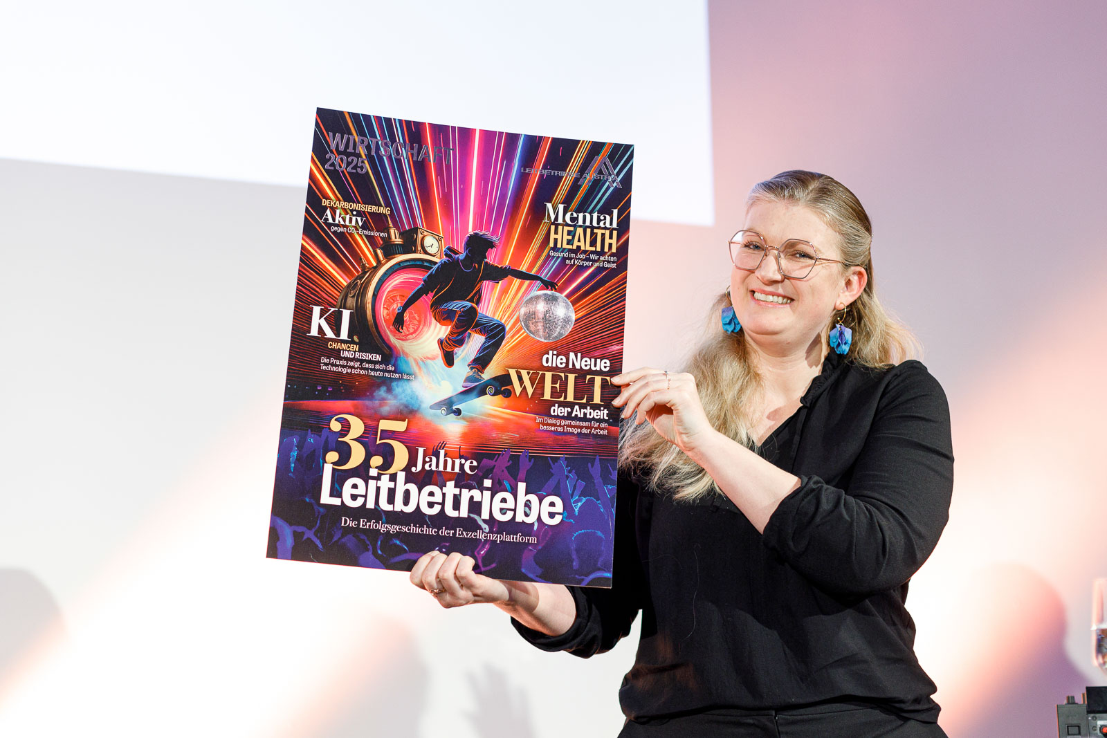 Weitere Highlights des Abends waren die Übergabe der Zertifikate an 21 neu- und rezertifizierte Leitbetriebe sowie die Präsentation des neuen Leitbetriebe-Wirtschaftsmagazins, das sich heuer den Megatrends Dekarbonisierung, Arbeitswelten, Mental Health, Künstlicher Intelligenz und Resilienz widmet.