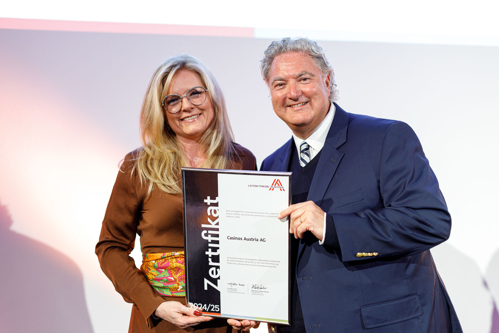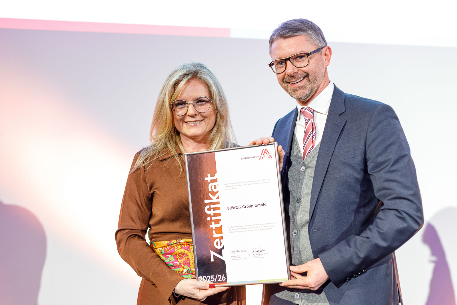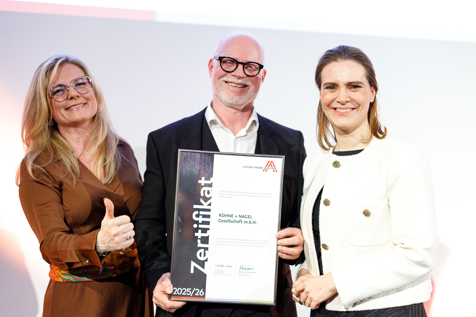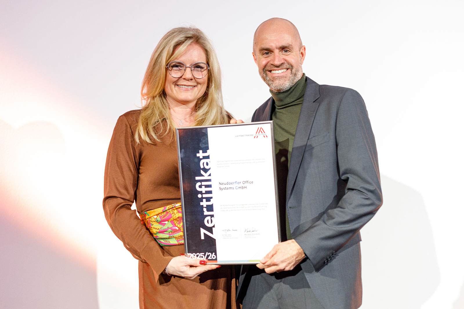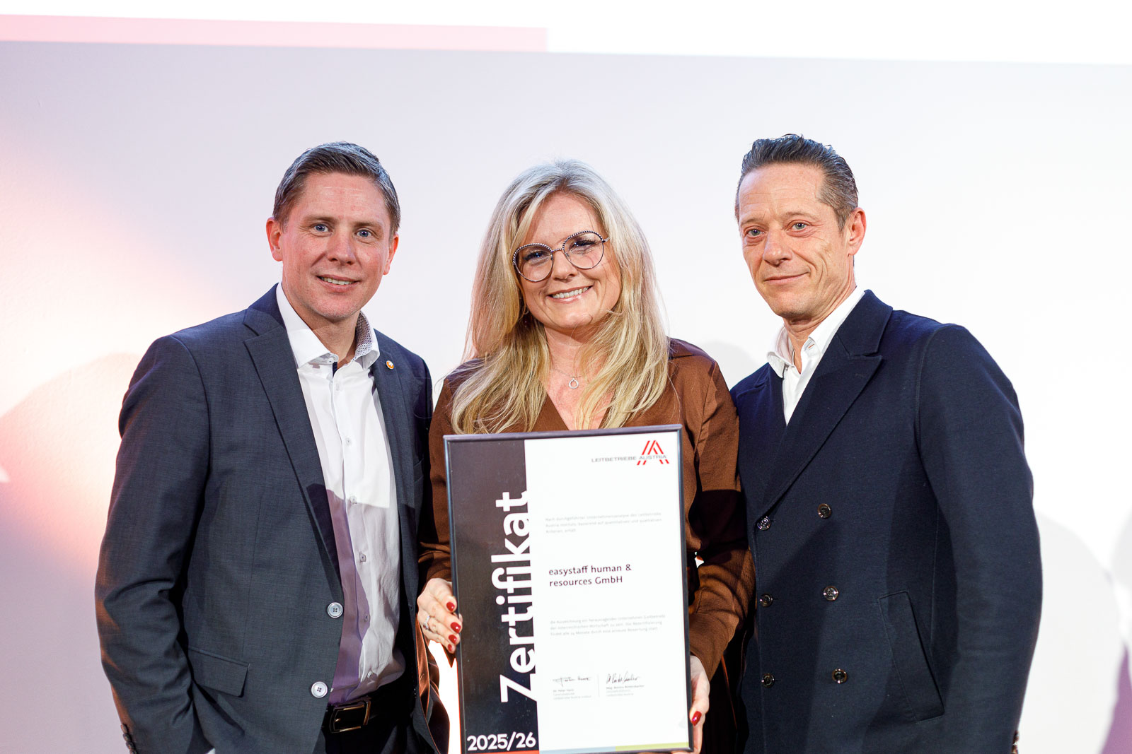 Weitere Highlights des Abends waren die Übergabe der Zertifikate an 21 neu- und rezertifizierte Leitbetriebe sowie die Präsentation des neuen Leitbetriebe-Wirtschaftsmagazins, das sich heuer den Megatrends Dekarbonisierung, Arbeitswelten, Mental Health, Künstlicher Intelligenz und Resilienz widmet.
