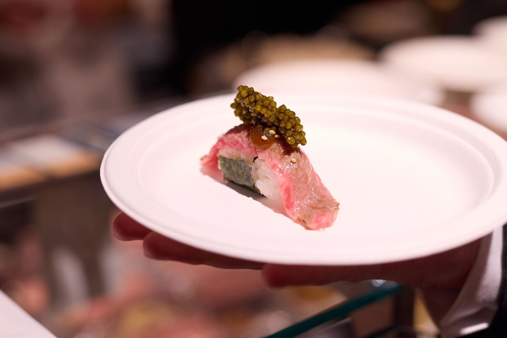 Neben dem Imperial Kaviar wurden Highlights wie Lachs- und Wildschweinschinken serviert. Besonders großen Zulauf gab es beim Wagyu-Nigiri. Auch die Pastrami der Osnabrücker Wurst- und Schinkenmanufaktur Bedford oder der italienische Prosciutto Cotto al Tartufo Nero erfreuten die Gourmets vor Ort. Abgerundet wurde die Gourmet-Verkostung unter anderem mit Boll & Cie Champagner Grand Cru und Rosé, Quinta da Corte Portwein oder dem Bodegas Tradicion Sherry.