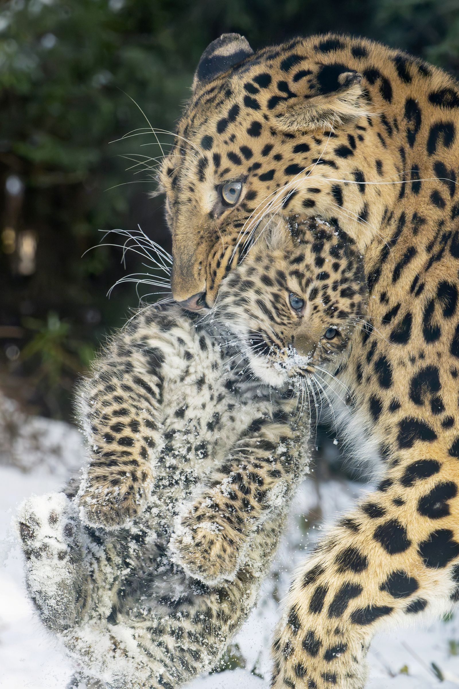 Der Amurleopard ist eine Unterart des Leoparden, perfekt an kalte Lebensräume angepasst. Sein dichtes, kräftig gezeichnetes Fell schützt ihn vor Frost, sein Körpergewicht kann bis zu 50 Kilogramm erreichen. Lebensraumverlust, Wilderei und unkontrollierter Holzeinschlag haben die Art an den Rand der Ausrottung gebracht. Noch 2007 gab es nur rund 25 Tiere in der Wildbahn. Intensive Schutzmaßnahmen und internationale Zuchtprogramme haben die Zahl wieder langsam steigen lassen.