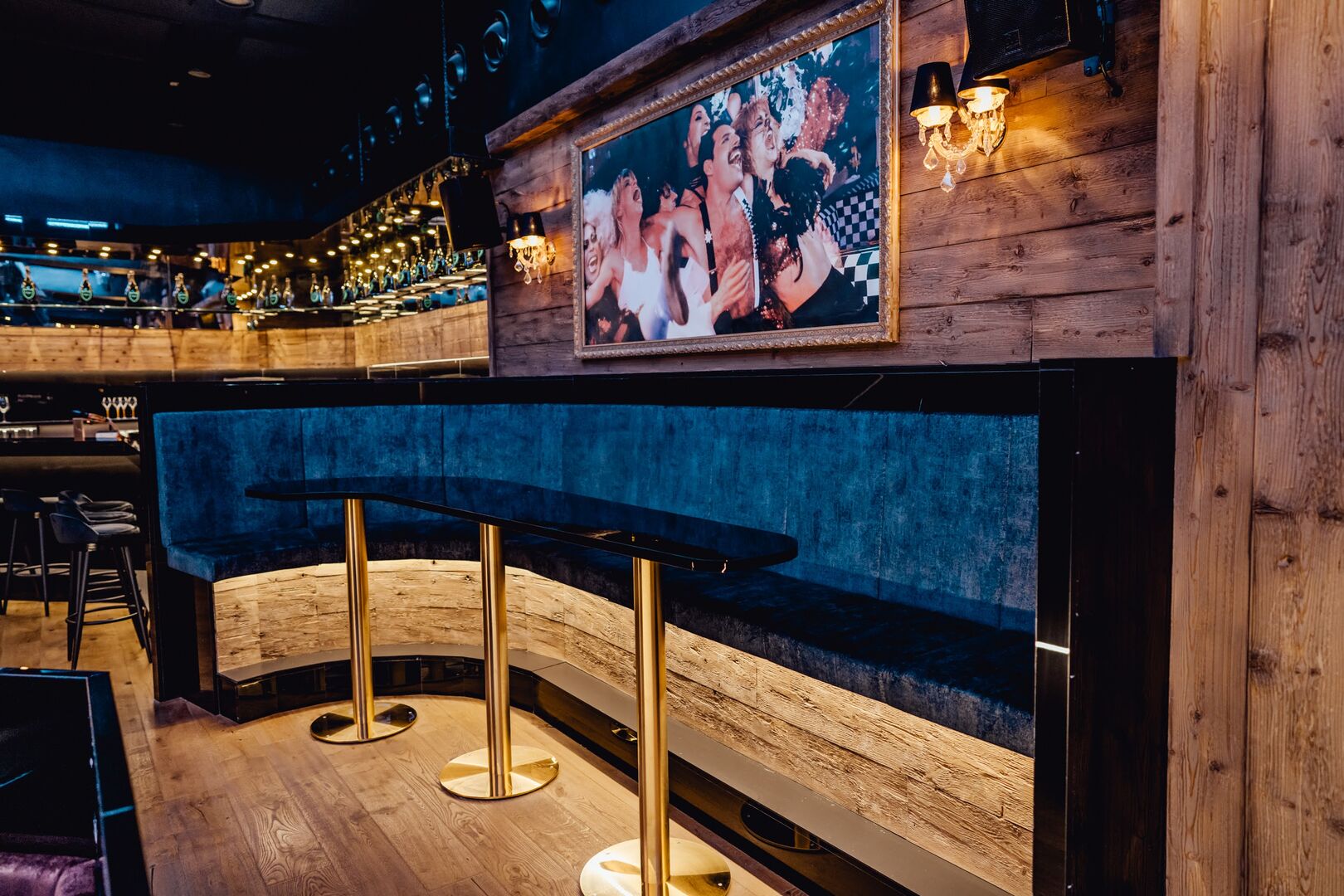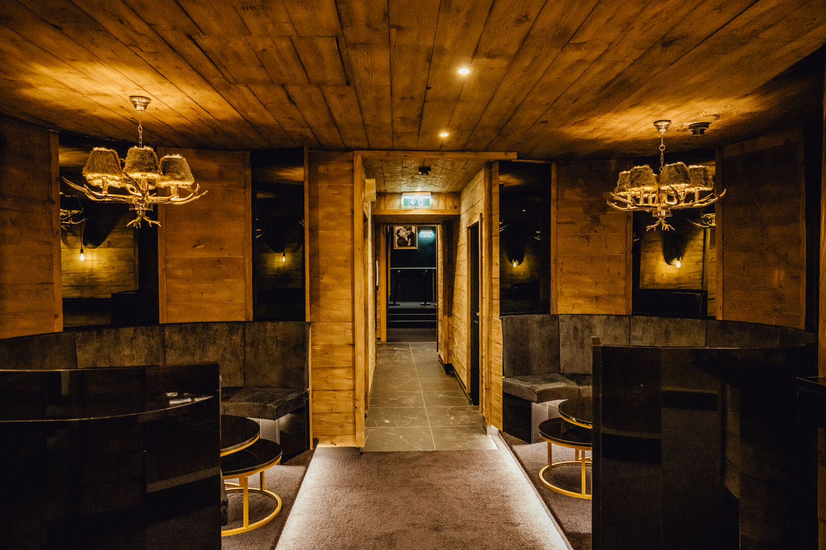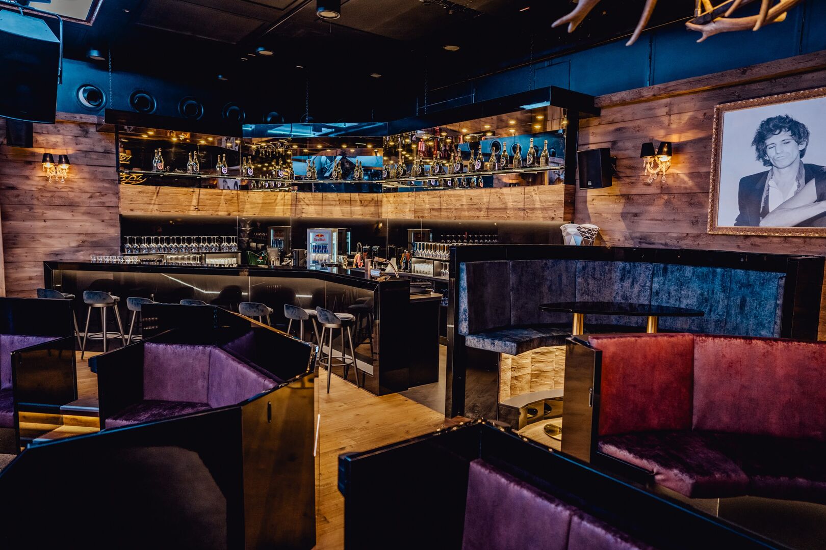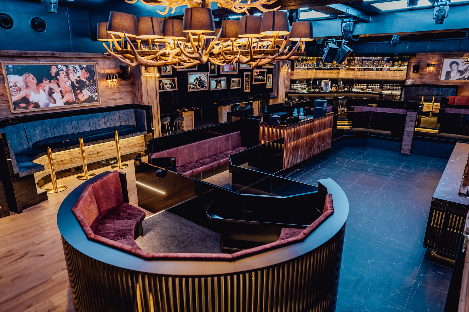 Auch stilistisch sprudelt es: Ein Bilderreigen mit Ikonen der Party-Szene, die die Korken knallen lassen, will zum Feiern animieren. Die Nachtschwärmer werden dabei aber von Hirschgeweihen an holzvertäfelten Wänden im Auge behalten. Wer Deckung sucht, darf in üppig-rotem Samt versinken.