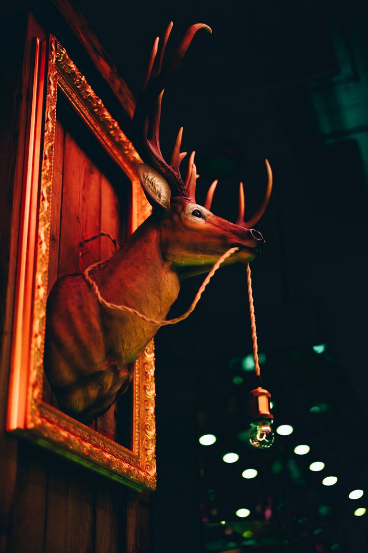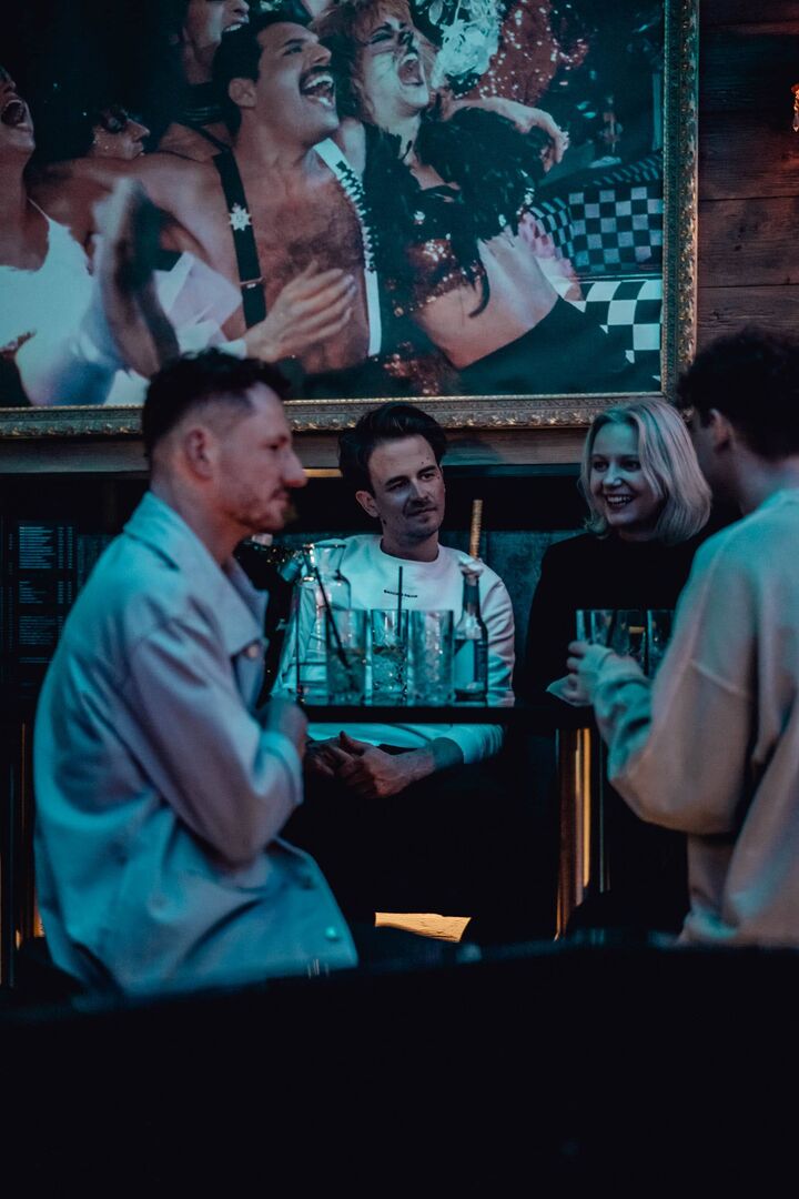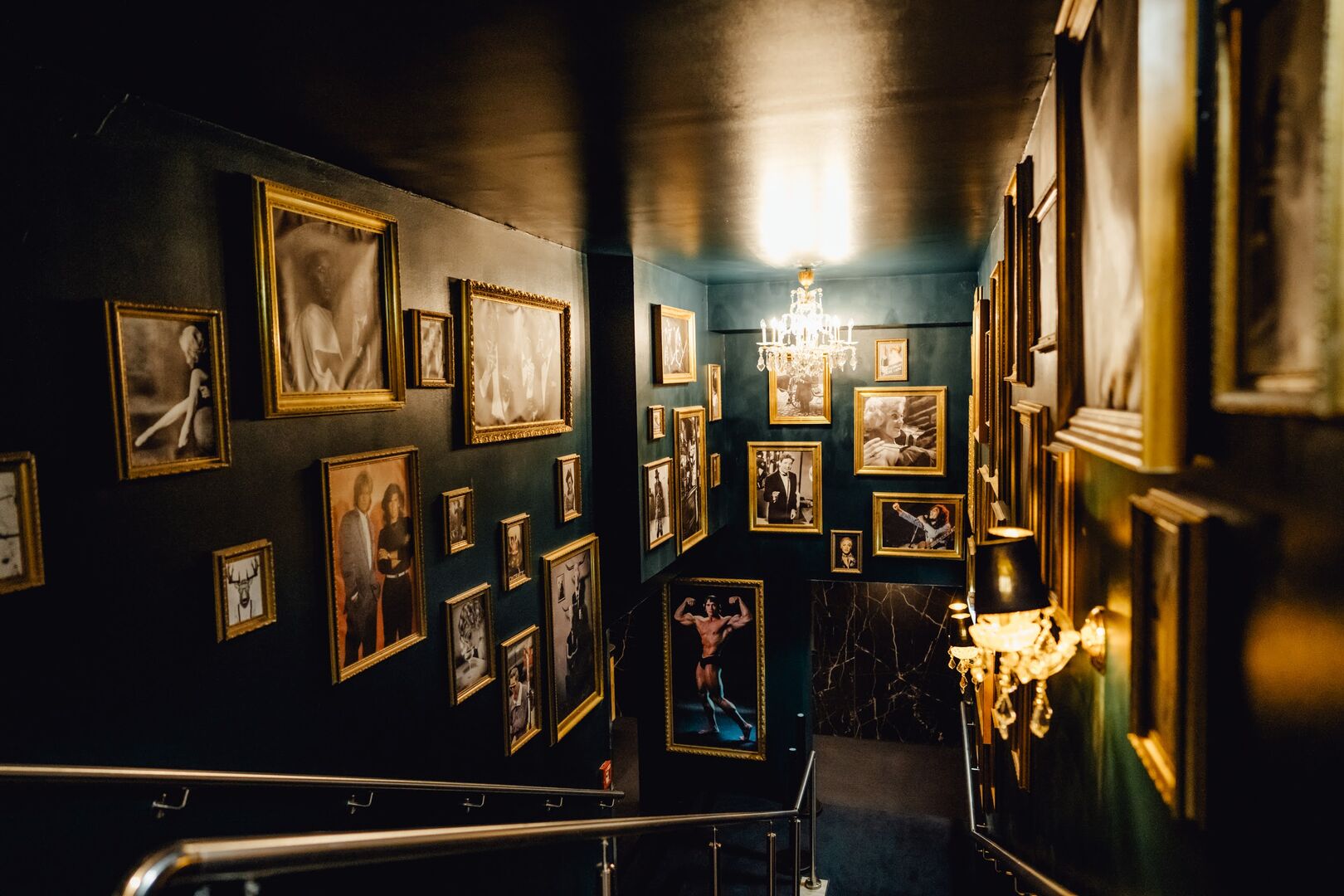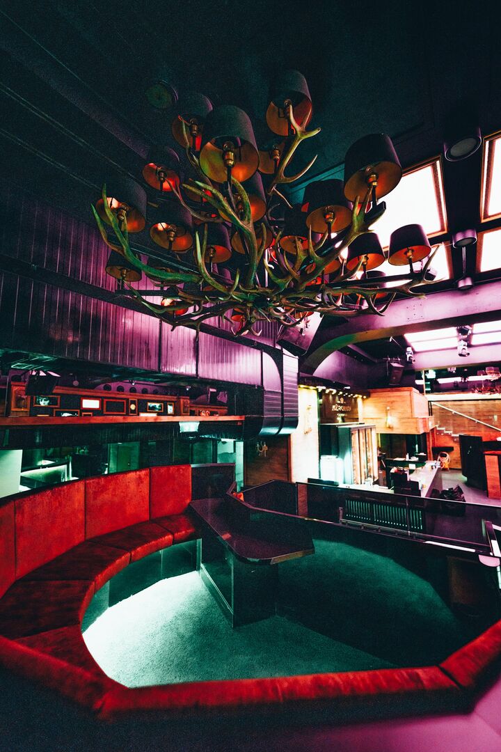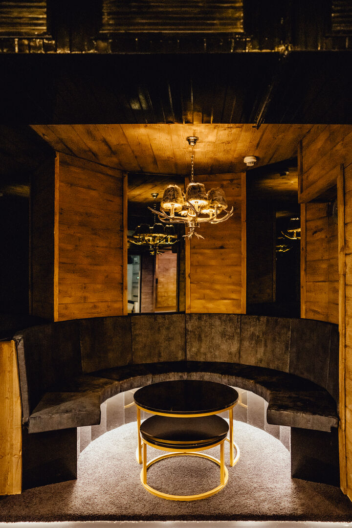 Auch stilistisch sprudelt es: Ein Bilderreigen mit Ikonen der Party-Szene, die die Korken knallen lassen, will zum Feiern animieren. Die Nachtschwärmer werden dabei aber von Hirschgeweihen an holzvertäfelten Wänden im Auge behalten. Wer Deckung sucht, darf in üppig-rotem Samt versinken.
