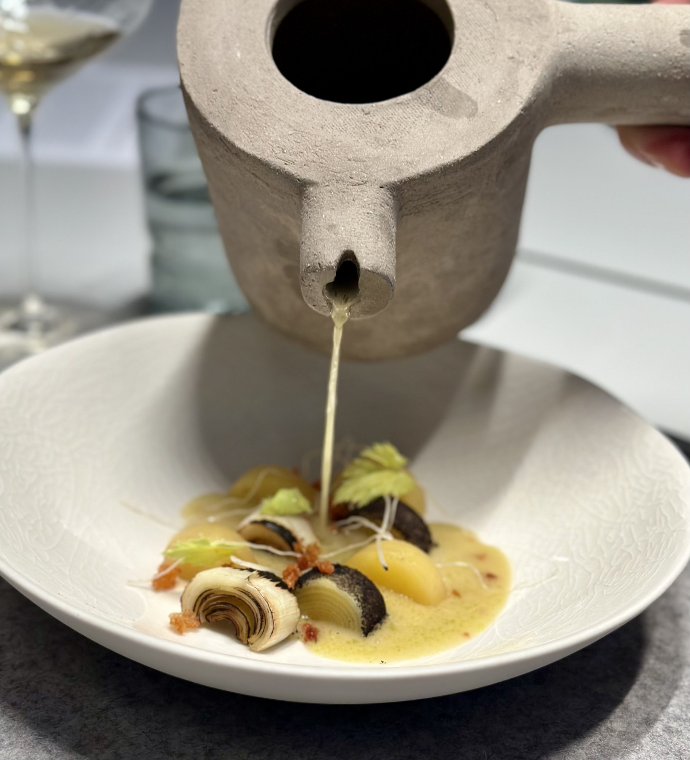 Ins Haus kommt vorzugsweise regionale Bio-Ware. „Wir kaufen Tiere im Ganzen und verarbeiten alles“, erklärt Hahn. Sozusagen von der Nase bis zum Schwanz („Nose to Tail“). Auch Gemüse & Co. will man in der Küche nichts verschwendet. Ein Konzept, das man aus tiefster Überzeugung verfolge, sagt Hahn. „Das ist kein PR-Gag. Und: Ja, das bedeutet wesentlich mehr Aufwand als mit Convenience-Produkten zu arbeiten.“