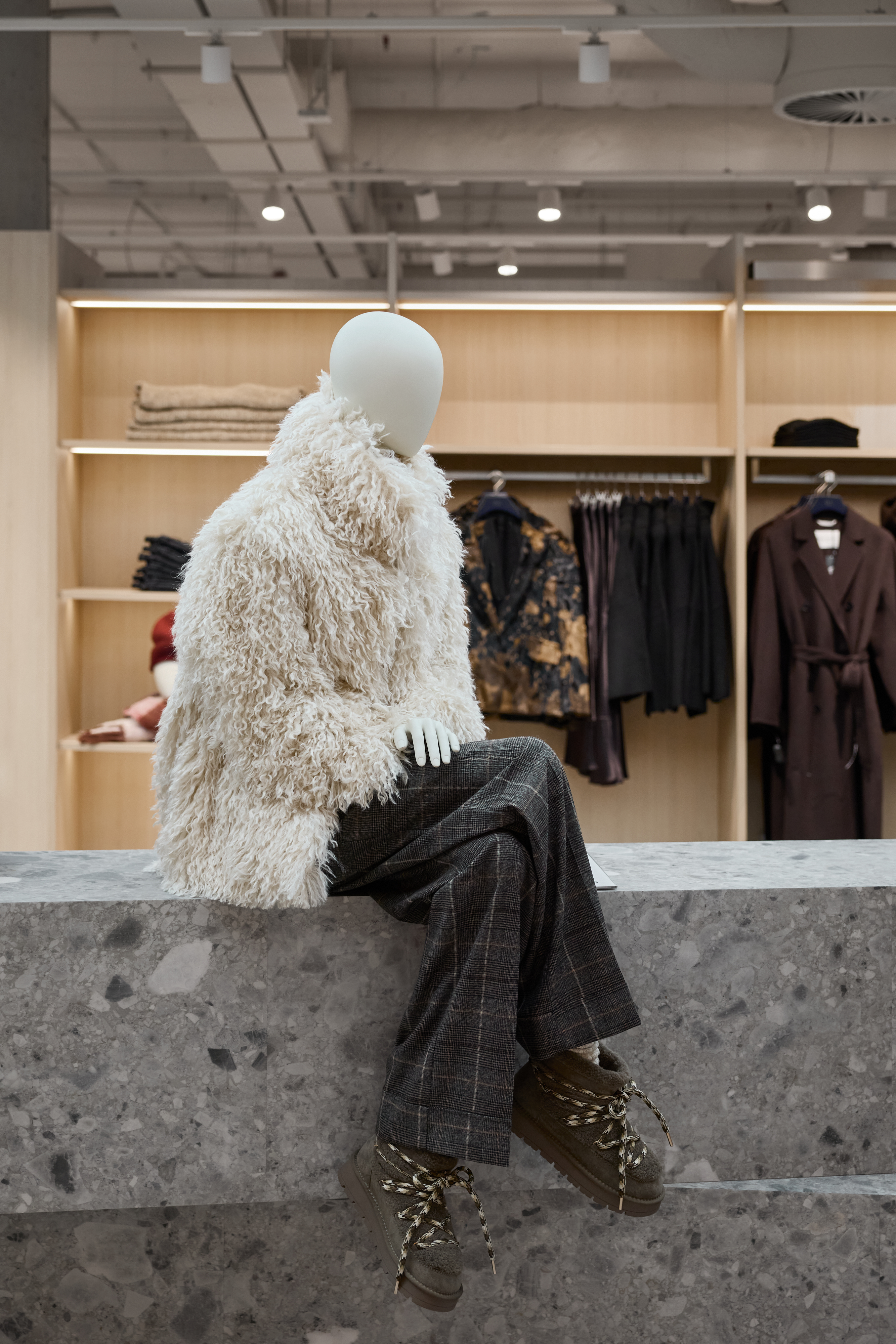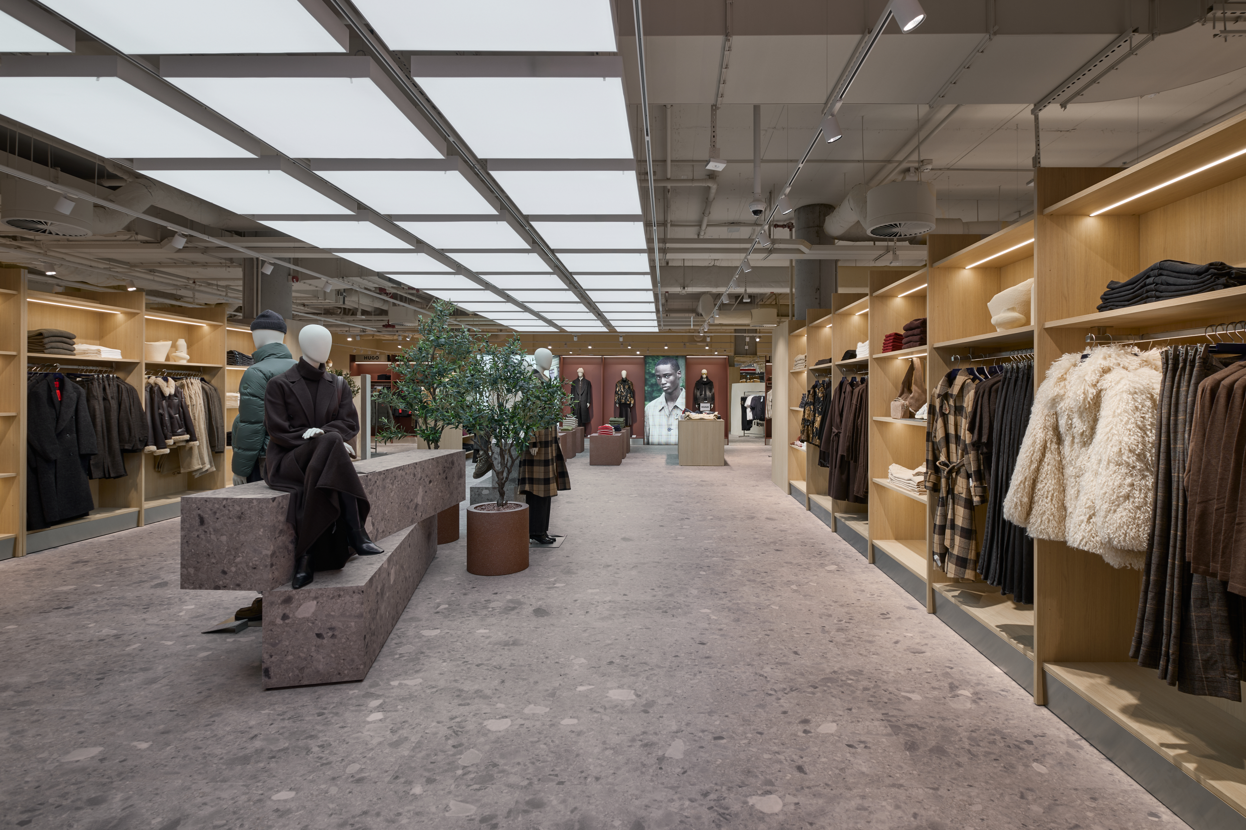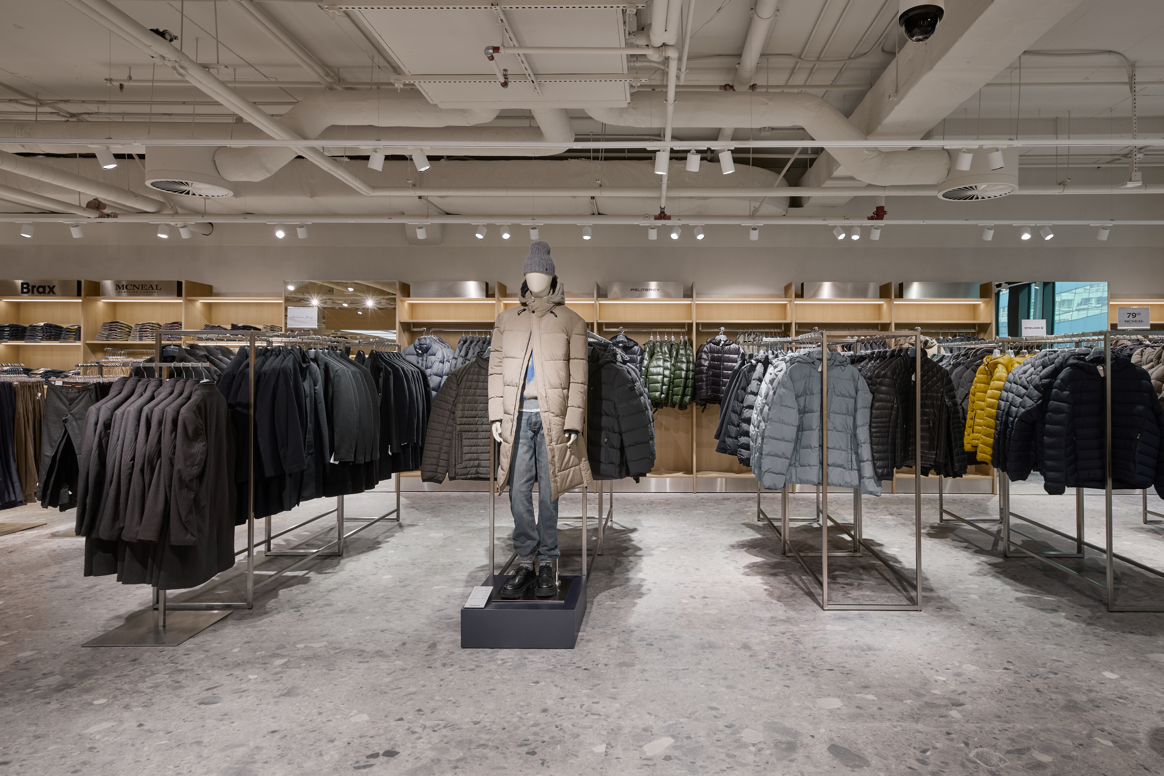 Mit dem neuen Store feiert P&C zugleich die Premiere eines eigens entwickelten Store- Konzepts, das sich an der Architektur des P&C Conscious Fashion Stores in Berlin orientiert. Helle Eiche, Terracotta-Elemente und Edelstahlmöbel prägen das warme, moderne Design. Terrazzo-Böden, offene Decken und modulare Möbel sorgen für Flexibilität und ein hochwertiges Ambiente.