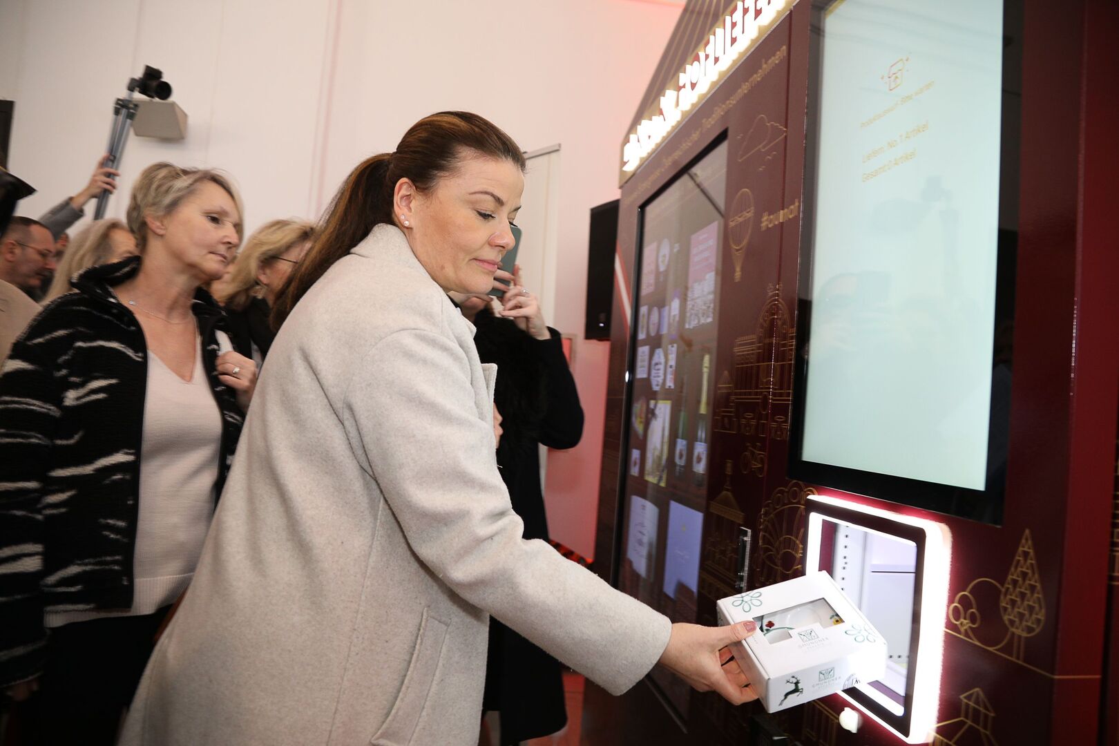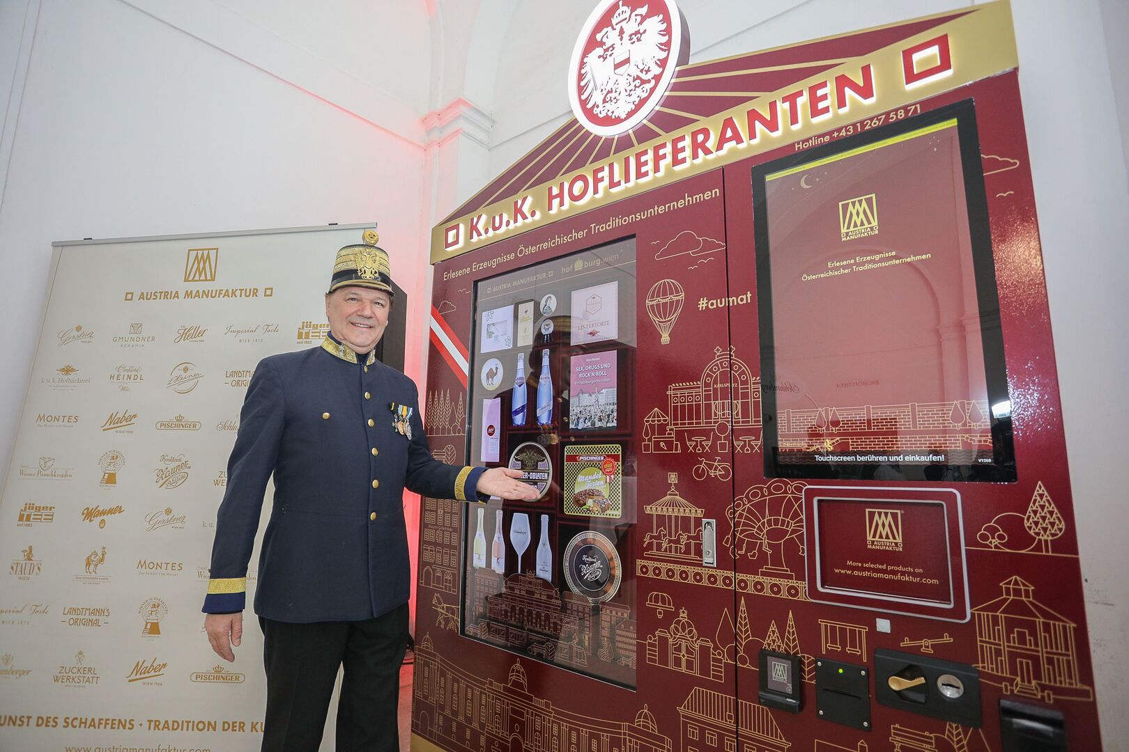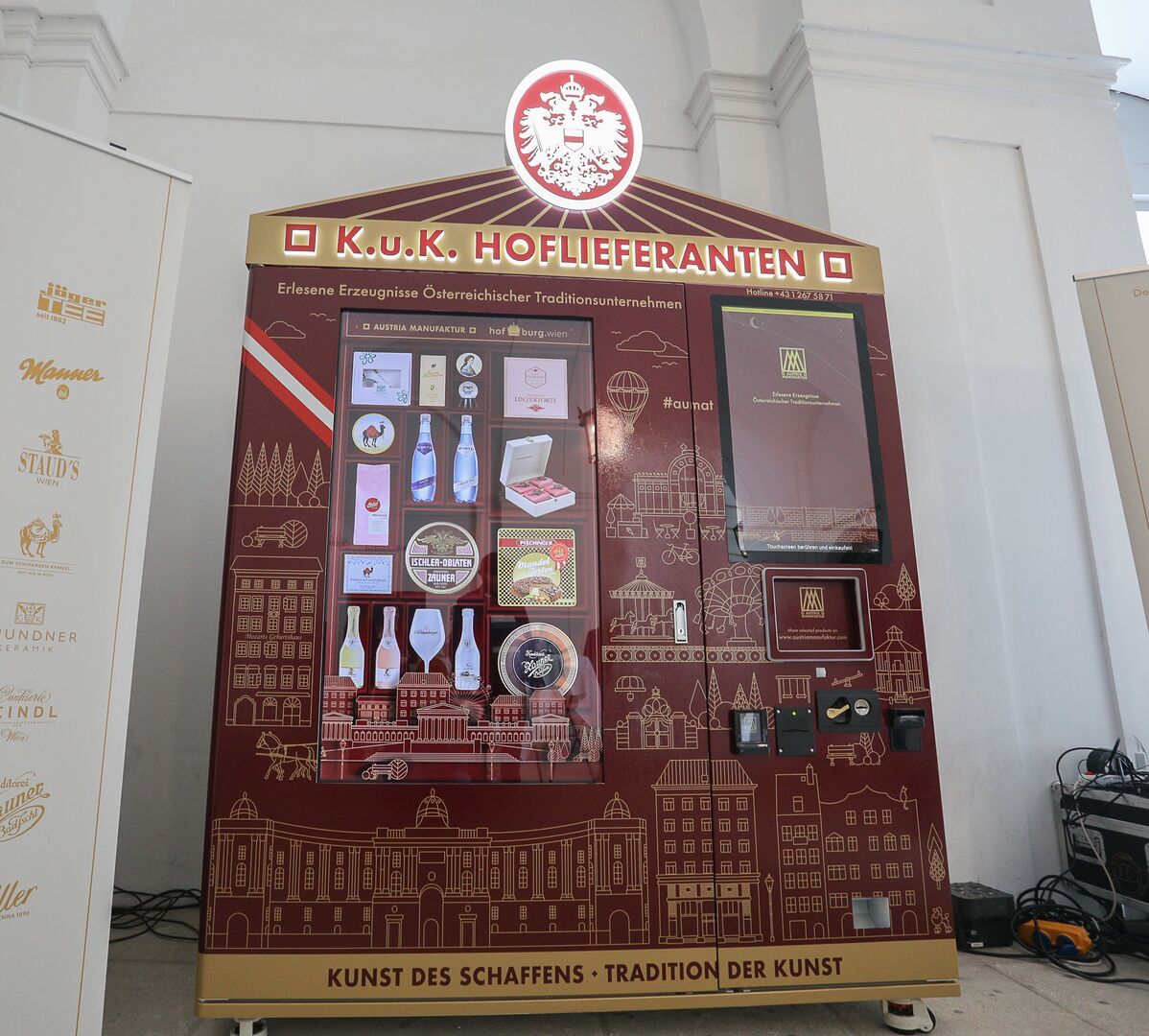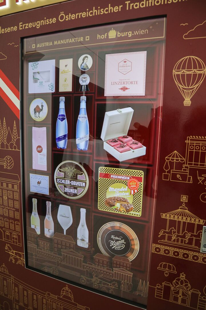 Hinter dem kleinen Luxus-Shopping auf der Straße steht das Wiener Start-up "Austria Manufaktur". Die Auswahl im Automat liest sich wie ein Who is Who der österreichischen Premiummarken: Produkte von Zauner, Gerstner, Gmundner Keramik, Schlumberger, Heller, Zum Schwarzen Kameel, k.u.k. Hofbäckerei Linz, Original Wiener Punschkrapfen, Kral Verlag, Pischinger, Montes, Naber Kaffee Manufaktur, die Zuckerlwerkstatt, L. Heiner Zuckerbäcker, Imperial Torte, Manner, Staud’s, Landmanns Original und viele mehr können ab sofort rund um die Uhr am exklusiven Standort käuflich erworben werden.