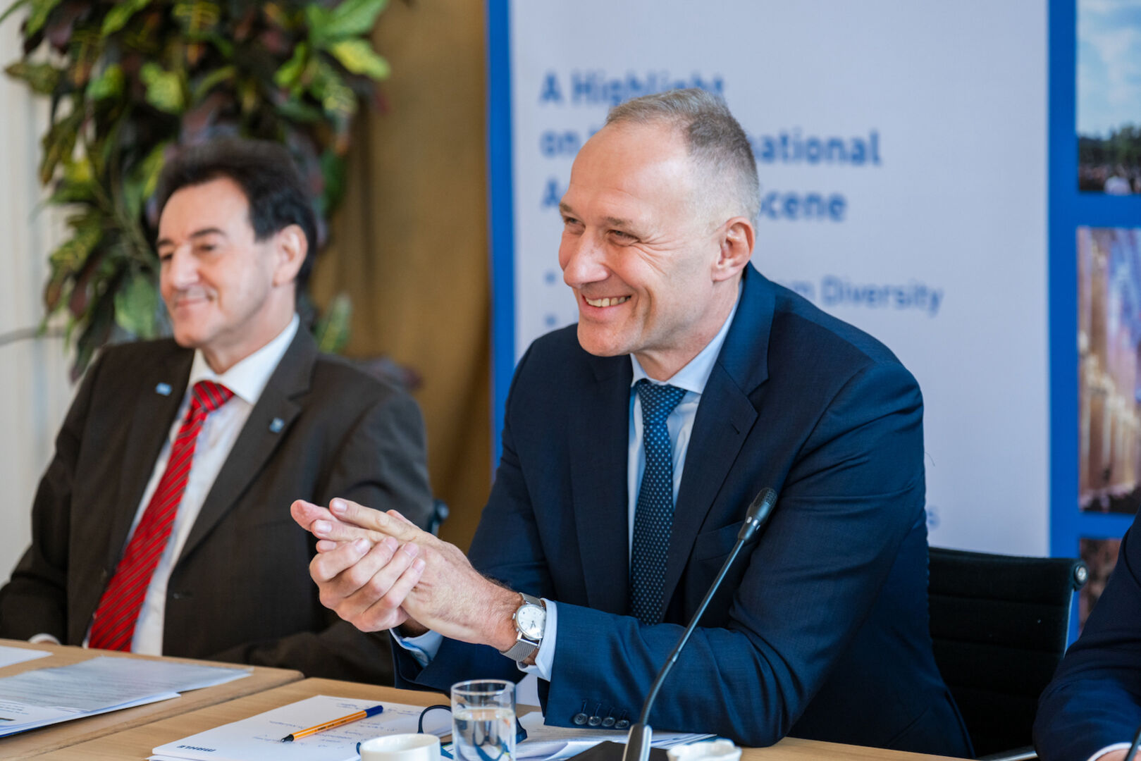 Wie wichtig ein Wettbewerb der Technologien für die gesamte Branche ist und welche Rolle Wasserstoff spielen wird, erläuterten Uwe Dieter Grebe, Vorstand für Business Development, International Operations, Powertrain Engineering und Racing bei der AVL List GmbH, Graz, und Arnd Franz, Vorsitzender der Geschäftsführung und CEO des MAHLE Konzerns, Stuttgart.