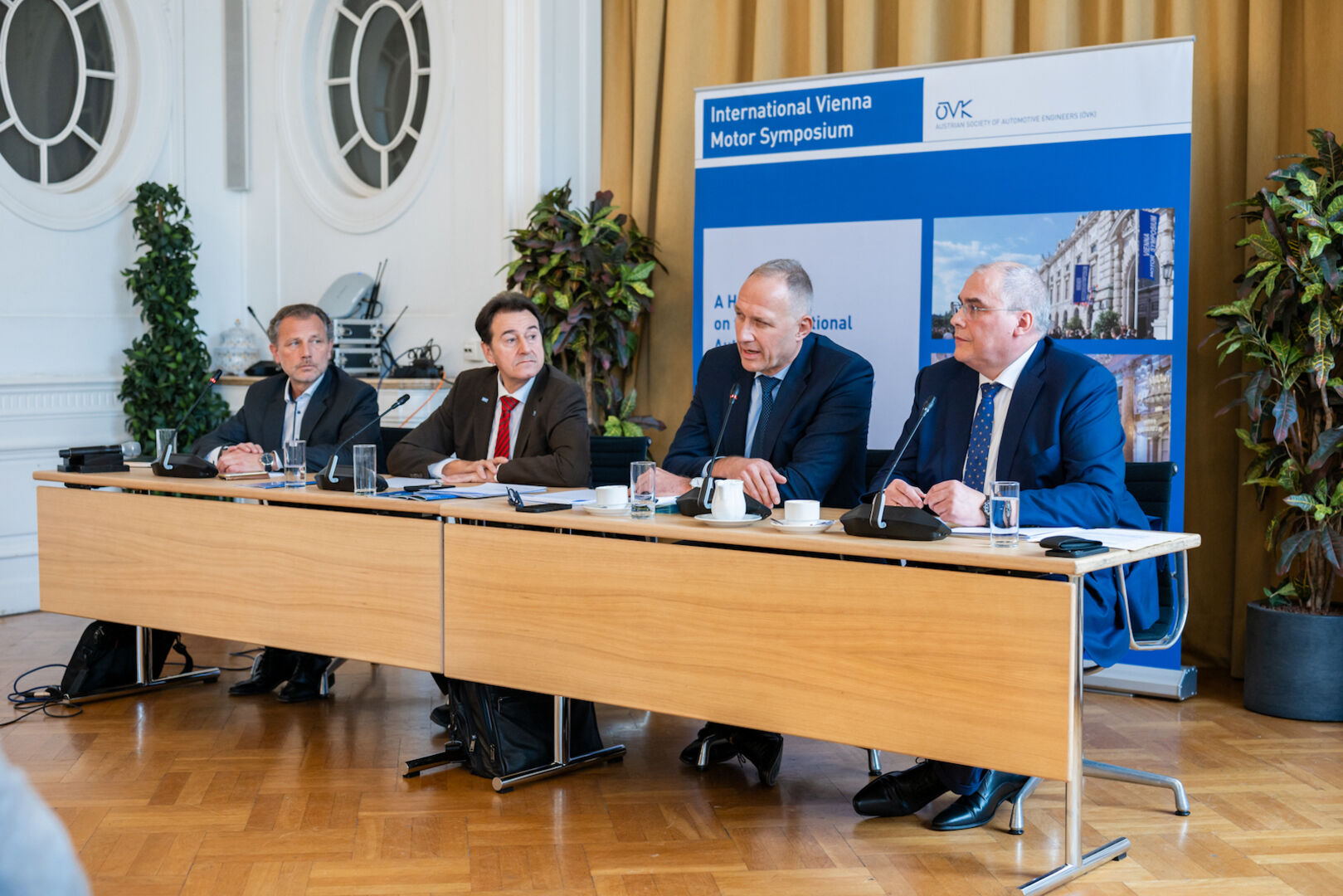 Zur Pressekonferenz hatte Bernhard Geringer, Vorsitzender des Österreichischen Vereins für Kraftfahrzeugtechnik (ÖVK) und Veranstalter des Symposiums vom 24. bis 26. April geladen.