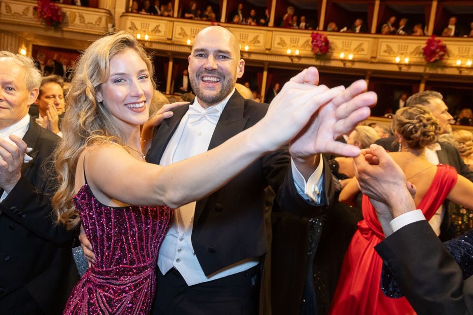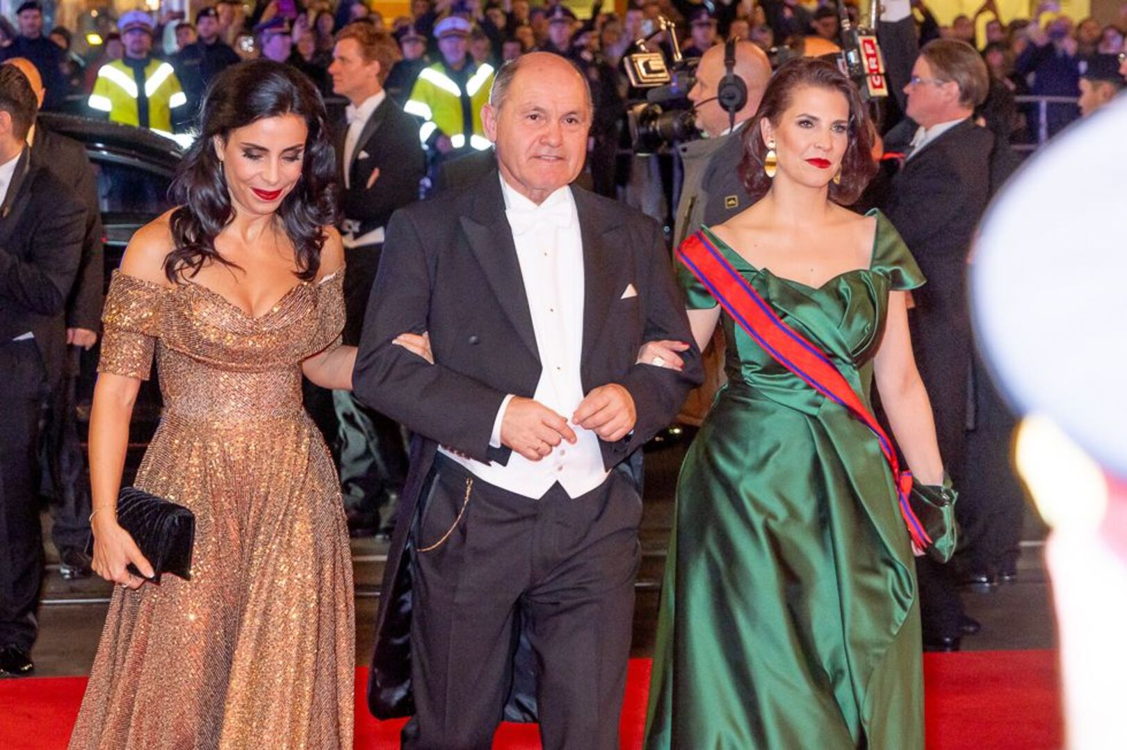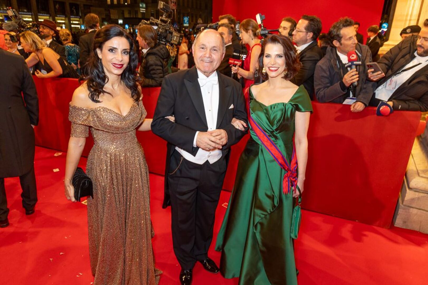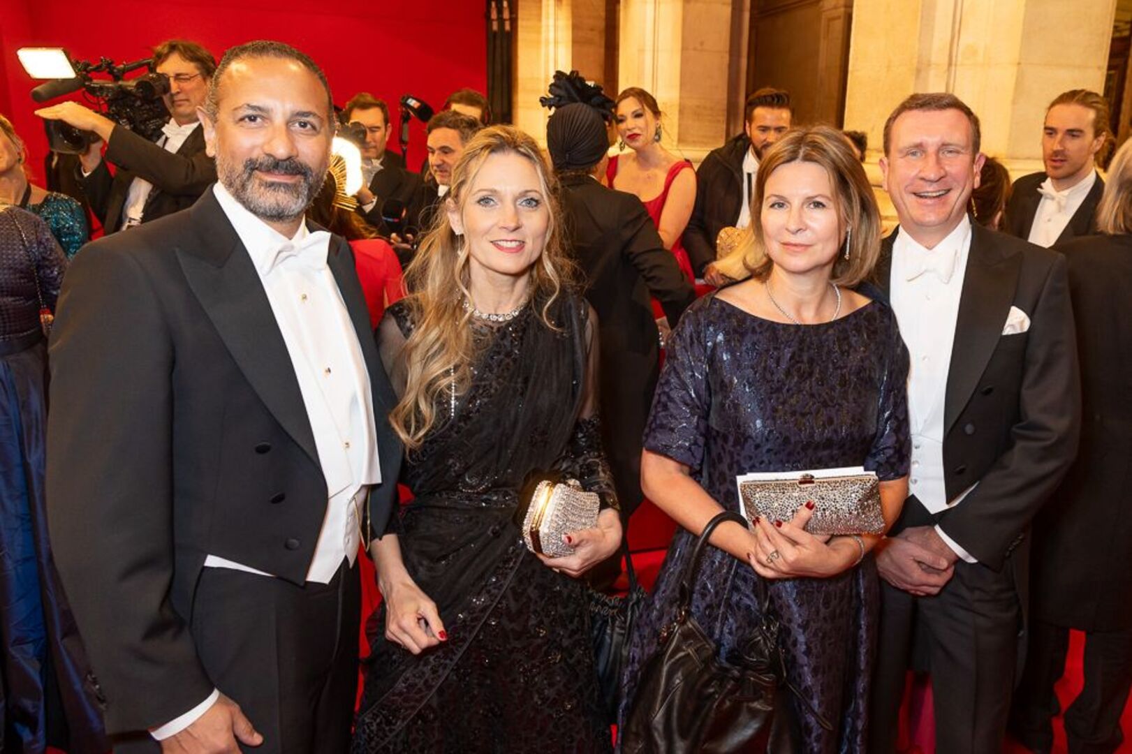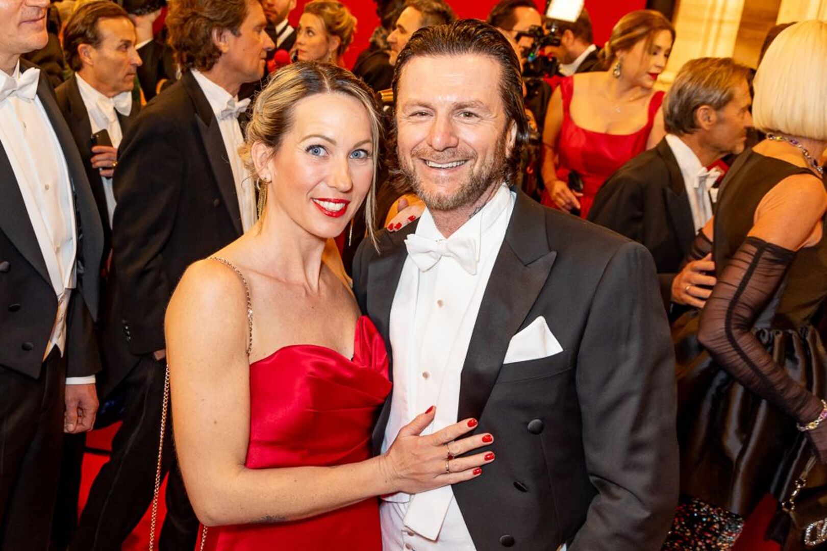 Mitten unterm Blitzlichtgewitter war einmal mehr Bundespräsident Alexander Van der Bellen mit seiner Gattin Doris Schmidauer. Begleitet wurde das First Couple vom montenegrinischen Präsidenten Jakov Milatovic. Auch Bundeskanzler Karl Nehammer kam mit Polit-Begleitung: Er hatte die estnischen Regierungschefin Kaja Kallas zum Staatsball eingeladen. Außenminister Alexander Schallenberg wurde von seiner finnischen Amtskollegin Elina Valtonen begleitet.