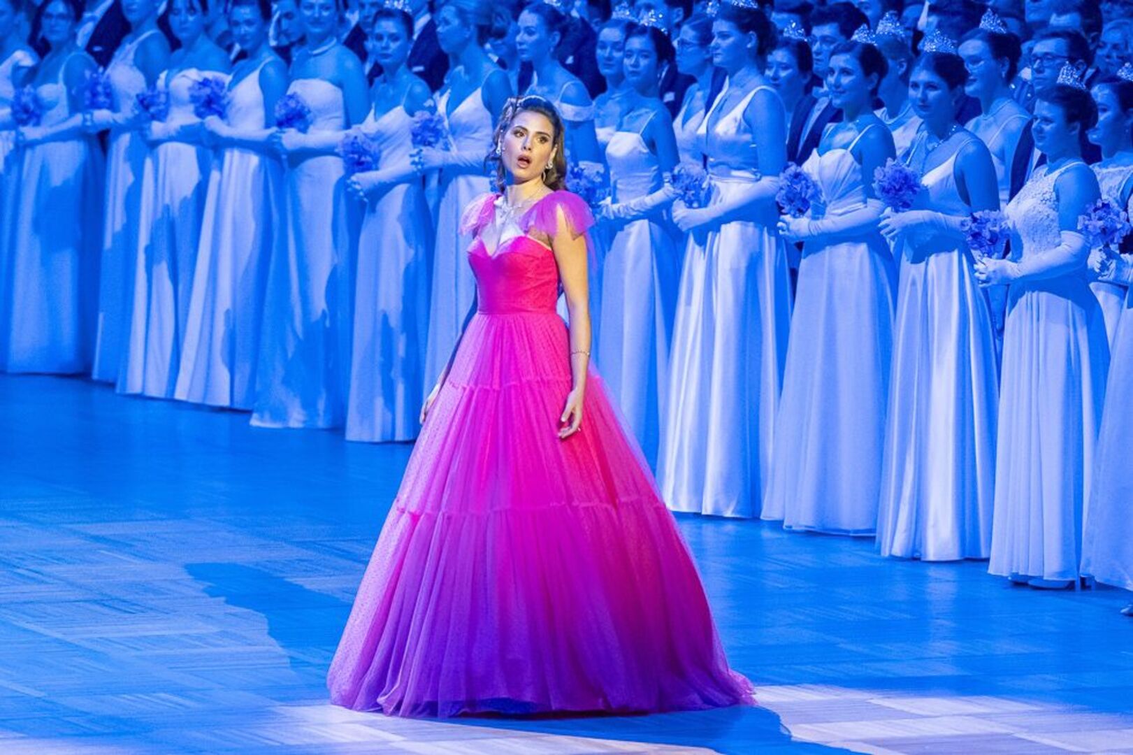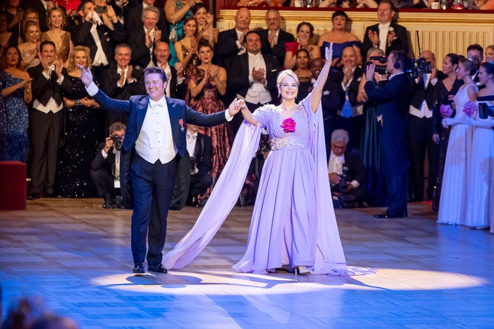 Prominent besetzt, war auch das künstlerische Programm. Der große Auftritt des Jungdamen- und Jungherrenkomitees wurde vom Wiener Staatsopern-Orchester unter der Leitung von Bertrand de Billy begleitet. Mit Elena Garanča und Piotr Beczała sangen dann zwei absolute Publikumsliebe zwischen den Debütanten. Kenner konnten sich ein Raunen nicht verkneifen, als die lettische Mezzosopranistin ein Duett mit der spanischen Sopranistin Serena Saenz anstimmte – eine weibliche Premiere am Opernball.