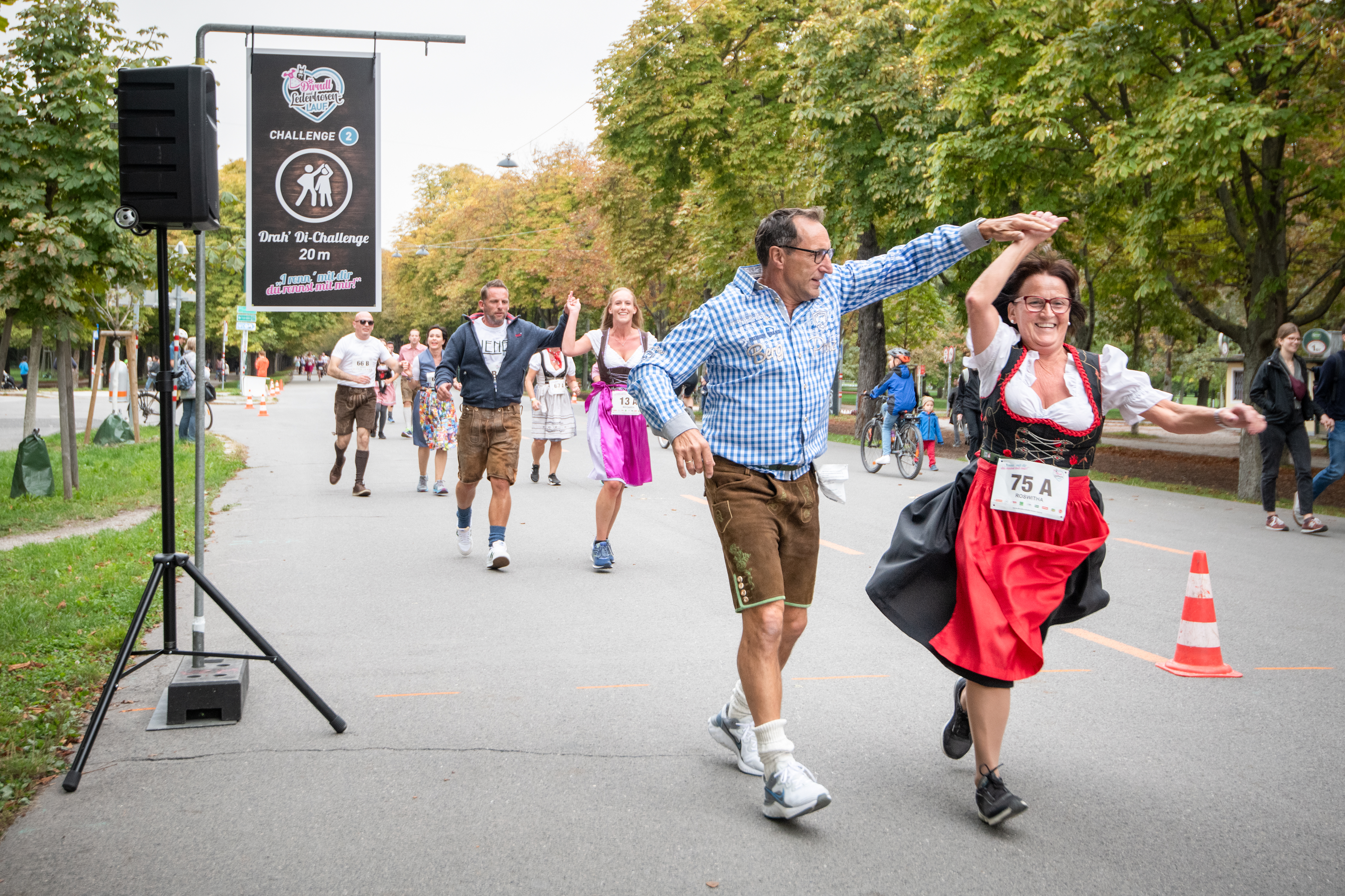 Die Starter hatten es dabei nicht ganz einfach: Für eine große Portion Gaudi sorgten drei Challenges entlang der drei Kilometer langen Strecke entlang der Prater Hauptallee. Neben einem „Hopsalauf“ und der „Drah‘ Di-Challenge“ mussten alle Teilnehmer einen Teil der Strecke im „Schuhplattler-Lauf“ hinter sich bringen.