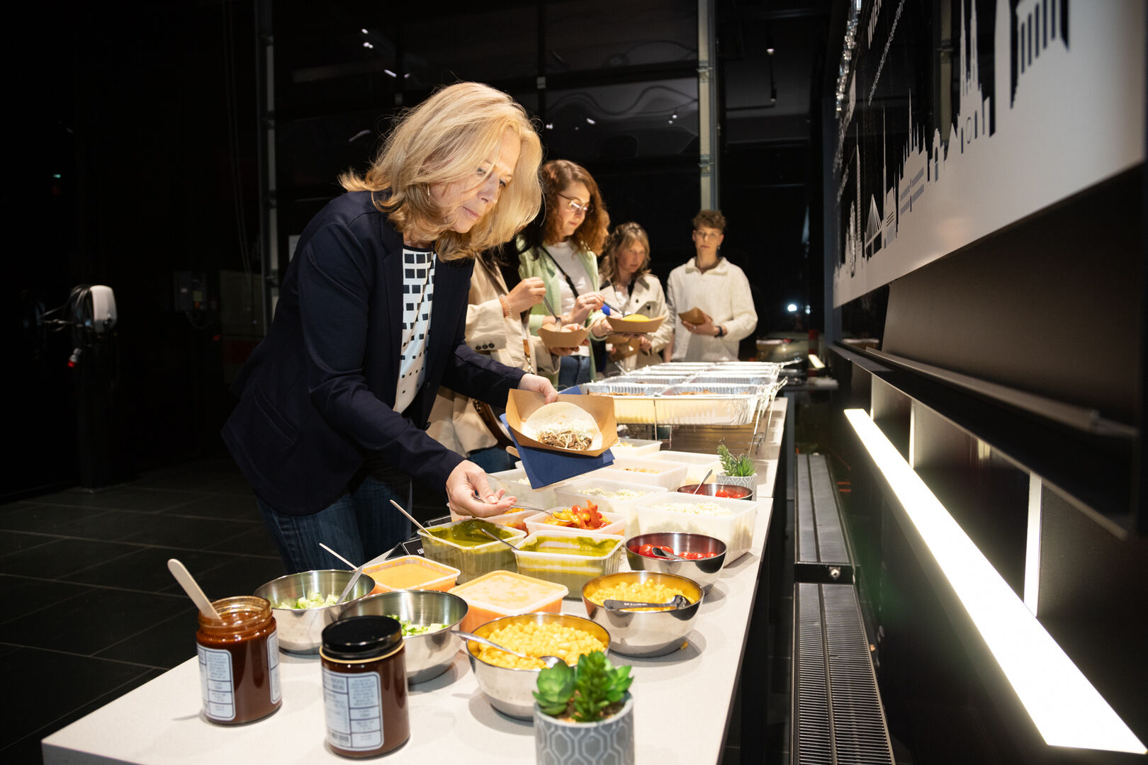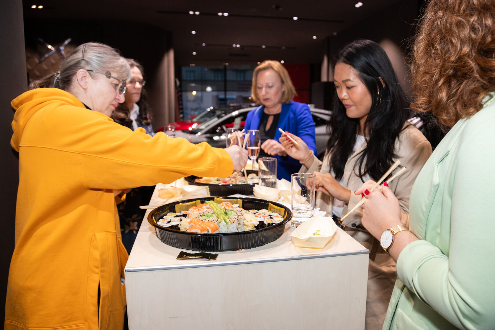 Der Abend fand schließlich in gemütlicher Atmosphäre seinen Ausklang, während die Gäste bei Sushi und Wraps weitere Gespräche führten und die Eindrücke des Abends Revue passieren ließen. Stellantis &You sagt Danke für die tolle Unterstützung von Alfa Romeo, DS Automobiles sowie dem Österreichischen Frauenlauf (gratis Startplatz für den heurigen Frauenlauf!).
