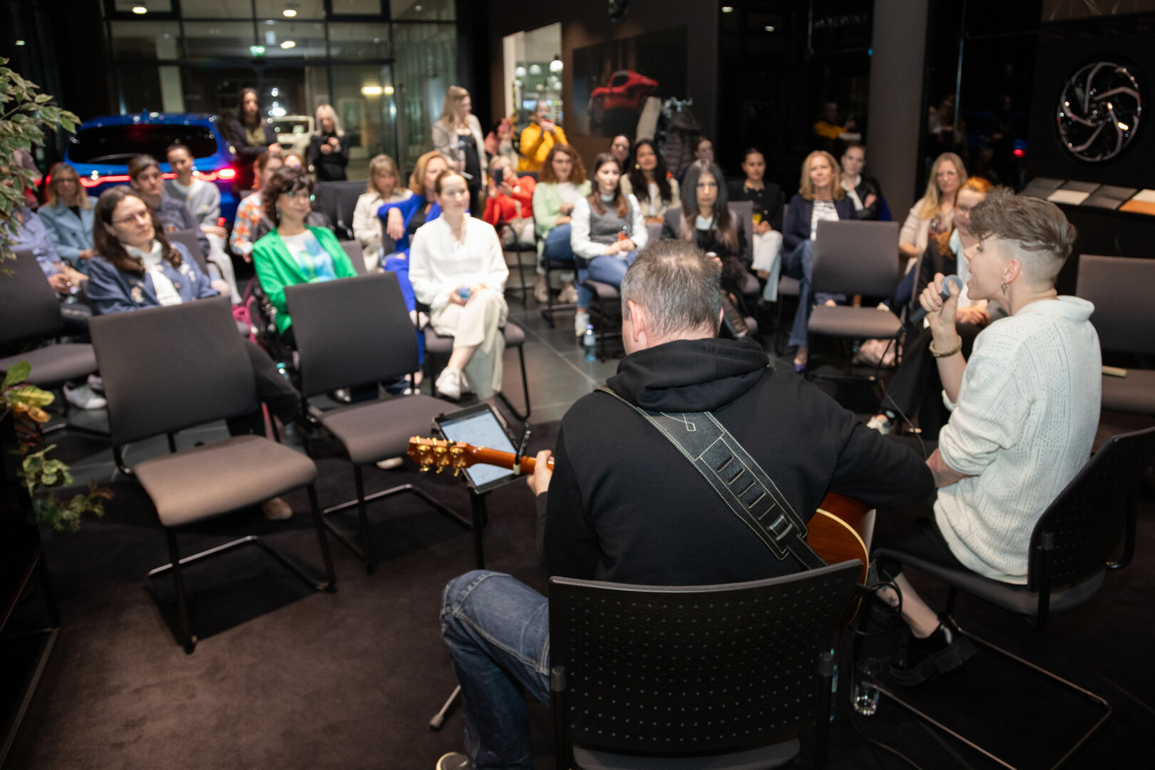 Die Veranstaltung begann mit einem Auftritt von Virginia Ernst, die mit zwei ihrer Songs das weibliche Publikum begeisterte und die Stimmung für den Abend perfekt einläutete.