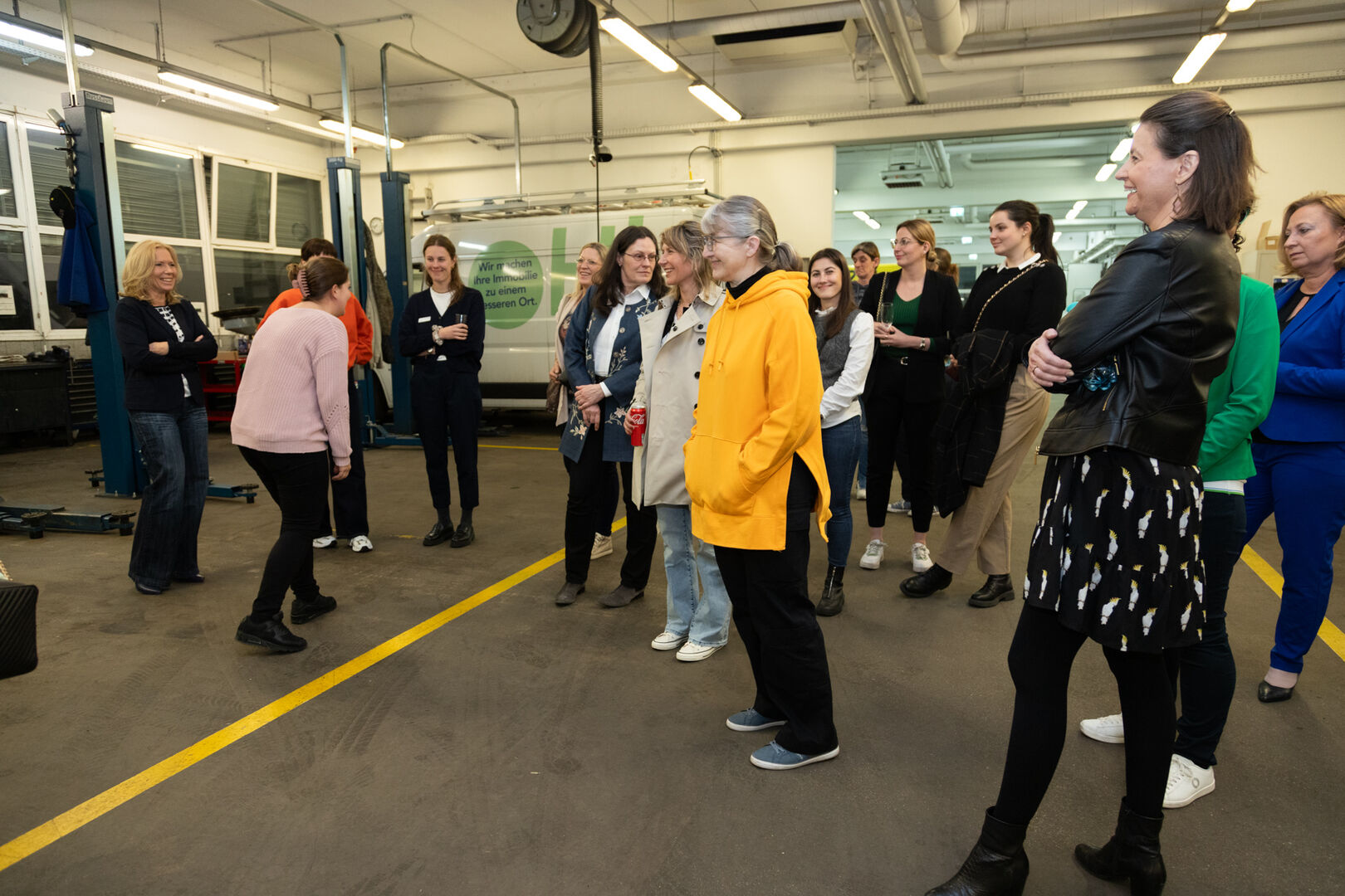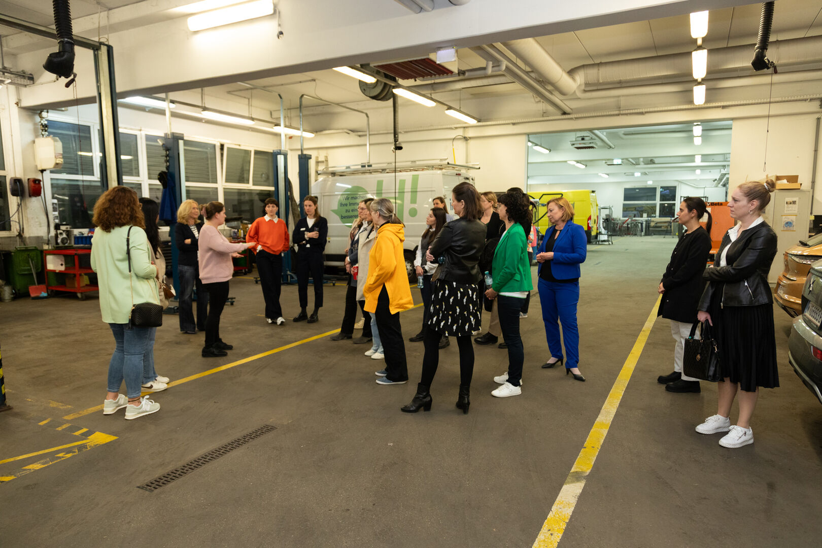 Nach diesem spannenden Talk erhielten die Gäste eine exklusive Führung durch die Werkstatt des Autohauses. Hier hatten die Besucherinnen die Möglichkeit, weitere Fragen zu stellen und einen Blick hinter die Kulissen zu werfen, was die Verbundenheit und das Verständnis für die Automobilindustrie vertiefte.