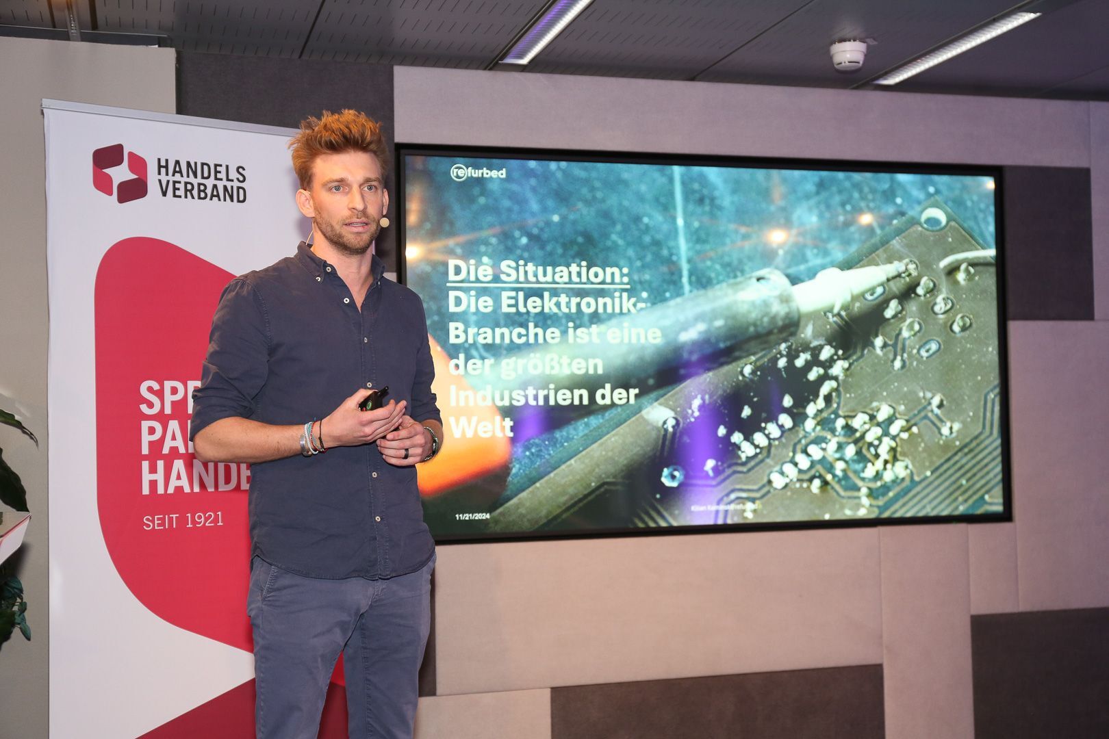 Ein besonderer Programmpunkt war die Keynote von Kilian Kaminski, Mitgründer des österreichischen Unicorns Refurbed. Unter dem Titel "Wachstum dank Impact“ sprach Kaminski über die Verbindung von nachhaltigem Handeln und wirtschaftlichem Erfolg.