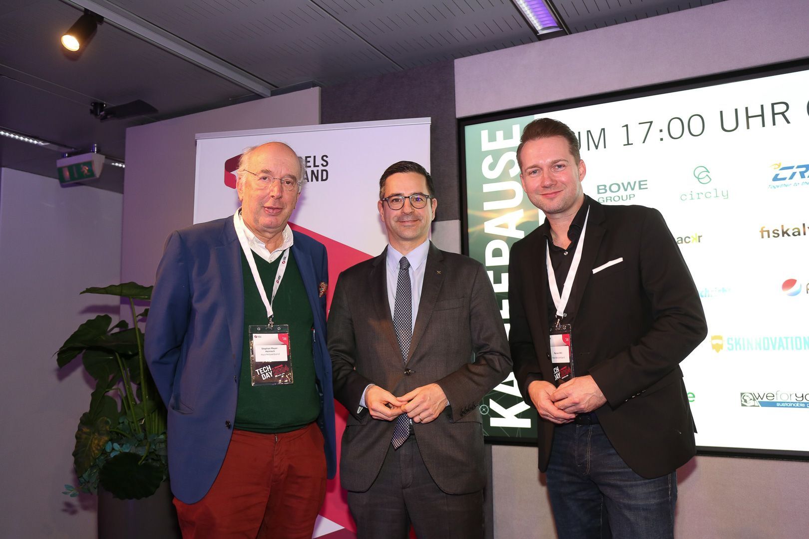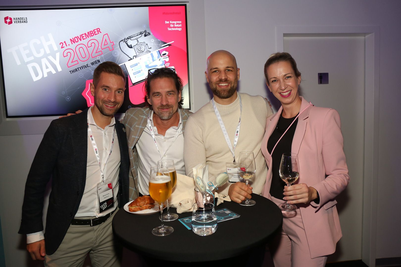 Der Tech Day 2024 fand mit der Verleihung der Austrian Retail Innovation Awards seinen offiziellen Abschluss. In diesem Jahr wurden "Hervis", "Kastner", "Unimarkt" und "Vom Fass" mit den Preisen der heimischen Retail-Tech-Szene geehrt. HV-Geschäftsführer Rainer Will und Florian Haas, Leiter des Startup-Ökosystems sowie Head of Brand & Growth bei EY Österreich, überreichten die Auszeichnungen. Anschließend wurde bei der Afterparty auf die Sieger angestoßen und eifrig genetzwerkt.